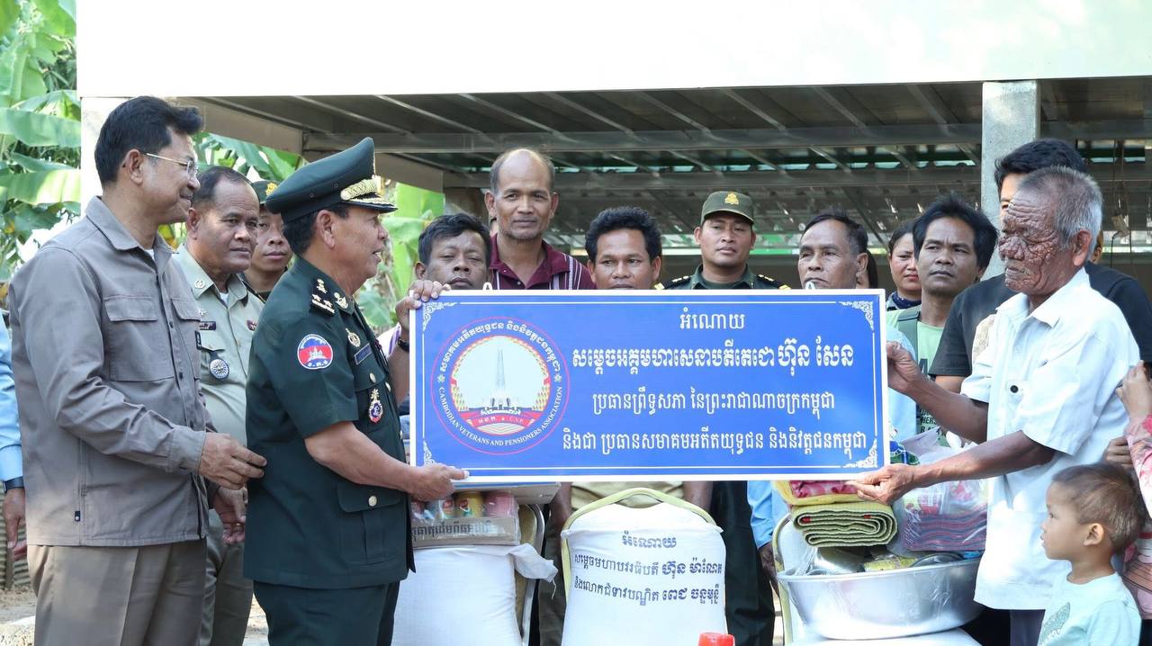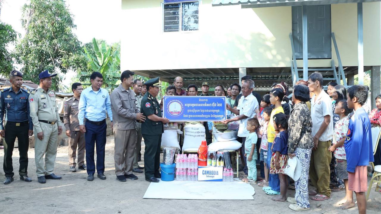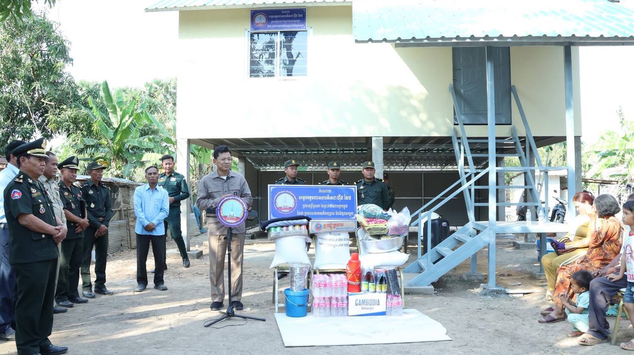 ឧត្តមសេនីយ៍ទោ សោម ស៊ុន មេបញ្ជាការ តំបន់ប្រតិបត្តិការសឹករងកំពង់ធំ តំណាងគណៈកម្មាធិការសមាគមអតីតយុទ្ធជន និងនិវត្តជនកម្ពុជា ខេត្តកំពង់ធំ អមដំណើរដោយលោក ជួន សិលាវិត ប្រធានសាខាមូលនិធិជាតិជំនួយសង្គមខេត្តកំពង់ធំ និងលោក អ៊ុត វណ្ណរ៉ា អភិបាលស្រុកកំពង់ស្វាយ រួមជាមួយអាជ្ញាធរដែនដី នៅរសៀលថ្ងៃទី២៦ ខែមករា ឆ្នាំ២០២៦ បានដឹកនាំសហការី ទៅប្រគល់ផ្ទះថ្មីមួយខ្នង ដែលជាខ្នងទី៦៩ អំណោយរបស់សម្ដេចតេជោ ហ៊ុន សែន ប្រធានព្រឹទ្ធសភា ប្រធានសមាគមអតីតយុទ្ធជន និងនិវត្តជនកម្ពុជា និងសម្ដេចកិត្តិព្រឹទ្ធបណ្ឌិត ប៊ុន រ៉ានី ហ៊ុនសែន ជូនអតីតយុទ្ធជនសោធននិវត្តន៍ មានដី មានជម្រកស្នាក់នៅមិនសមរម្យ នៅភូមិប្រាសាទ ឃុំត្រពាំងឬស្សី ស្រុកកំពង់ស្វាយ ខេត្តកំពង់ធំ។