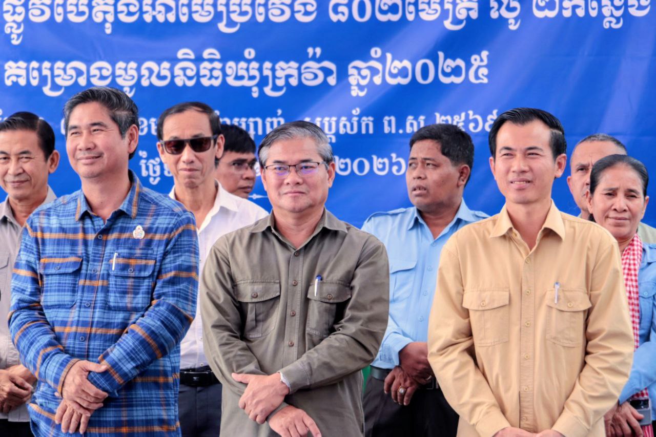 ឯកឧត្តម នួន ផារ័ត្ន អភិបាលខេត្តកំពង់ធំ អញ្ជើញសម្ពោធដាក់ឲ្យប្រើប្រាស់ផ្លូវបេតុងអាមេ ១ខ្សែ ប្រវែង ៨០២ម៉ែត្រ ទទឹង ៦ ម៉ែត្រ និងដាក់លូកាត់ផ្លូវចំនួន២កន្លែង ឆ្លងកាត់ភូមិរូង ទៅភូមិកំពង់ស្ដេច ឃុំក្រវ៉ា ស្រុកបារាយណ៍ នារសៀលថ្ងៃទី២៦ ខែមករា ឆ្នាំ២០២៦។