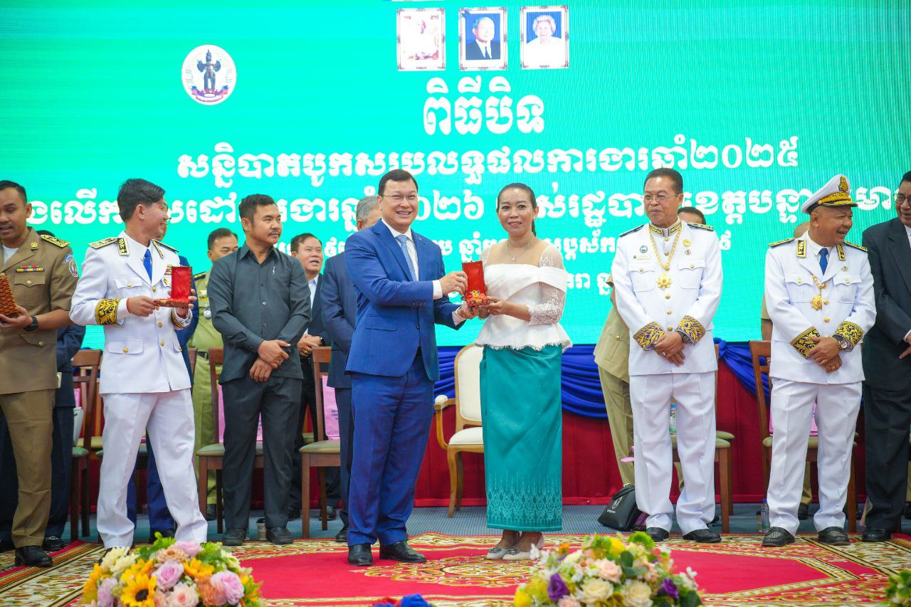 ឯកឧត្តម ឌិត ទីណា រដ្ឋមន្រ្តីក្រសួងកសិកម្ម រុក្ខាប្រមាញ់ និងនេសាទ និងជាប្រធានក្រុមការងាររាជរដ្ឋាភិបាល ចុះមូលដ្ឋានខេត្តបន្ទាយមានជ័យ នាព្រឹកថ្ងៃទី២៧ ខែមករា ឆ្នាំ២០២៦ បានអញ្ជើញជាអធិបតីភាព ក្នុងពិធីបិទសន្និបាតបូកសរុបលទ្ធផលការងារ ឆ្នាំ២០២៥ និងលើកទិសដៅការងារឆ្នាំ២០២៦ របស់រដ្ឋបាលខេត្តបន្ទាយមានជ័យ នៅសាលាខេត្តបន្ទាយមានជ័យ។