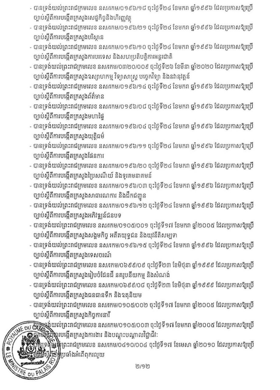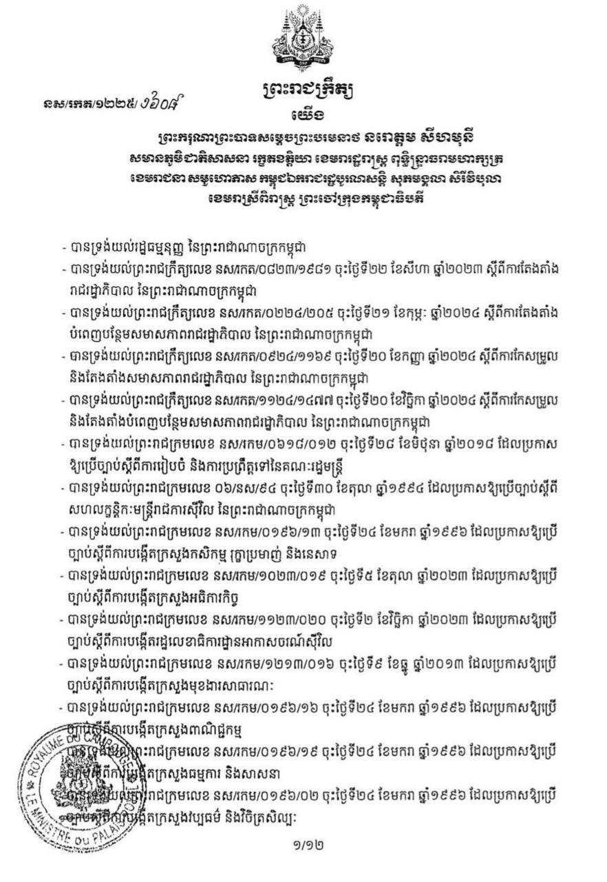 ខាងក្រោមនេះ ជាព្រះរាជក្រឹត្យរបស់ព្រះមហាក្សត្រ៖