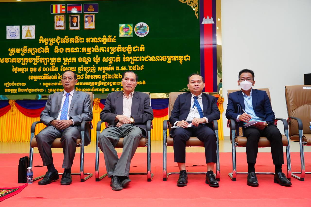 (ពោធិ៍សាត់)៖ ឯកឧត្តម សក់ សេដ្ឋា ទេសរដ្ឋមន្ត្រី ទទួលបន្ទុកបេសកកម្មពិសេស និងជាអនុប្រធានអចិន្ត្រៃយ៍ (គ.ជ.អ.ប.) តំណាងដ៏ខ្ពង់ខ្ពស់ ឯកឧត្តមអភិសន្តិបណ្ឌិត ស សុខា ឧបនាយករដ្ឋមន្ត្រី រដ្ឋមន្ត្រីក្រសួងមហាផ្ទៃ និងជាប្រធានគណៈកម្មាធិការជាតិសម្រាប់ការអភិវឌ្ឍតាមបែបប្រជាធិបតេយ្យនៅថ្នាក់ក្រោមជាតិ (គ.ជ.អ.ប.) នាថ្ងៃទី២៨ ខែមករា ឆ្នាំ២០២៦ បានអញ្ជើញជាអធិបតី ក្នុងពិធីបិទកិច្ចប្រជុំក្រុមប្រឹក្សាជាតិ លើកទី២ អាណត្តិទី៤ របស់សម្ព័ន្ធភាពជាតិសមាគមក្រុមប្រឹក្សាក្រុង ស្រុក ខណ្ឌ ឃុំ សង្កាត់ នៃព្រះរាជាណាចក្រកម្ពុជា នៅសាលប្រជុំទេពឧកញ៉ា ឃ្លាំង មឿង សាលាខេត្តពោធិ៍សាត់ បន្ទាប់ពីបានដំណើរការរយៈពេល ១ថ្ងៃកន្លះ។
