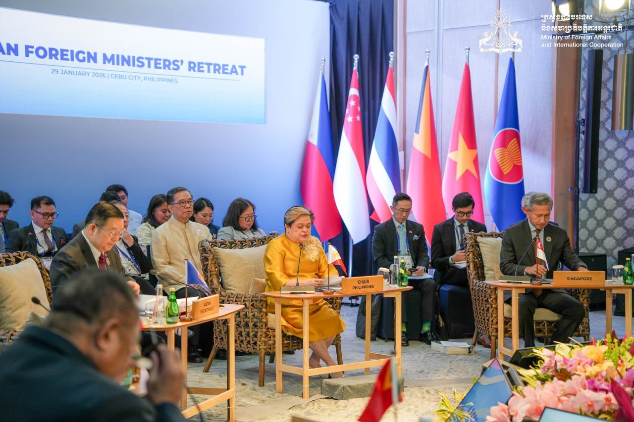 ឯកឧត្តមឧបនាយករដ្ឋមន្ត្រី ប្រាក់ សុខុន រដ្ឋមន្ត្រីការបរទេស និងសហប្រតិបត្តិការអន្តរជាតិ នៅថ្ងៃទី២៩ ខែមករា ឆ្នាំ២០២៦ បានអញ្ជើញចូលរួមកិច្ចប្រជុំចង្អៀត នៃរដ្ឋមន្ត្រីការបរទេសអាស៊ាន នៅកោះសេប៊ូ ប្រទេសហ្វីលីពីន និងបានជំហរជាថ្មីក្នុងការដោះដោះស្រាយបញ្ហាដោយសន្ដិវិធី។