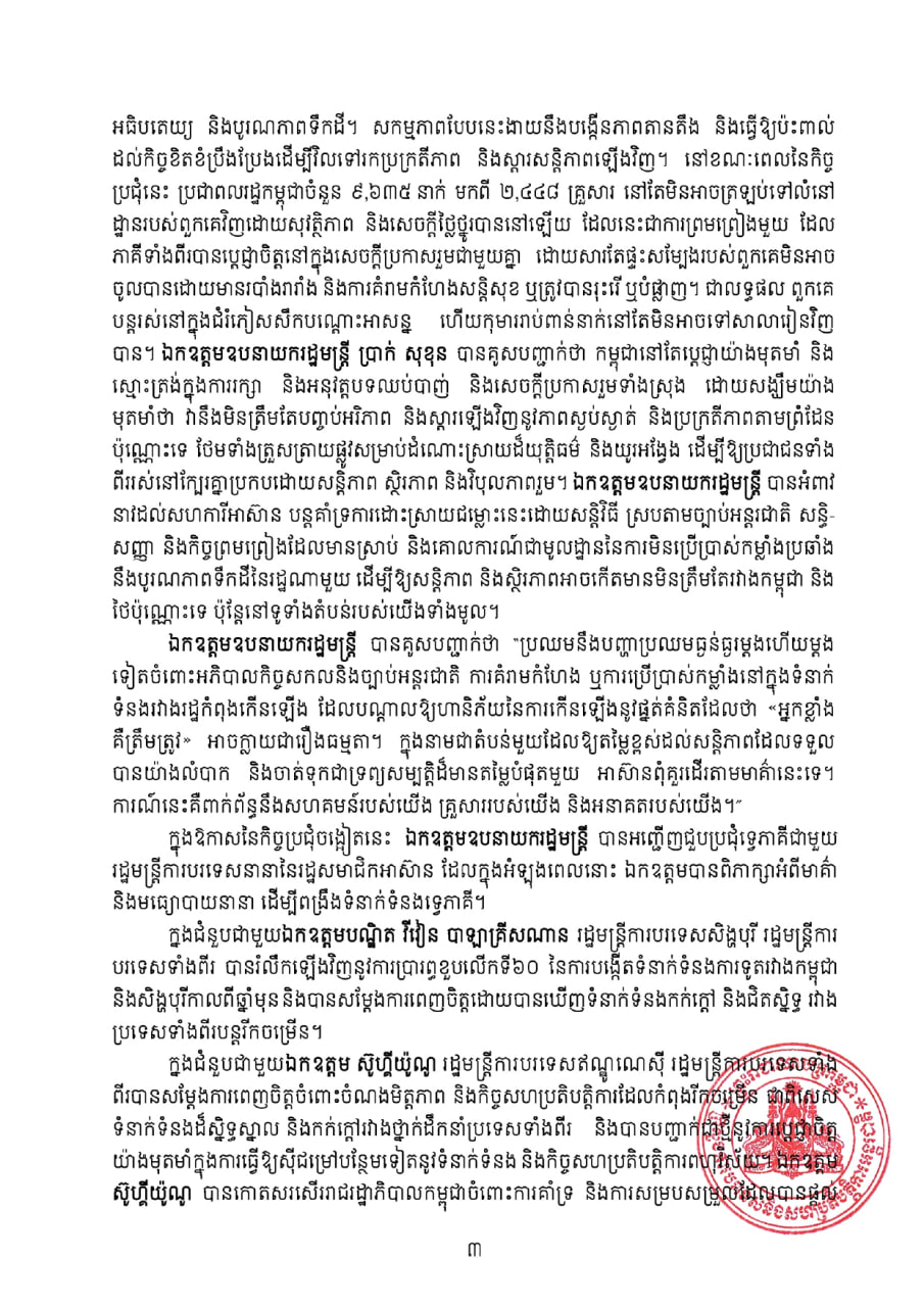 ខាងក្រោមនេះជាសេចក្ដីប្រកាសព័ត៌មានរបស់ក្រសួងការបរទេស៖