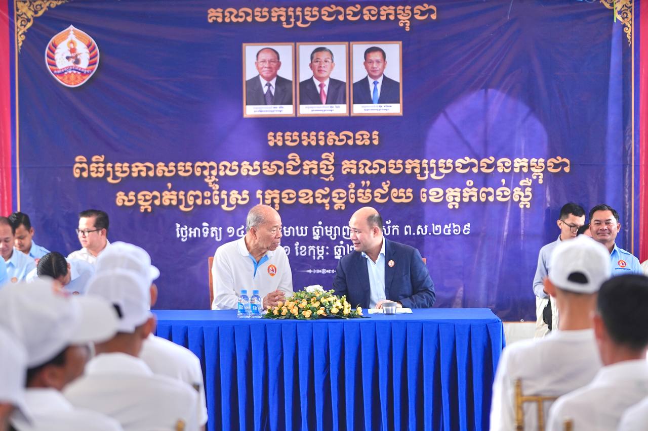 ឯកឧត្តម ហ៊ុន ម៉ានី សមាជិកគណៈអចិន្រ្តៃយ៍គណៈកម្មាធិការកណ្តាល និងជាប្រធានក្រុមការងារគណបក្សចុះមូលដ្ឋាន ខេត្តកំពង់ស្ពឺ បានអញ្ជើញប្រកាសទទួលស្គាល់សមាជិកថ្មីគណបក្សប្រជាជនកម្ពុជា ក្នុងសង្កាត់ព្រះស្រែ ក្រុងឧដុង្គម៉ែជ័យ ខេត្តកំពង់ស្ពឺ។ ពិធីនេះបានប្រព្រឹត្តទៅនៅព្រឹកថ្ងៃទី១ ខែកុម្ភៈ ឆ្នាំ២០២៦ នៅស្នាក់ការបក្សសង្កាត់ព្រះស្រែ ដោយមានវត្តមានចូលរួមពីសំណាក់ ឯកឧត្តម លោកជំទាវ ក្រុមការងារចុះជួយខេត្ត ក្រុង និងសង្កាត់ ថ្នាក់ដឹកនាំគណបក្សមូលដ្ឋាន ព្រមទាំងសមាជិកថ្មីសរុប ៥៨៥ នាក់។