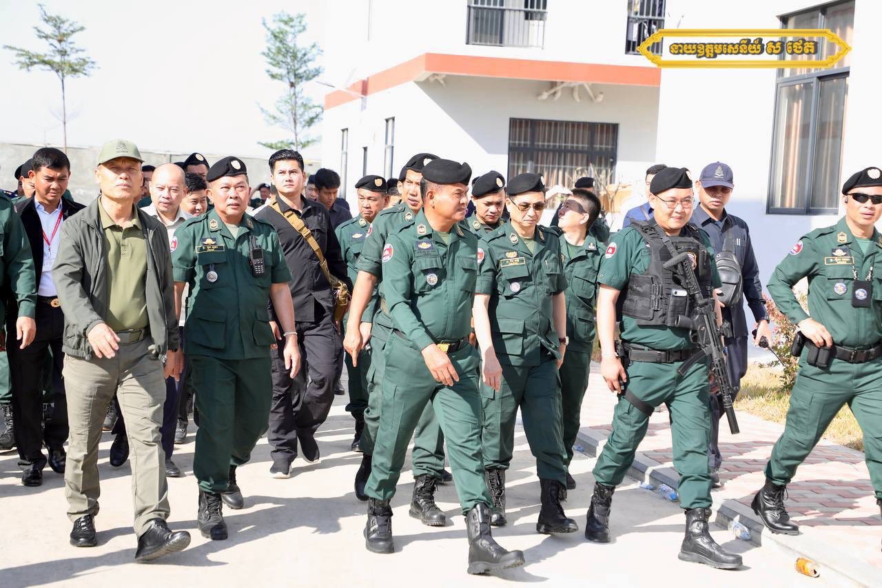 នាយឧត្តមសេនីយ៍ ស ថេត អគ្គស្នងការនគរបាលជាតិ រួមជាមួយនាយឧត្តមសេនីយ៍ សៅ សុខា អគ្គមេបញ្ជាការរងនៃកងយោធពលខេមរភូមិន្ទ និងជាមេបញ្ជាការកងរាជអាវុធហត្ថលើផ្ទៃប្រទេស និងលោក ប៉េង ពោធិ៍សា អភិបាលខេត្តស្វាយរៀង និងជាប្រធានគណៈបញ្ជាការឯកភាពរដ្ឋបាលខេត្ត ព្រឹកថ្ងៃអាទិត្យ ទី១ ខែកុម្ភៈ ឆ្នាំ២០២៦នេះ បានដឹកនាំកងកម្លាំងចុះត្រួតពិនិត្យទីតាំងបង្រ្កាបបទល្មើសឆបោកតាមប្រព័ន្ធបច្ចេកវិទ្យា ( Online Scams) ក្នុងបរិវេណកាស៊ីណូវ៉ាន់ឆឹង (A7) ស្ថិតនៅភូមិតាបឹប សង្កាត់បាវិត ក្រុងបាវិត ខេត្តស្វាយរៀង។