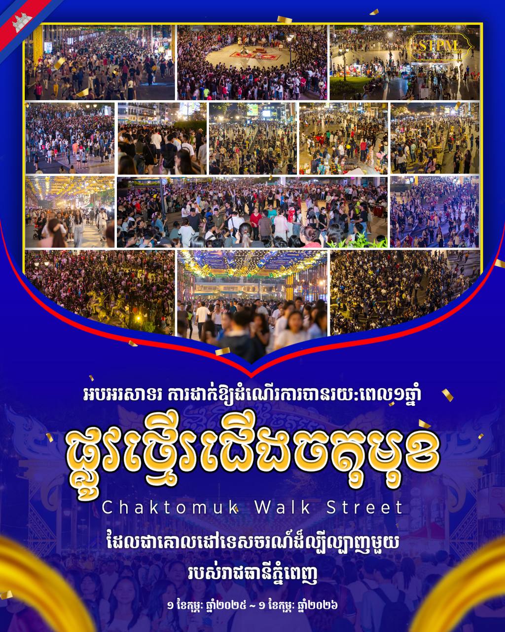 សូមជម្រាបថា រដ្ឋបាលរាជធានីភ្នំពេញ បានរៀបចំដាក់ឱ្យដំណើរការសាកល្បងផ្លូវថ្មើរជើងមួយខ្សែ នៅតីរវិថីព្រះស៊ីសុវត្ថិ ចាប់ពីផ្លូវលេខ៩៤ រហូតដល់ផ្លូវលេខ២៤០ ស្ថិតក្នុងខណ្ឌដូនពេញ ចាប់ពីម៉ោង៦ល្ងាច រហូតដល់ម៉ោង១១យប់ រៀងរាល់ចុងសប្តាហ៍ ចាប់ពីថ្ងៃទី១ ខែកុម្ភៈ ឆ្នាំ២០២៥ដោយមិនអនុញ្ញាតឱ្យមានយានជំនិះគ្រប់ប្រភេទចរាចរឡើយ។