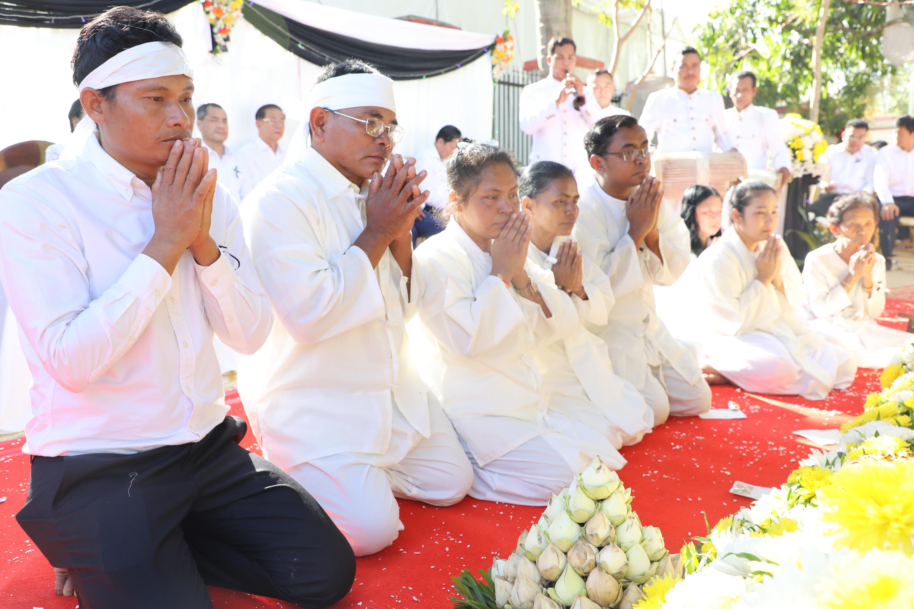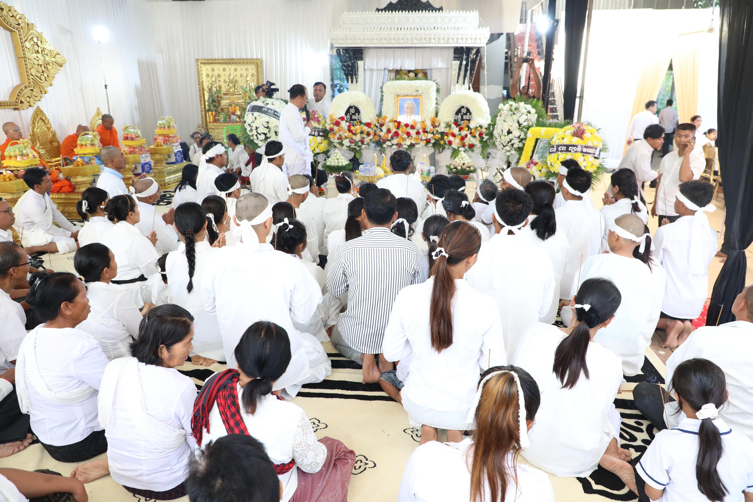 ពិធីបញ្ចុះសពបានប្រារព្ធធ្វើ ឡើងក្រោមអធិបតីរបស់សម្តេចអគ្គមហាពញាចក្រី ហេង សំរិន និងសម្តេចធម្មវិសុទ្ធវង្សា សៅ ទី ហេង សំរិន ព្រមទាំងលោក វង សូត អនុប្រធានទី ២រដ្ឋសភា និងលោកស្រី, លោក កែវ ពិសិដ្ឋ តំណាងរាស្រ្តមណ្ឌលខេត្តត្បូងឃ្មុំ និងលោកស្រី, លោក ជា សុមេធី រដ្ឋមន្រ្តីក្រសួងសង្គមកិច្ចអតីតយុទ្ធជន យុវនីតិសម្បទា និងមានការអញ្ជើញចូលរួមពីសំណាក់សមាជិកក្រុមប្រឹក្សាខេត្តអភិបាលរងខេត្ត មន្ត្រីរាជការ កងកម្លាំងប្រដាប់អាវុធ និងបងប្អូនញាតិមិត្តជិតឆ្ងាយ ជាច្រើនកុះករបានចូលរួមកាន់មរណទុក្ខយ៉ាងក្រៀមក្រំជាទីបំផុត។