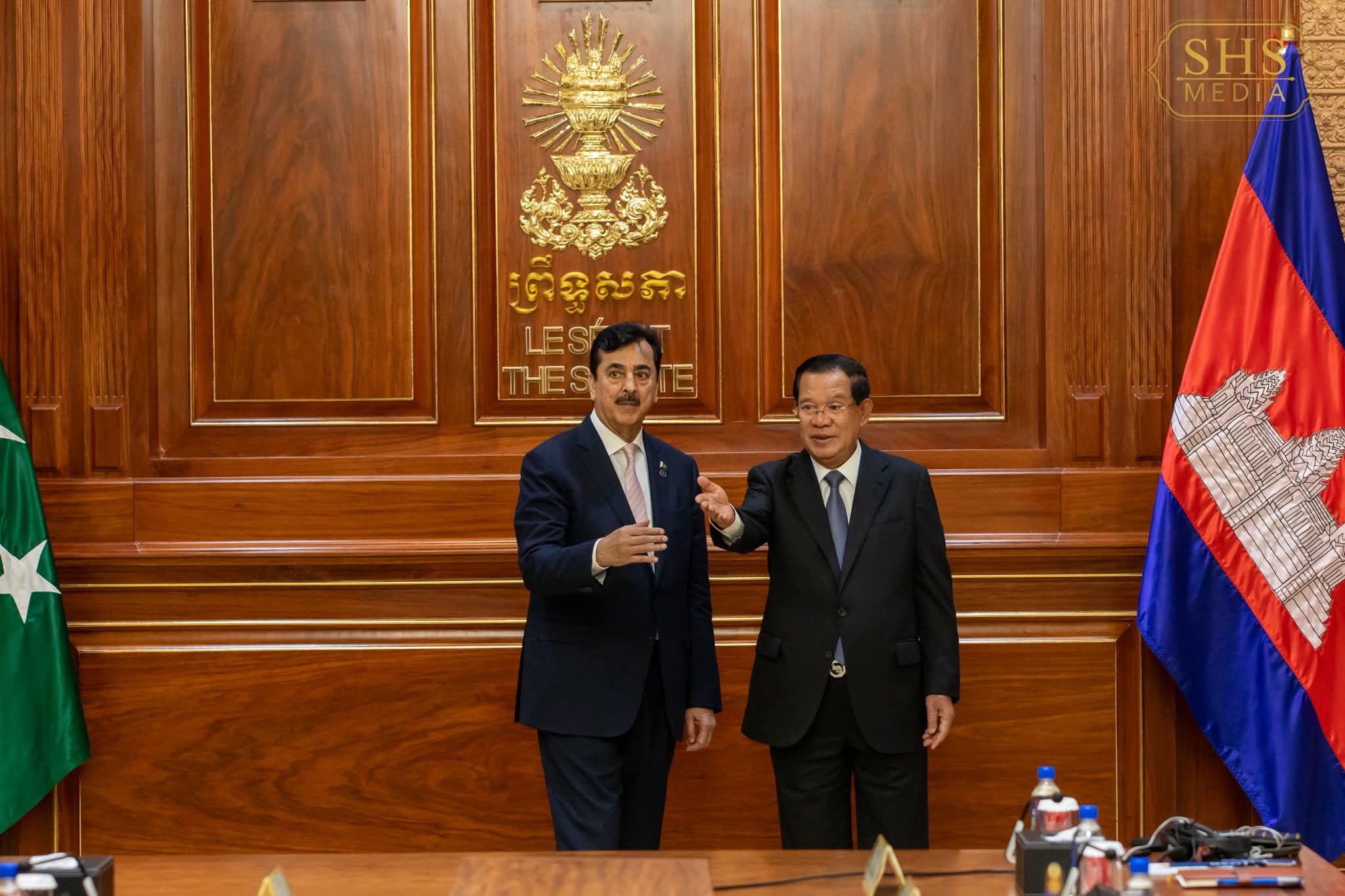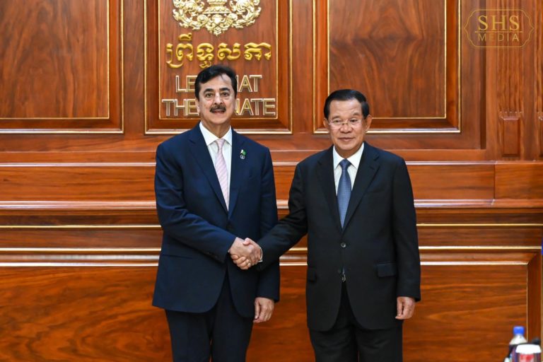 ឯកឧត្តមប្រធានព្រឹទ្ធសភាប៉ាគីស្ថានបានសម្ដែងនូវការអរគុណចំពោះការស្វាគមន៍ដ៏កក់ក្តៅរបស់សម្ដេចតេជោ ចំពោះឯកឧត្តម និងគណៈប្រតិភូ ជាពិសេសការបដិសណ្ឋារកិច្ចដ៏អស្ចារ្យ និងប្រកបដោយភាពកក់ក្តៅ។ ឯកឧត្តមបានលើកឡើងអំពីភាពរីកចម្រើននៃទំនាក់ទំនងរវាងប្រទេសយើងទាំងពីរ ដែលមានជាមួយគ្នានាពេលកន្លងមក ពិសេសនៅក្នុងអំឡុងពេលដែលសម្ដេចតេជោនៅជានាយករដ្ឋមន្ត្រី ហើយបន្តមកនូវការរីកចម្រើនបន្តទៀតក្រោមការដឹកនាំរបស់សម្ដេចមហាបវរធិបតី ហ៊ុន ម៉ាណែត នាយករដ្ឋមន្ត្រីនៃពេលបច្ចុប្បន្ននេះ។ ឯកឧត្តមក៏បានអបអរសាទរផងដែរចំពោះកម្ពុជាដែលបានរៀបចំនៃការបន្តវេនប្រកបដោយជោគជ័យ និងពោរពេញដោយសក្ដានុពល ដែលនេះបង្ហាញនូវចំណុចដ៏ល្អមួយ ក្រោមការដឹកនាំរបស់សម្ដេចតេជោតាំងពីសម្ដេចនៅជានាយករដ្ឋមន្ត្រីរហូតមកដល់ពេលបច្ចុប្បន្នជាប្រធានព្រឹទ្ធសភា នៃព្រះរាជាណាចក្រកម្ពុជា។