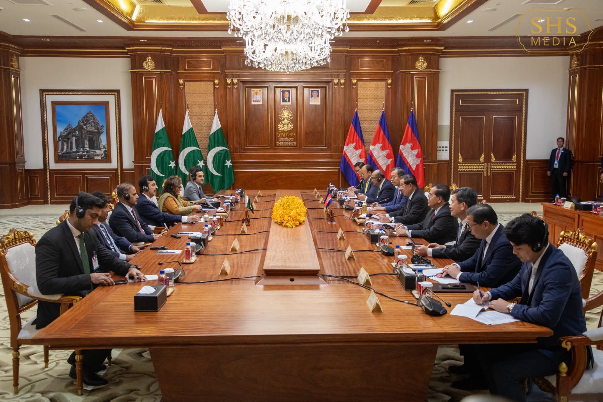 នៅវិមានសាមគ្គីភាព នៃព្រឹទ្ធសភា រសៀលថ្ងៃទី២ ខែកុម្ភៈ ឆ្នាំ២០២៦នេះ បន្ទាប់ពីពិធីបដិសណ្ឋារកិច្ចរួចហើយនោះ សម្ដេចអគ្គមហាសេនាបតីតេជោ ហ៊ុន សែន ប្រធានព្រឹទ្ធសភានៃព្រះរាជាណាចក្រកម្ពុជា ក៏បានអញ្ជើញជួបពិភាក្សាការងារជាមួយឯកឧត្តម ស៊ីយ៉េដ យូសាហ្វ រ៉ាសា ហ្គីឡានី (Syed Yusuf Raza Gillani) ប្រធានព្រឹទ្ធសភា នៃសាធារណរដ្ឋឥស្លាមប៉ាគីស្ថាន ក្នុងឱកាសដែលឯកឧត្តមអញ្ជើញបំពេញទស្សនកិច្ចផ្លូវការនៅកម្ពុជា។។