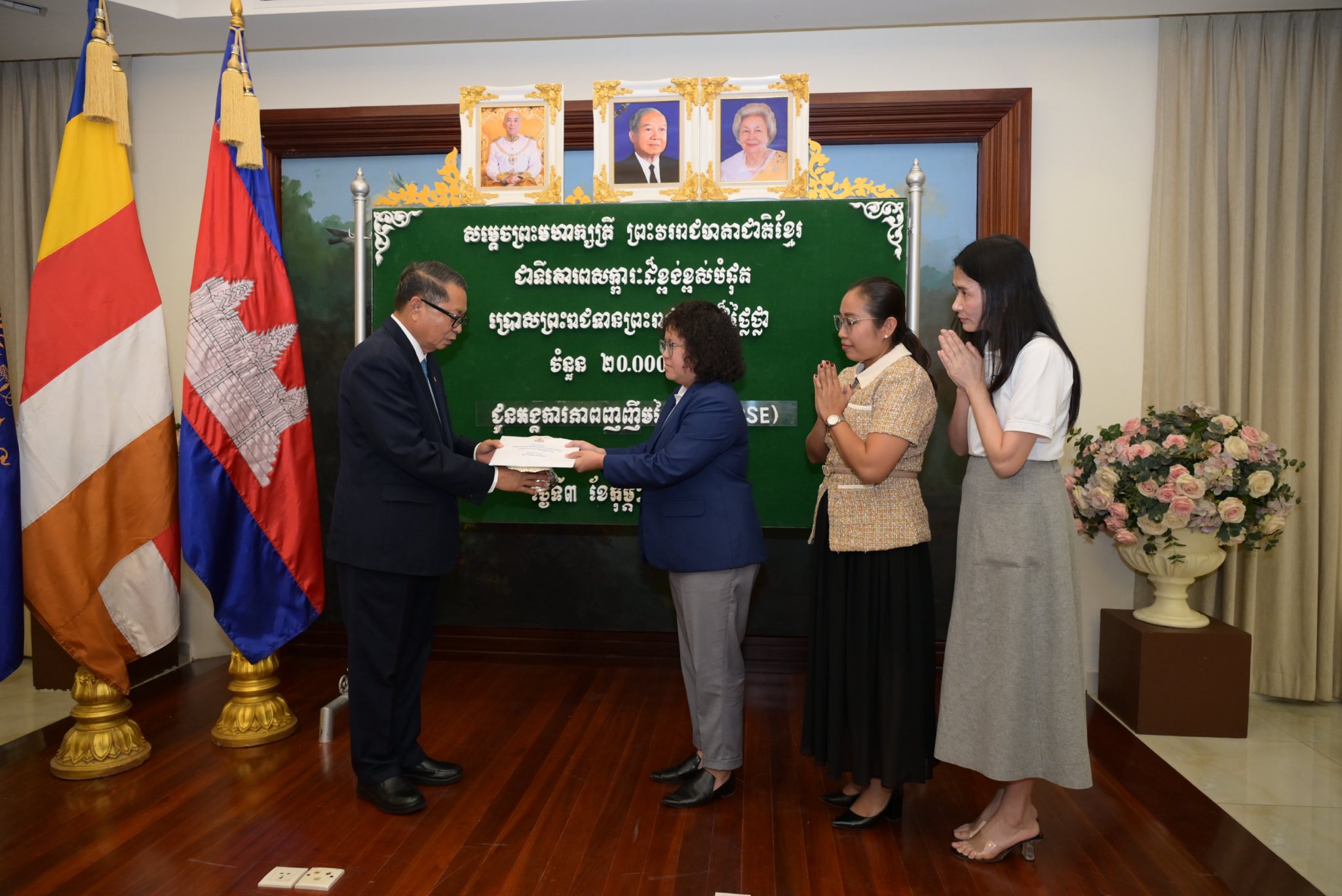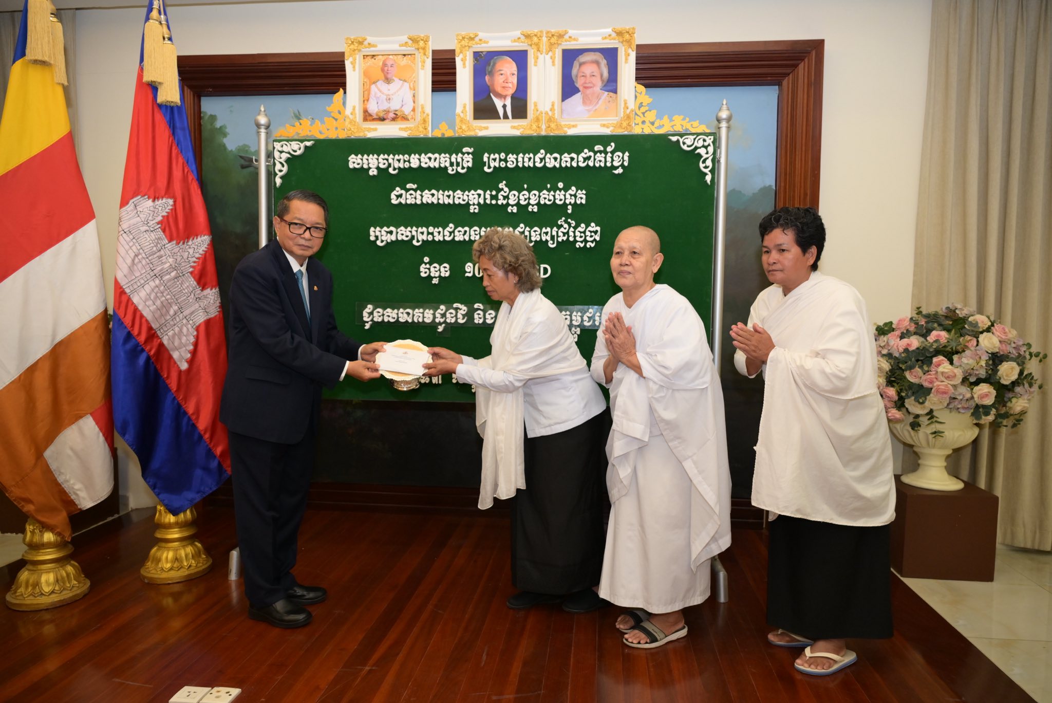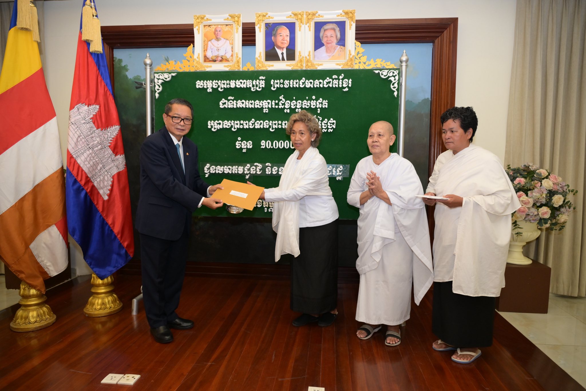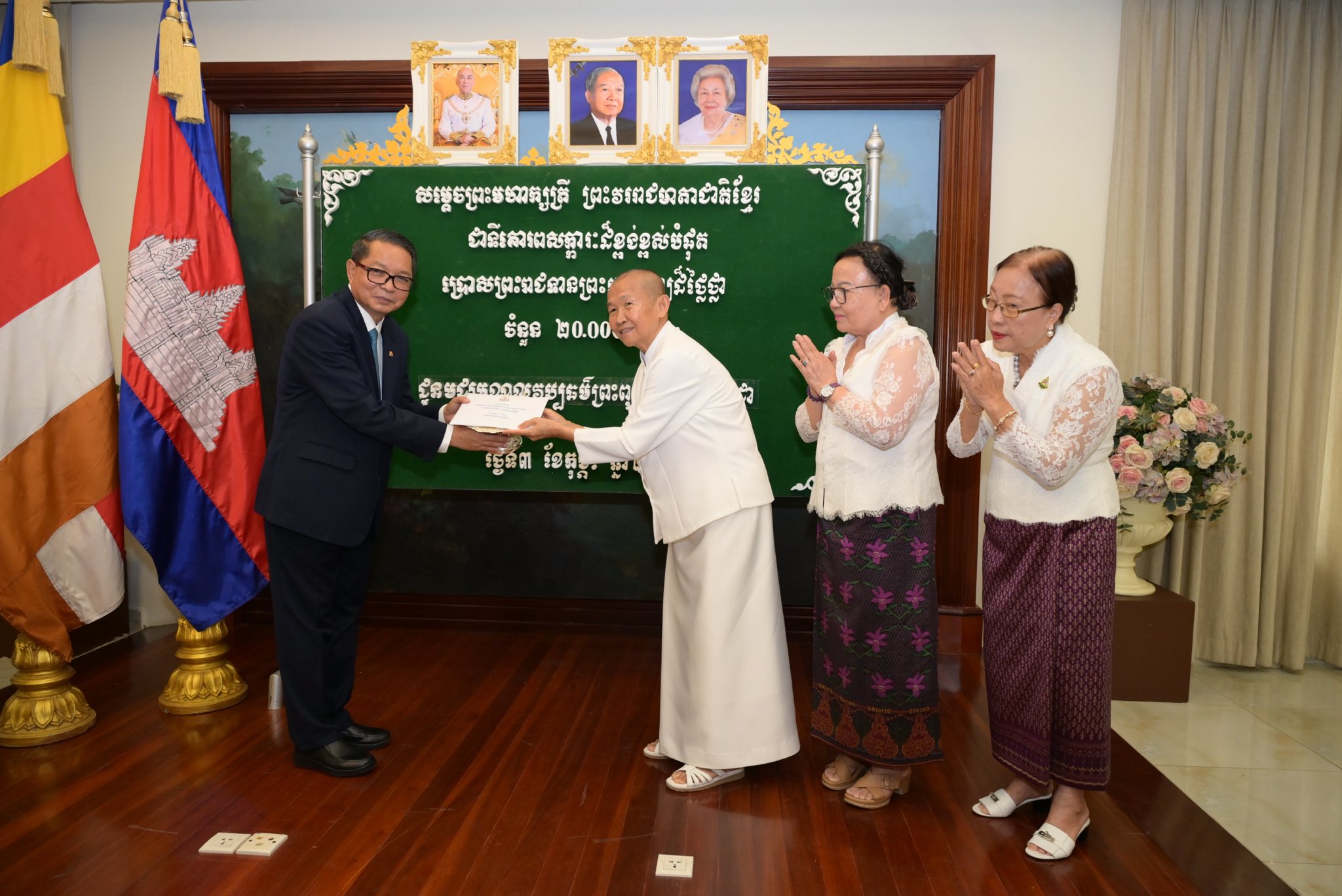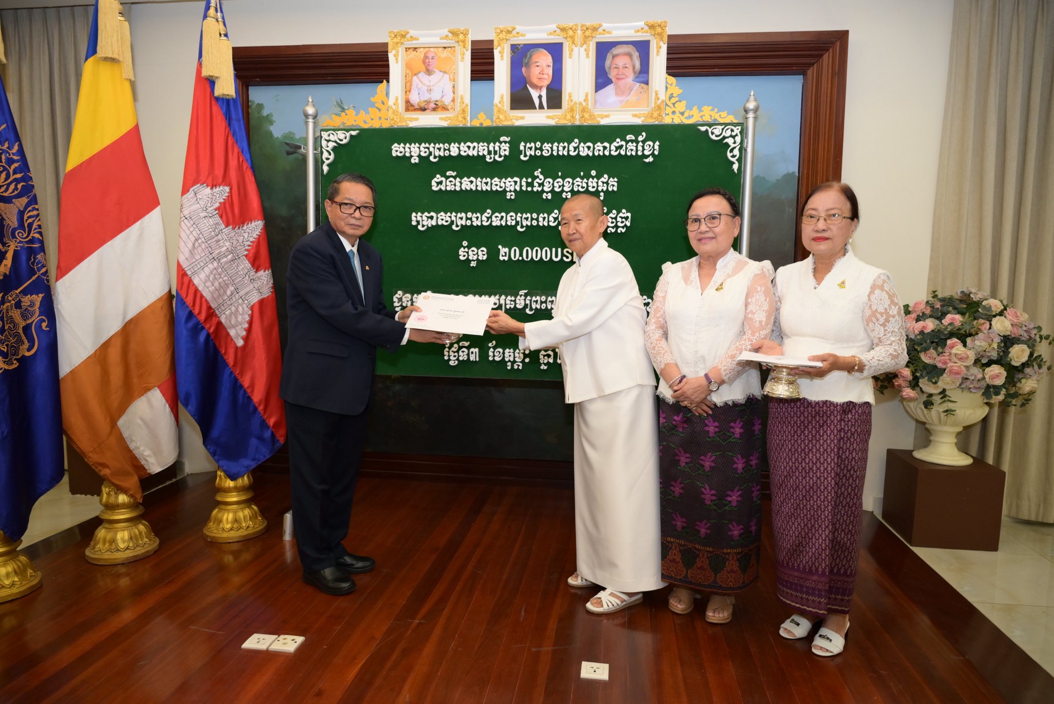 ព្រះរាជទ្រព្យ សម្តេចព្រះមហាក្សត្រី ព្រះវររាជមាតាជាតិខ្មែរ ជាទីគោរពសក្ការៈដ៏ខ្ពង់ខ្ពស់បំផុត ប្រោសព្រះរាជទាន តាមរយៈសម្តេចមហាមន្ត្រី គុយ សុផល ព្រះរាជតំណាង ក្នុងឱកាសនេះមាន៖