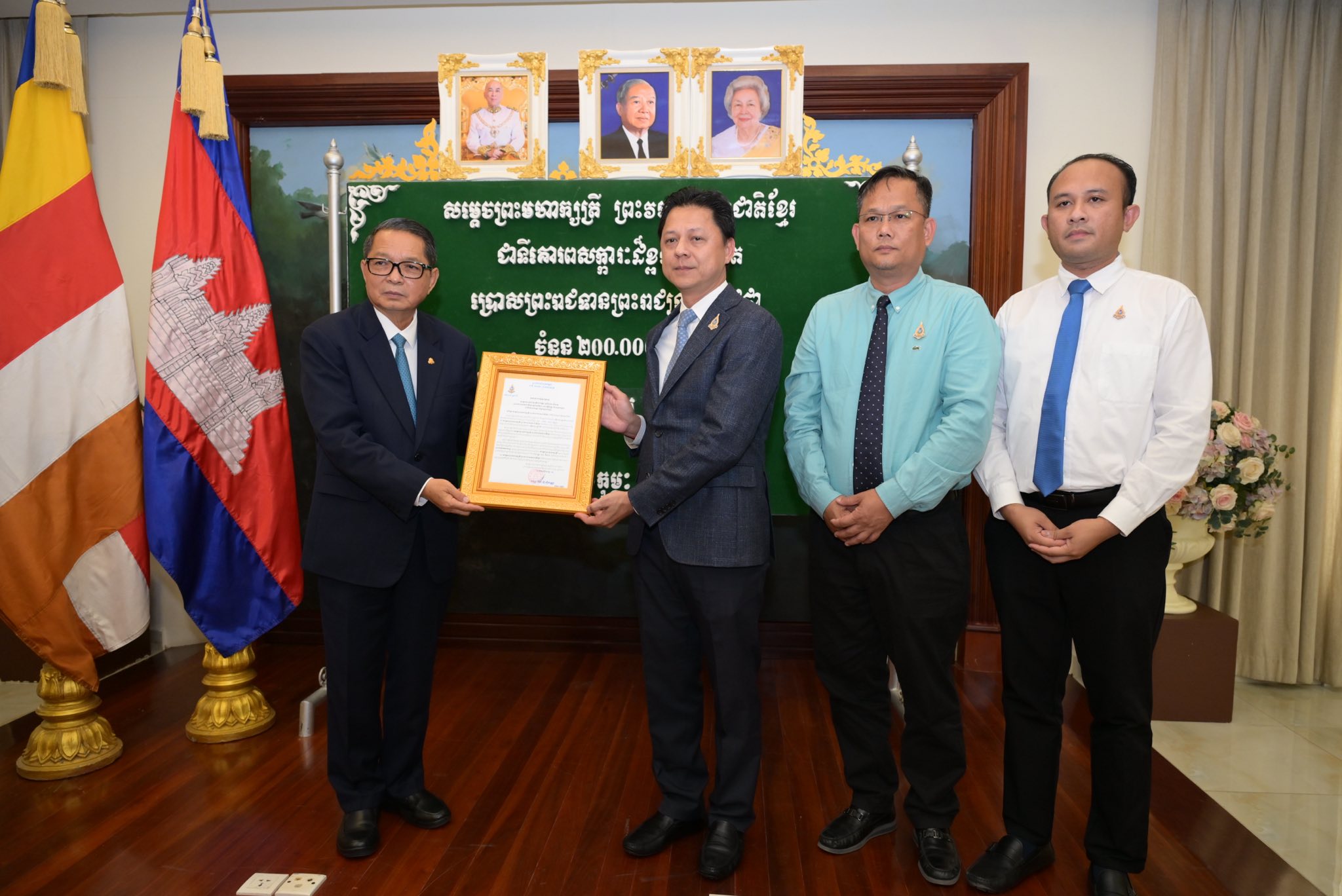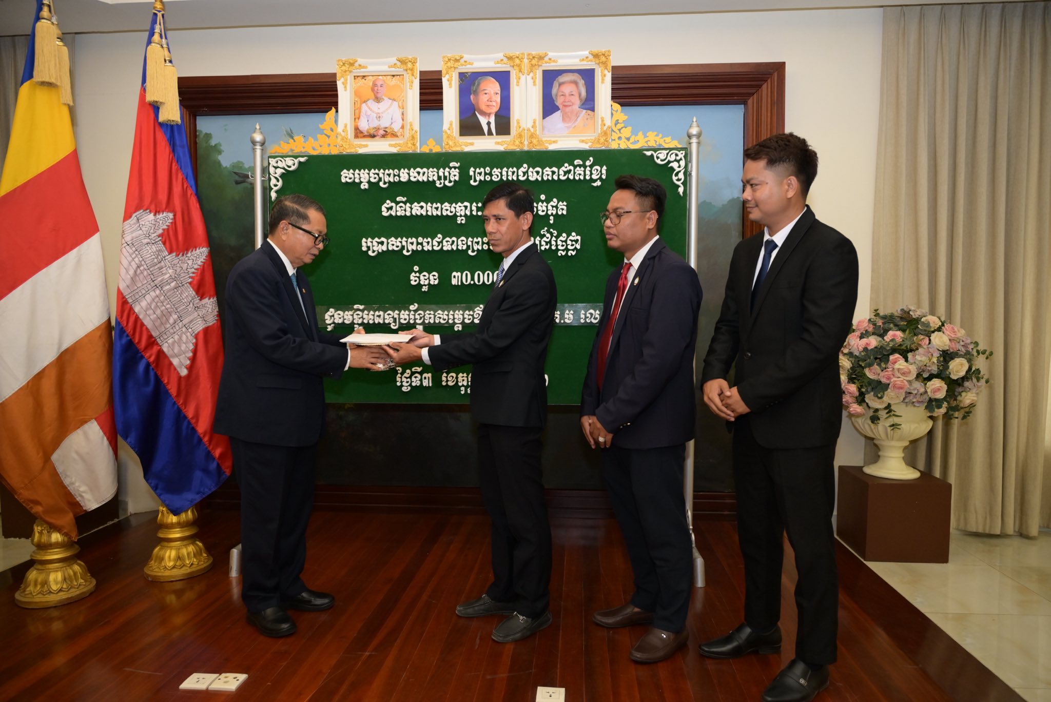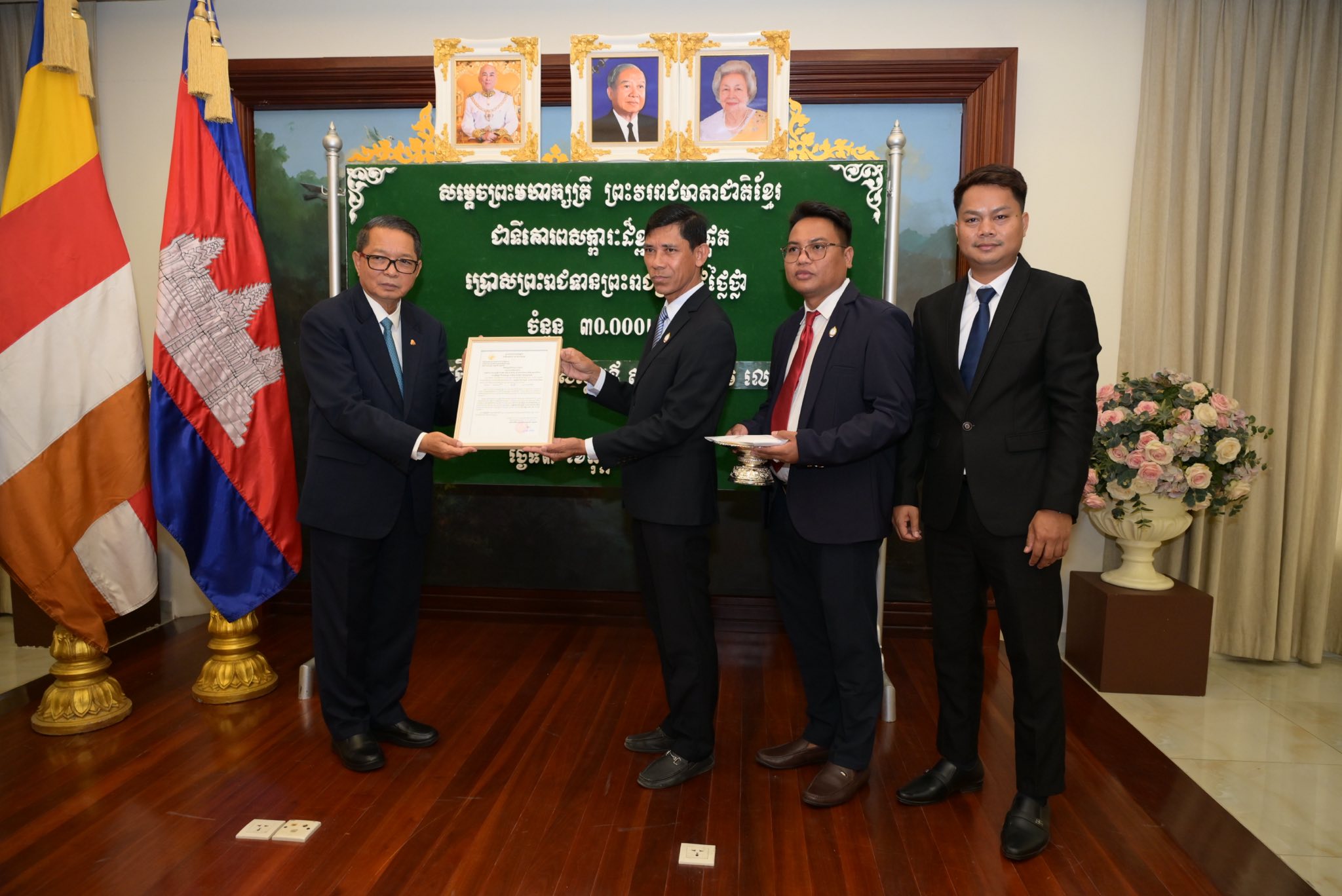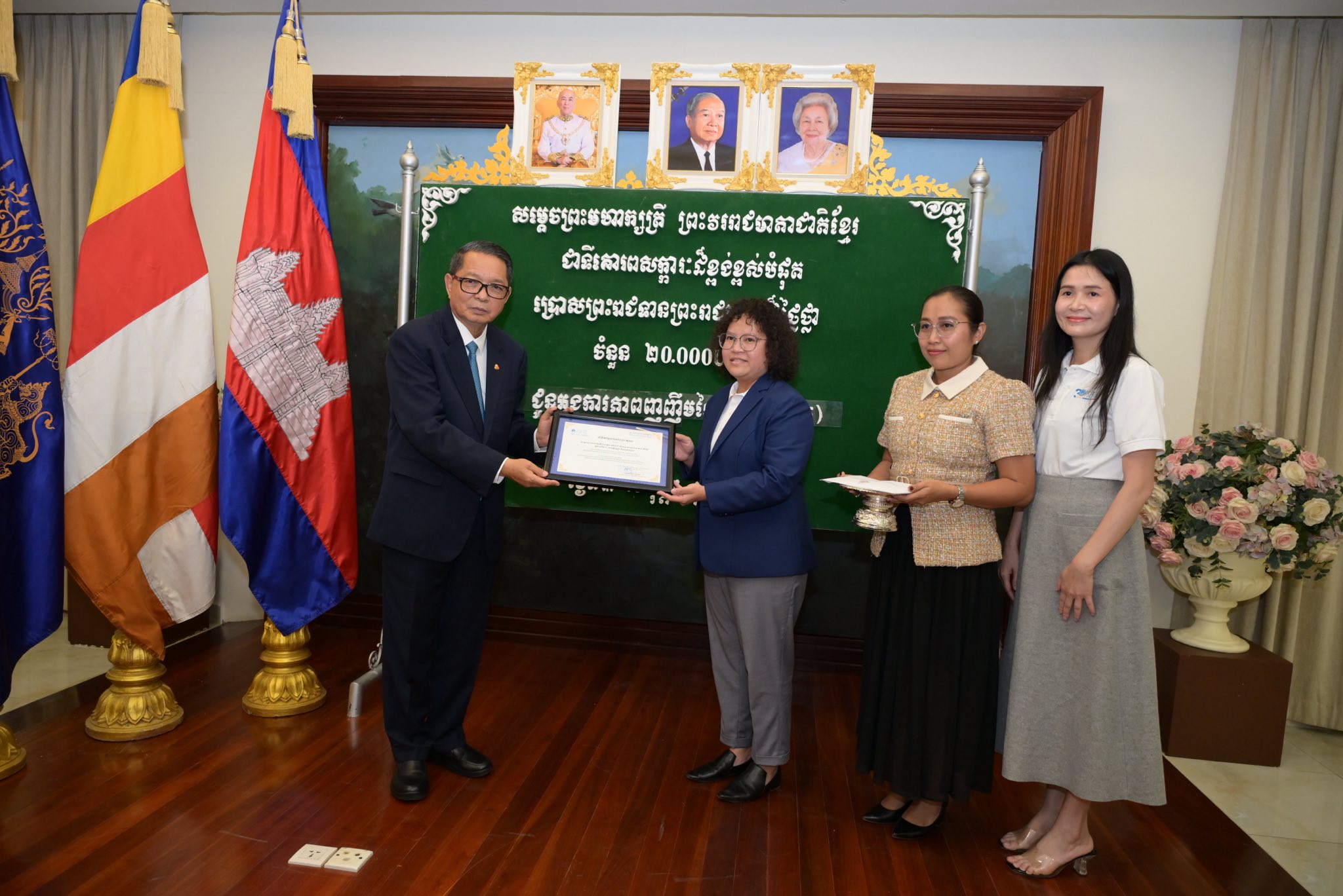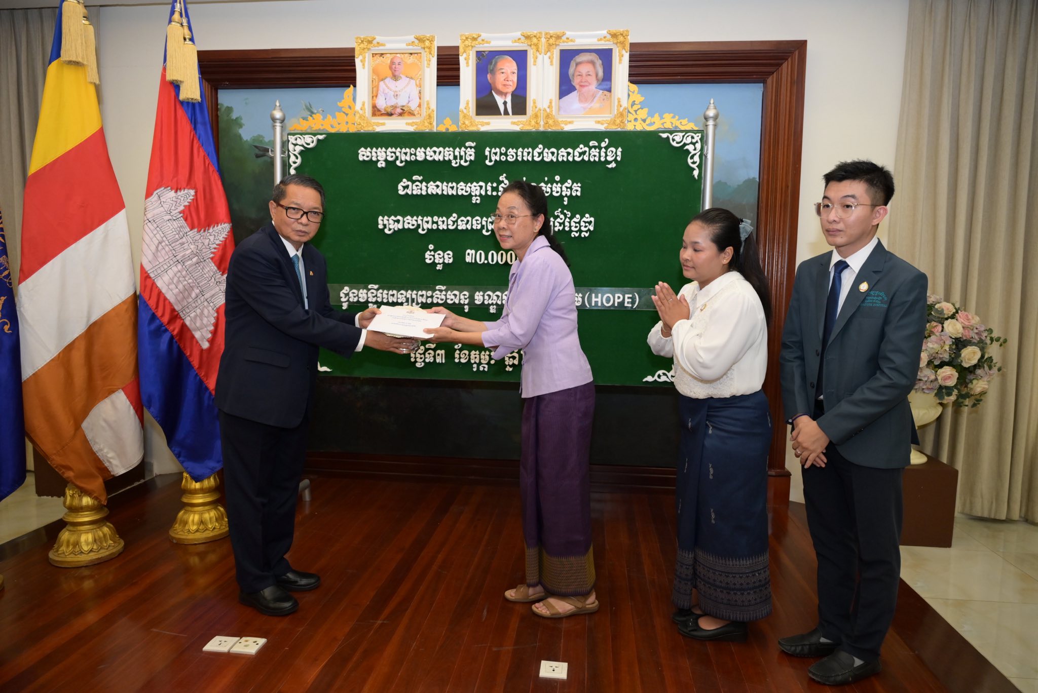 ព្រះរាជទ្រព្យ សម្តេចព្រះមហាក្សត្រី ព្រះវររាជមាតាជាតិខ្មែរ ជាទីគោរពសក្ការៈដ៏ខ្ពង់ខ្ពស់បំផុត ប្រោសព្រះរាជទាន តាមរយៈសម្តេចមហាមន្ត្រី គុយ សុផល ព្រះរាជតំណាង ក្នុងឱកាសនេះមាន៖
