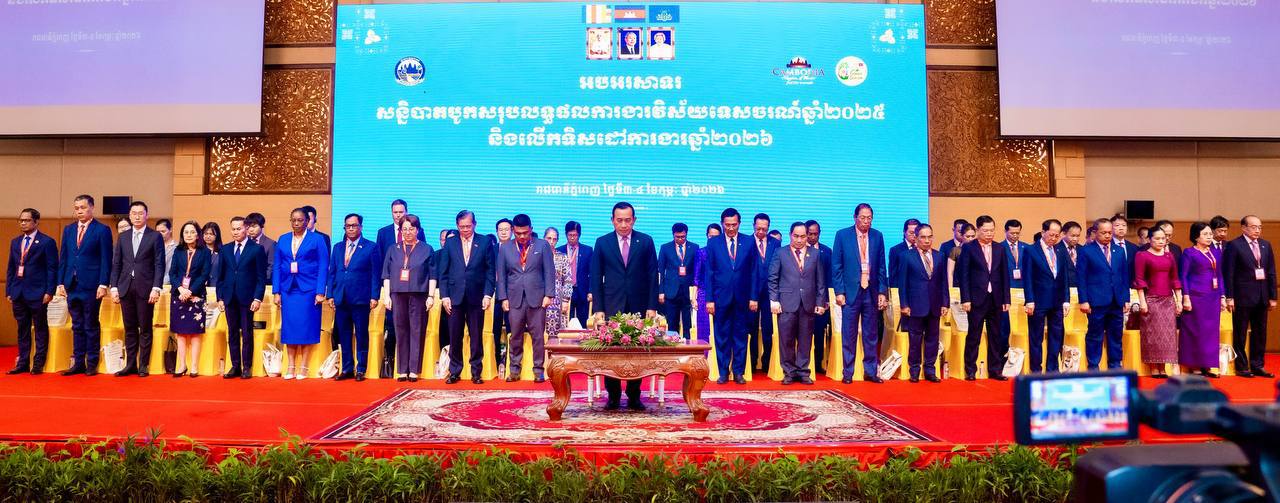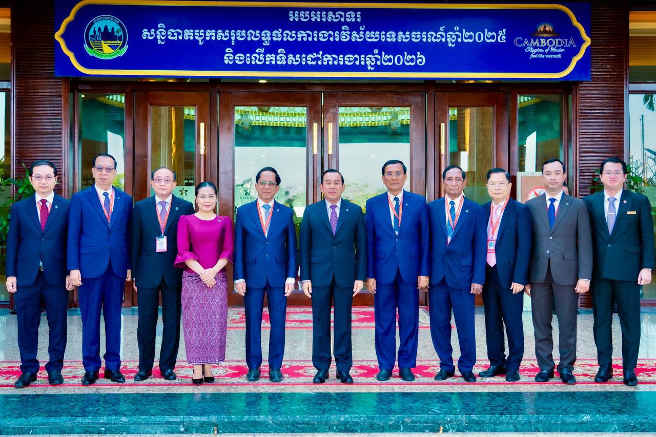 ដោយទទួលបានគោលការណ៍អនុញ្ញាតដ៏ខ្ពង់ខ្ពស់ពីសម្តេចមហាបវរធិបតី ហ៊ុន ម៉ាណែត នាយករដ្ឋមន្រ្តី នៃព្រះរាជាណាចក្រកម្ពុជា, ឯកឧត្តម ហួត ហាក់ រដ្ឋមន្ត្រីក្រសួង នៅថ្ងៃទី៣ ខែកុម្ភៈ ឆ្នាំ២០២៦ បានដឹកនាំសន្និបាតបូកសរុបលទ្ធផលការងារវិស័យទេសចរណ៍ឆ្នាំ២០២៥ និងលើកទិសដៅការងារឆ្នាំ២០២៦ ដែលប្រព្រឹត្តទៅរយៈពេល ២ថ្ងៃ ចាប់ពីថ្ងៃទី៣-៤ ខែកុម្ភៈ ឆ្នាំ២០២៦ ក្នុងគោលបំណងចំនួន៣សំខាន់ៗ៖ ទី១ បូកសរុបសភាពការណ៍វិស័យទេសចរណ៍ទាំងកម្រិតសកល តំបន់ និងកម្ពុជា,ទី២ ត្រួតពិនិត្យ វាយតម្លៃ និងបូកសរុបលទ្ធផលការងារដែលសម្រេចបាន និងការងារដែលមិនទាន់សម្រេចបានចន្លោះសន្និបាតឆ្នាំ២០២៥ និងសន្និបាតឆ្នាំ២០២៦នេះ ដោយរួមគ្នាពិភាក្សា លើកយោបល់ ផ្តល់ធាតុចូល ផ្លាស់ប្តូរទស្សនៈឱ្យបានគ្រប់ជ្រុងជ្រោយ និងស៊ីចង្វាក់ពីគ្រប់ផ្នែកពាក់ព័ន្ធទាំងអស់ ទាំងផ្នែកដែលស្ថិតក្នុងវិស័យទេសចរណ៍ដោយផ្ទាល់ និងផ្នែកដែលគាំទ្រដោយប្រយោល ដើម្បីរកឱ្យឃើញនូវចំណុចខ្លាំង, ចំណុចខ្វះខាត, បញ្ហាប្រឈមពិតប្រាកដ និងសំណូមពរពីគ្រប់ភាគីពាក់ព័ន្ធ, និងទី៣ គឺការឈានទៅដាក់ចេញរួមគ្នានូវវិធានការគន្លឹះ និងលើកទិសដៅការងារបន្តដើម្បីអភិវឌ្ឍន៍វិស័យទេសចរណ៍ ដោយឈរលើភាពជាក់ស្តែង ប្រាកដនិយម, ស្របតាមអភិក្រម «ជវភាពនៃប្រព័ន្ធតួអង្គតែមួយ», និងអភិក្រម «រួមគិត រួមធ្វើ រួមទទួលខុសត្រូវ និងរួមគ្នាទទួលផល» ដោយឈរលើស្មារតី បុរេសកម្ម, សកម្ម, អន្តរសកម្ម និង (ក្នុងករណីចាំបាច់) ប្រតិកម្ម ។