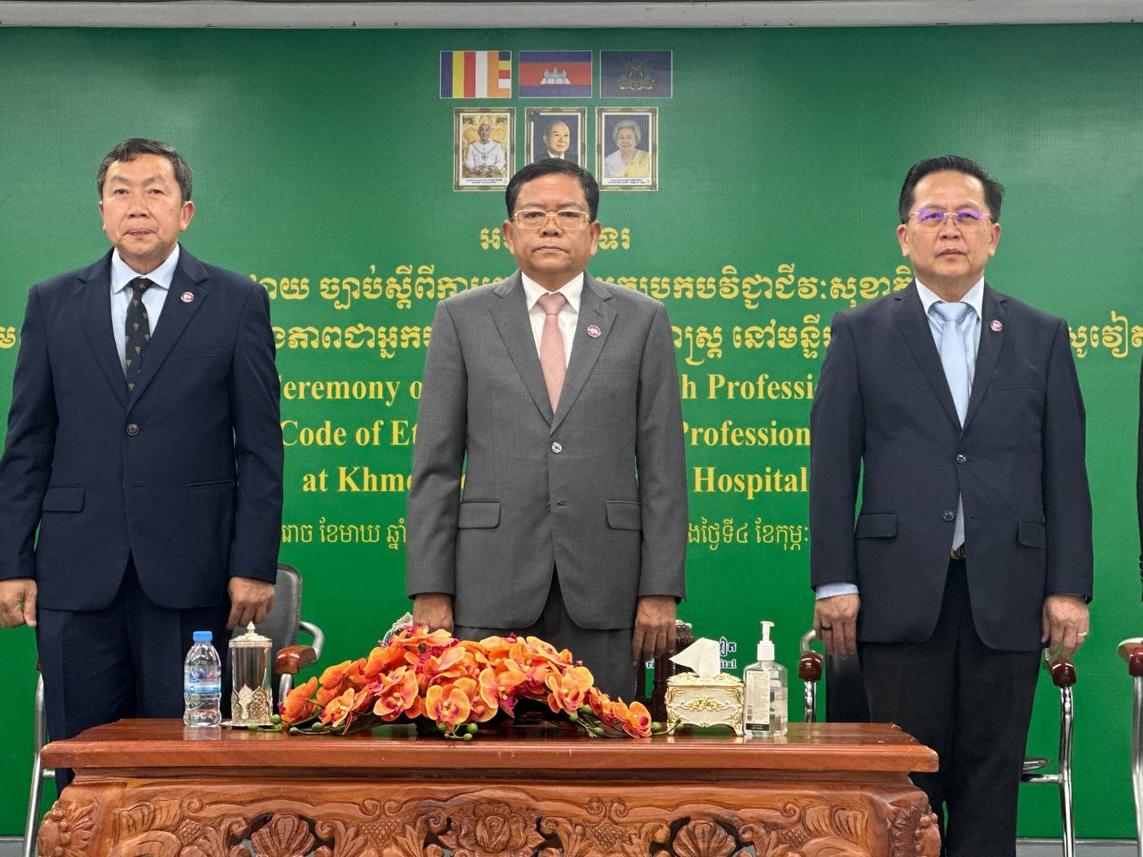 តាមនាមក្រុមប្រឹក្សាគណៈគ្រូពេទ្យជាតិ ឯកឧត្តមសាស្ដ្រាចារ្យបានប្ដេជ្ញា ខិតខំធ្វើយ៉ាងណាការងាររបស់ខ្លួន ដើម្បីការពារ និងធានានូវកិត្ដិយសរបស់វិជ្ជាជីវៈសាស្ដ្រ និងសូមអំពាវនាវជាគ្រូពេទ្យត្រូវខិតខំជាមួយក្រសួងសុខាភិបាល និងគណៈវិជ្ជាជីវៈ ជាមួយនឹងអង្គភាព បំពេញការងារយ៉ាងម៉េចឱ្យគោរពទៅច្បាប់វិន័យ ហើយរាល់ការងារទាំងអស់ក្នុងការបម្រើសេវានេះ គឺត្រូវតែយកគោលការណ៍ក្រមសីលធម៌នេះ មកធ្វើជាត្រីវិស័យក្នុងការសម្រេចចិត្ដគ្រប់ការបម្រើសេវាជូនប្រជាពលរដ្ឋ។