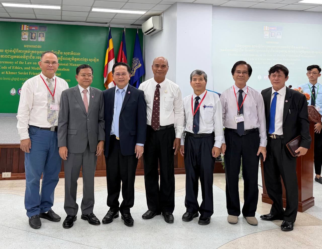 ជាមួយគ្នានោះលោកសាស្ដ្រាចារ្យ ងី ម៉េង នាយកមន្ទីរពេទ្យមិត្ដភាពខ្មែរ-សូវៀត តាមនាមថ្នាក់ដឹកនាំ និងបុគ្គលិកសុខាភិបាលទាំងអស់នៃមន្ទីរពេទ្យមិត្ដភាពខ្មែរ-សូវៀត សូមប្ដេជ្ញាចិត្ដចូលរួមអនុវត្ដច្បាប់ ក្រមសីលធម៌ និងស្ដង់ដាវិជ្ជាជីវៈវេជ្ជសាស្រ្ដឱ្យបានខ្ជាប់ខ្ជួន និងជាប់លាប់ ដើម្បីចូលរួមលើកកម្ពស់គុណភាពបម្រើសេវាព្យាបាល និងចូលរួមអភិវឌ្ឍវិស័យសុខាភិបាលកម្ពុជា៕