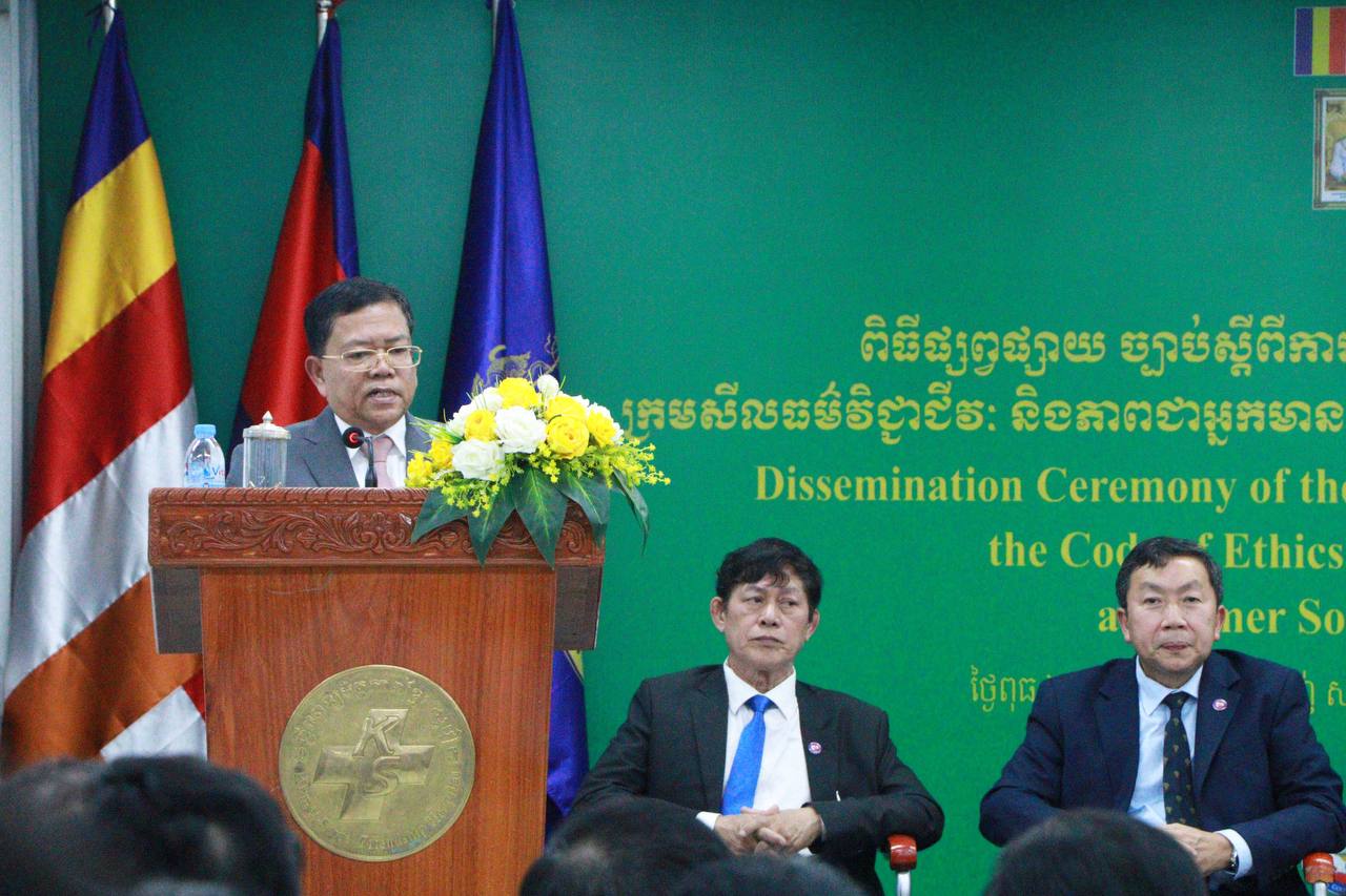ឯកឧត្តមសាស្ដ្រាចារ្យបានថ្លែងទៀតថា ការរៀបចំឱ្យមានផ្សព្វផ្សាយនាពេលនេះ បានបញ្ជាក់ឱ្យឃើញច្បាស់ពីការយកចិត្ដទុកដាក់យ៉ាងខ្ពស់របស់ក្រសួងសុខាភិបាល និងគណៈគ្រូពេទ្យជាតិ ចំពោះការអនុវត្ដន៍វិជ្ជាជីវៈត្រឹមត្រូវមានគុណភាព មានសុវត្ថិភាព ស្របតាមច្បាប់ និងស្ដង់ដាជាតិ និងអន្ដរជាតិរបស់បុគ្គលិកសុខាភិបាល ។