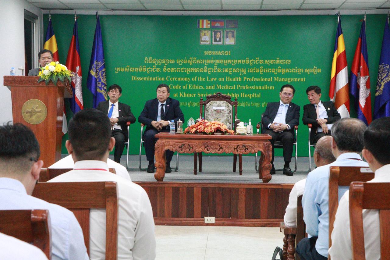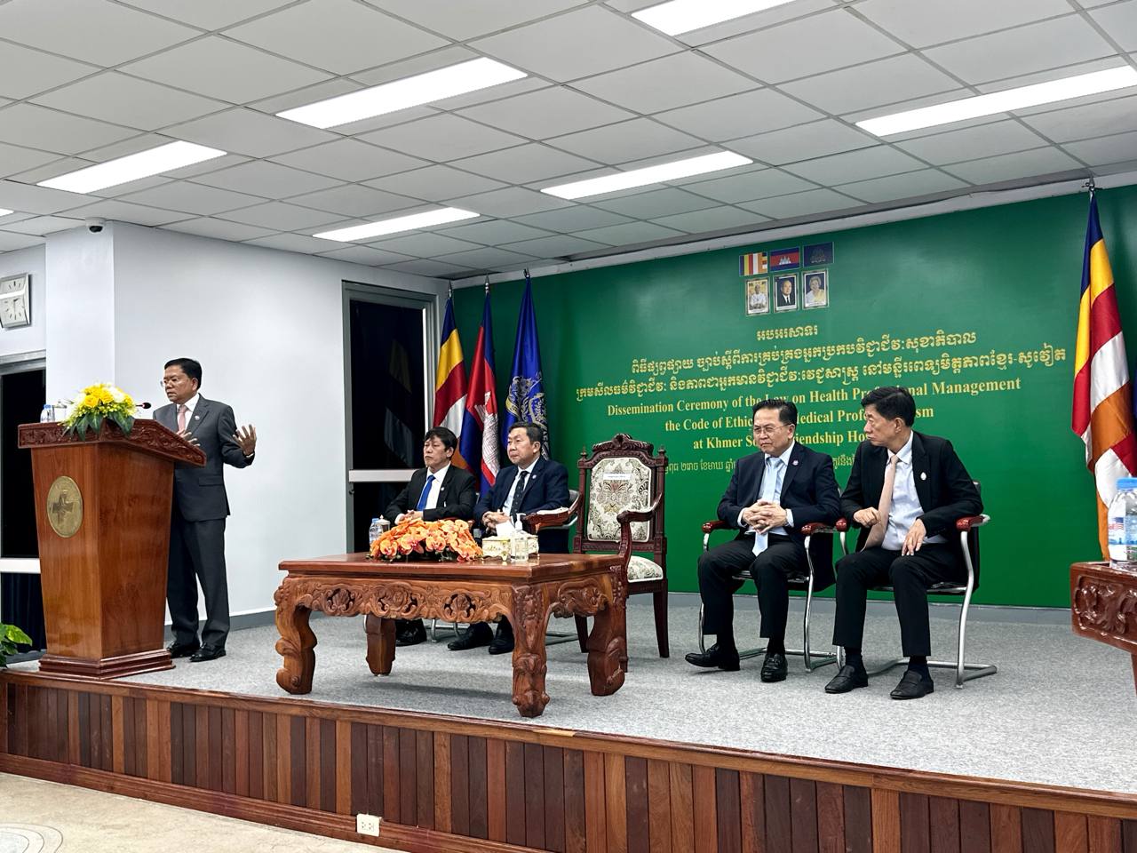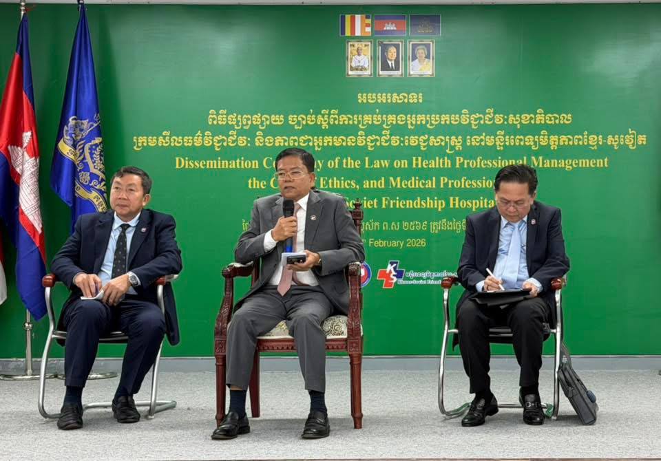 ការថ្លែងយ៉ាងដូច្នេះរបស់ឯកឧត្តមសាស្ដ្រាចារ្យ ឡឹម តារា ក្នុងពិធីផ្សព្វផ្សាយច្បាប់ស្ដីពីការគ្រប់គ្រងអ្នកប្រកបវិជ្ជាជីវៈសុខាភិបា ក្រមសីលធម៌វិជ្ជាជីវៈ និងភាពជាអ្នកមានវិជ្ជាជីវៈវេជ្ជសាស្ដ្រ» នាថ្ងៃទី៤ ខែកុម្ភៈ ឆ្នាំ២០២៦ នៅមន្ទីរពេទ្យមិត្ដភាពខ្មែរ-សូវៀត។