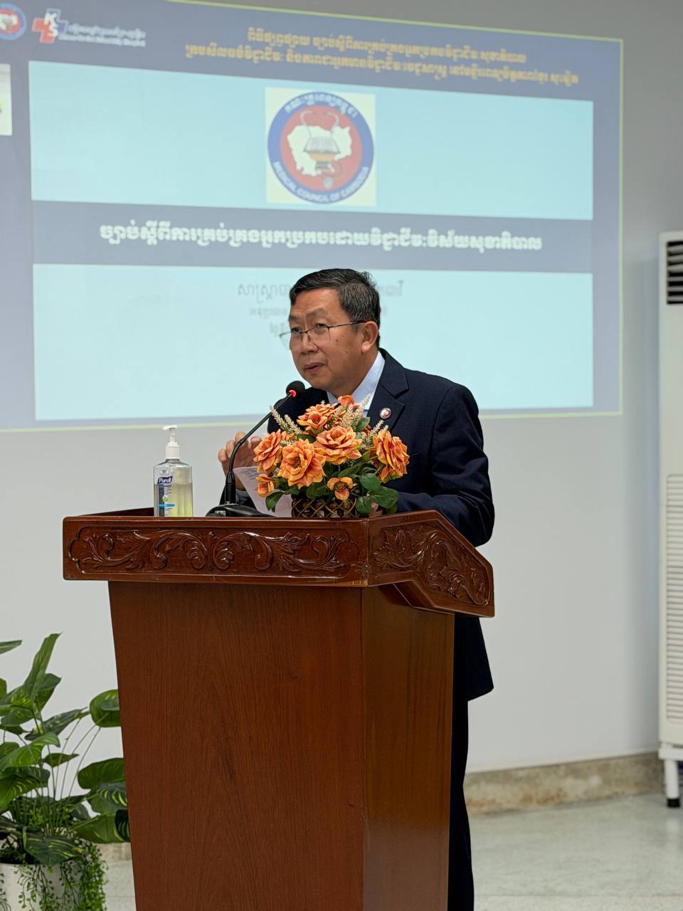 ឯកឧត្តមសាស្ដ្រាចារ្យបានគូសបញ្ជាក់ថា គណៈគ្រូពេទ្យជាតិ មានតួនាទីក្នុងការគ្រប់គ្រងទៅលើអ្នកប្រកបវិជ្ជាជីវៈគ្រូពេទ្យទាំងអស់ ហើយបំពេញកិច្ចការងារវិជ្ជាជីវៈប្រកបដោយភាពថ្លៃថ្នូរ និងកិត្ដិយស មានគុណភាព សុវត្ថិភាព ដែលជាទីទុកចិត្ដសម្រាប់ប្រជាជនយើងទាំងអស់គ្នា ហើយតួនាទីសំខាន់នោះ គឺធ្វើយ៉ាងម៉េចឱ្យបុគ្គលិកពេទ្យស្រលាញ់មុខវិជ្ជាជីវៈ ហើយថែរក្សាកិត្ដិយសវិជ្ជាជីវៈឱ្យមានភាពថ្លៃថ្នូរ។ ដូច្នេះច្បាប់ស្ដីពីការគ្រប់គ្រងអ្នកប្រកបវិជ្ជាជីវៈសុខាភិបាល មិនមែនជាការដាក់កំហិតលើការអនុវត្ដន៍វិជ្ជាជីវនោះទេ ប៉ុន្ដែជាឧបករណ៍ដ៏សំខាន់មួយសម្រាប់ការពារអ្នកជំងឺ និងសុខុមាលភាពសាធារណៈ ក៏ដូចជាការការពារសេចក្ដីថ្លៃថ្នូរអ្នកប្រកបវិជ្ជាជីវៈផងដែរ។