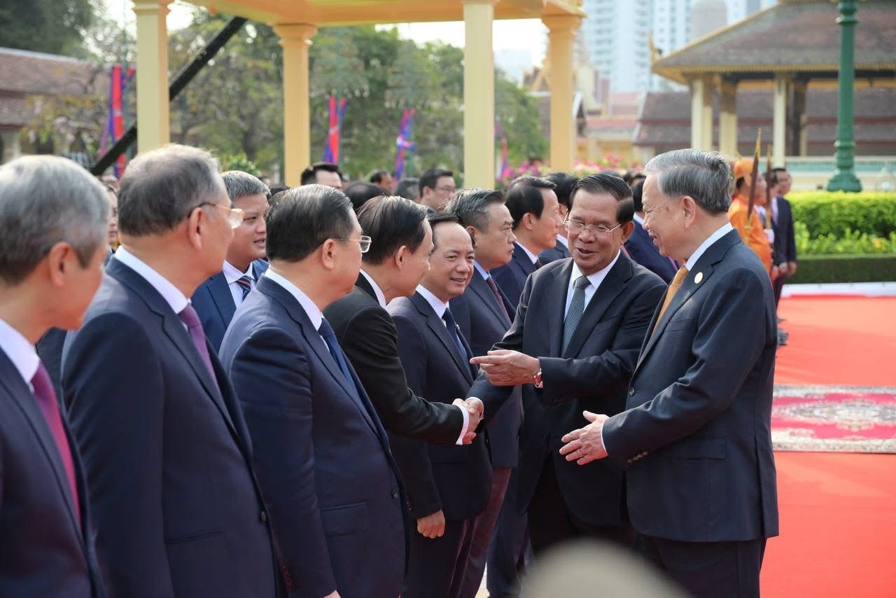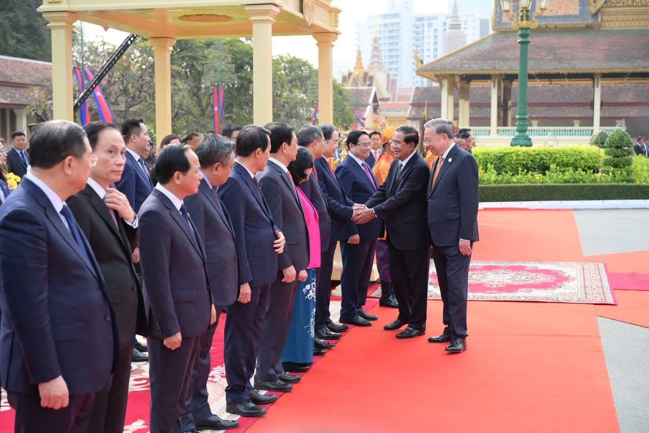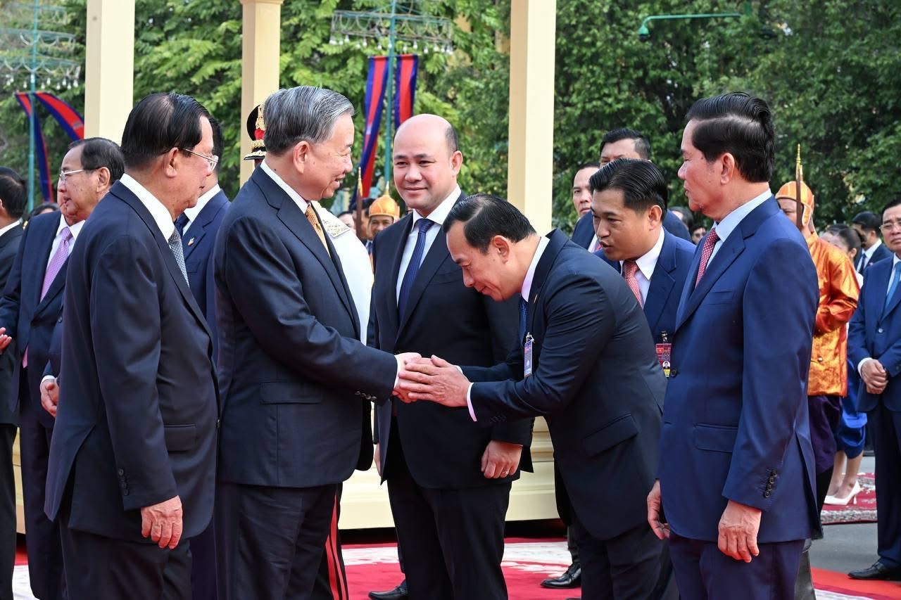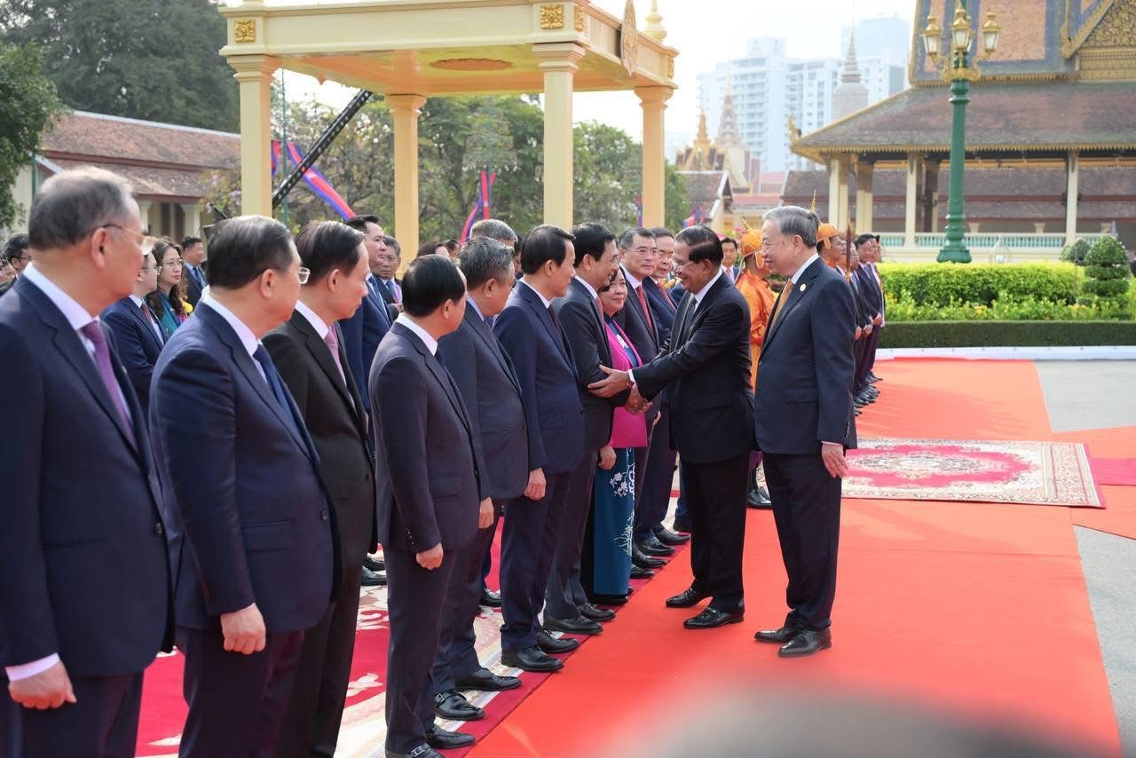 នៅព្រះបរមរាជវាំង នាព្រឹកថ្ងៃសុក្រ ៤រោច ខែមាឃ ឆ្នាំម្សាញ់ សប្តស័ក ពុទ្ធសករាជ ២៥៦៩ ត្រូវនឹងថ្ងៃទី៦ ខែកុម្ភៈ ឆ្នាំ២០២៦នេះ សម្ដេចអគ្គមហាសេនាបតីតេជោ ហ៊ុន សែន ប្រធានព្រឹទ្ធសភានៃព្រះរាជាណាចក្រកម្ពុជា បានអញ្ជើញជាព្រះរាជតំណាងដ៏ខ្ពង់ខ្ពស់បំផុត របស់ព្រះករុណាព្រះបាទសម្ដេចព្រះបរមនាថ នរោត្តម សីហមុនី ព្រះមហាក្សត្រនៃព្រះរាជាណាចក្រកម្ពុជា ទទួលបដិសណ្ឋារកិច្ចស្វាគមន៍ផ្លូវរដ្ឋជូន ឯកឧត្តម តូ ឡឹម អគ្គលេខាធិការបក្សកុម្មុយនីស្តវៀតណាម ជាមួយនឹងជំនួបសាវនាកាផងដែរ ក្នុងឱកាសដែល ឯកឧត្តម អញ្ជើញបំពេញទស្សនកិច្ចផ្លូវរដ្ឋនៅកម្ពុជា។