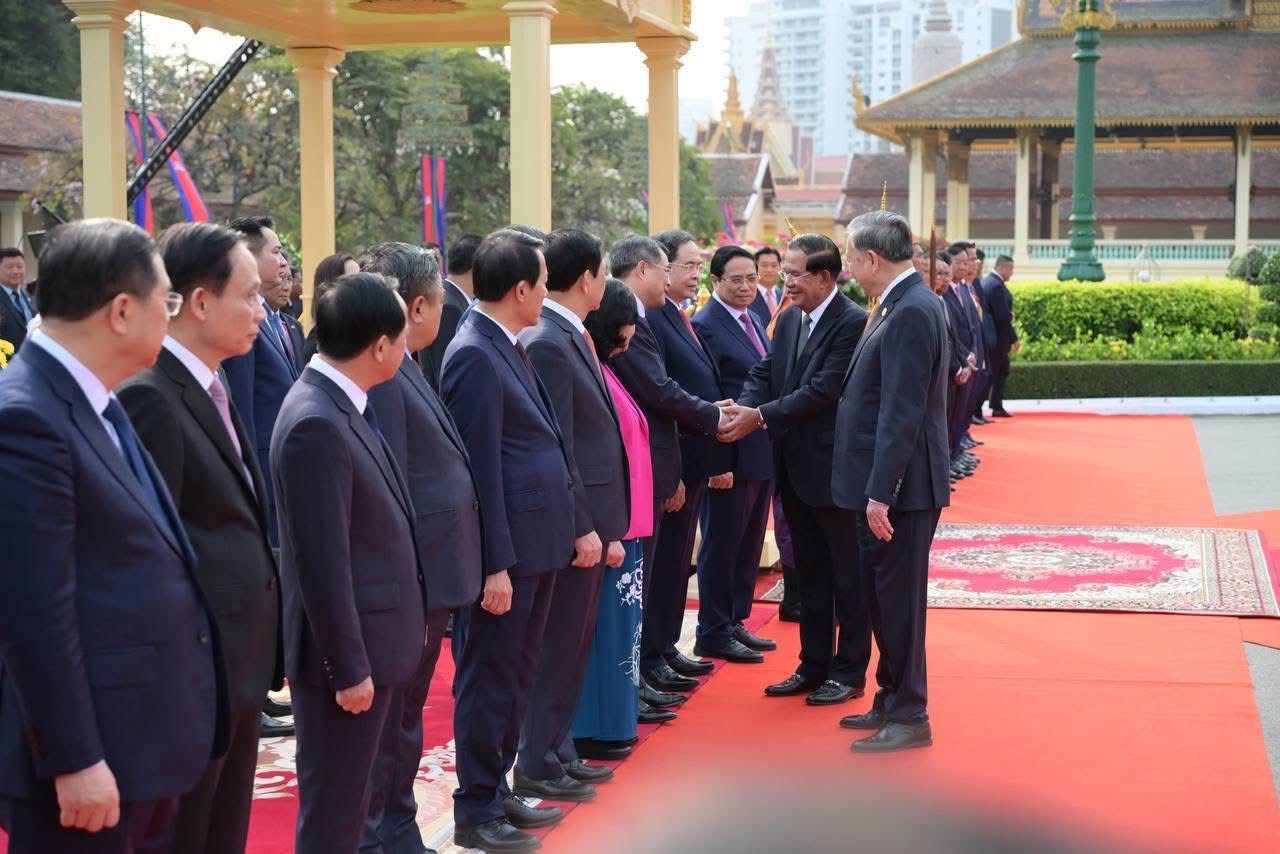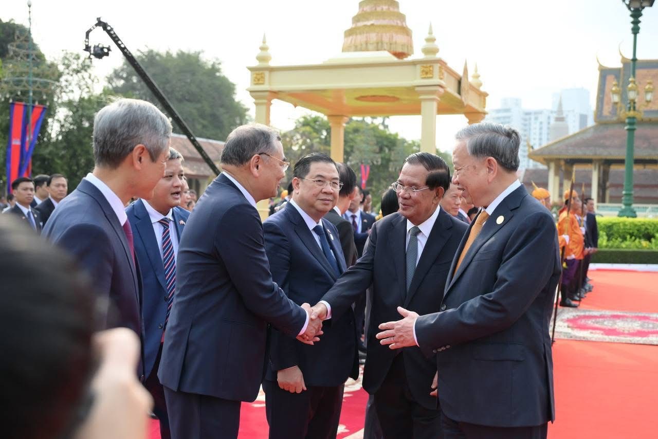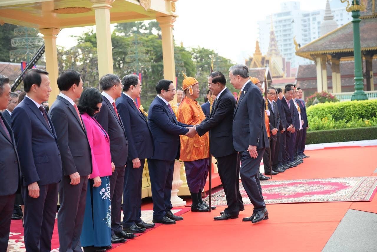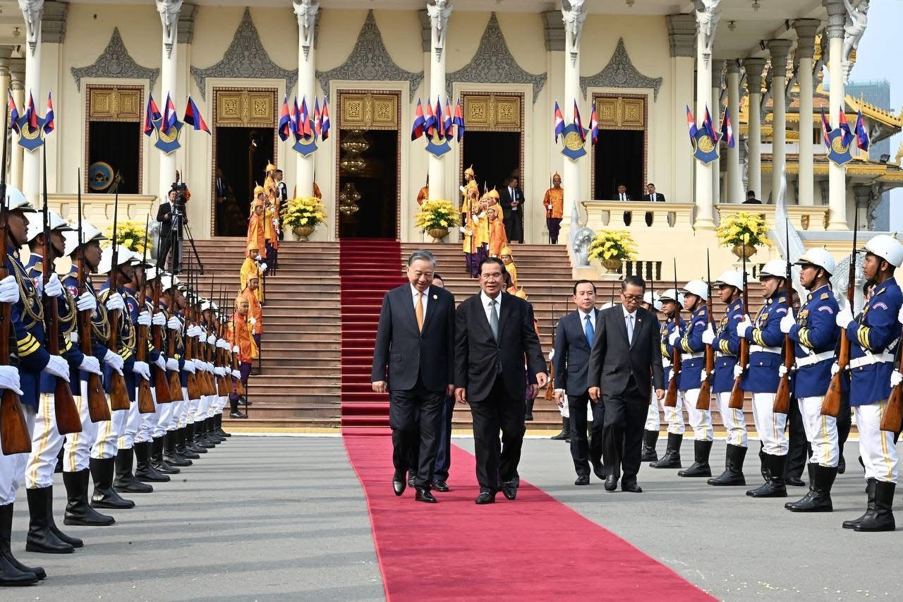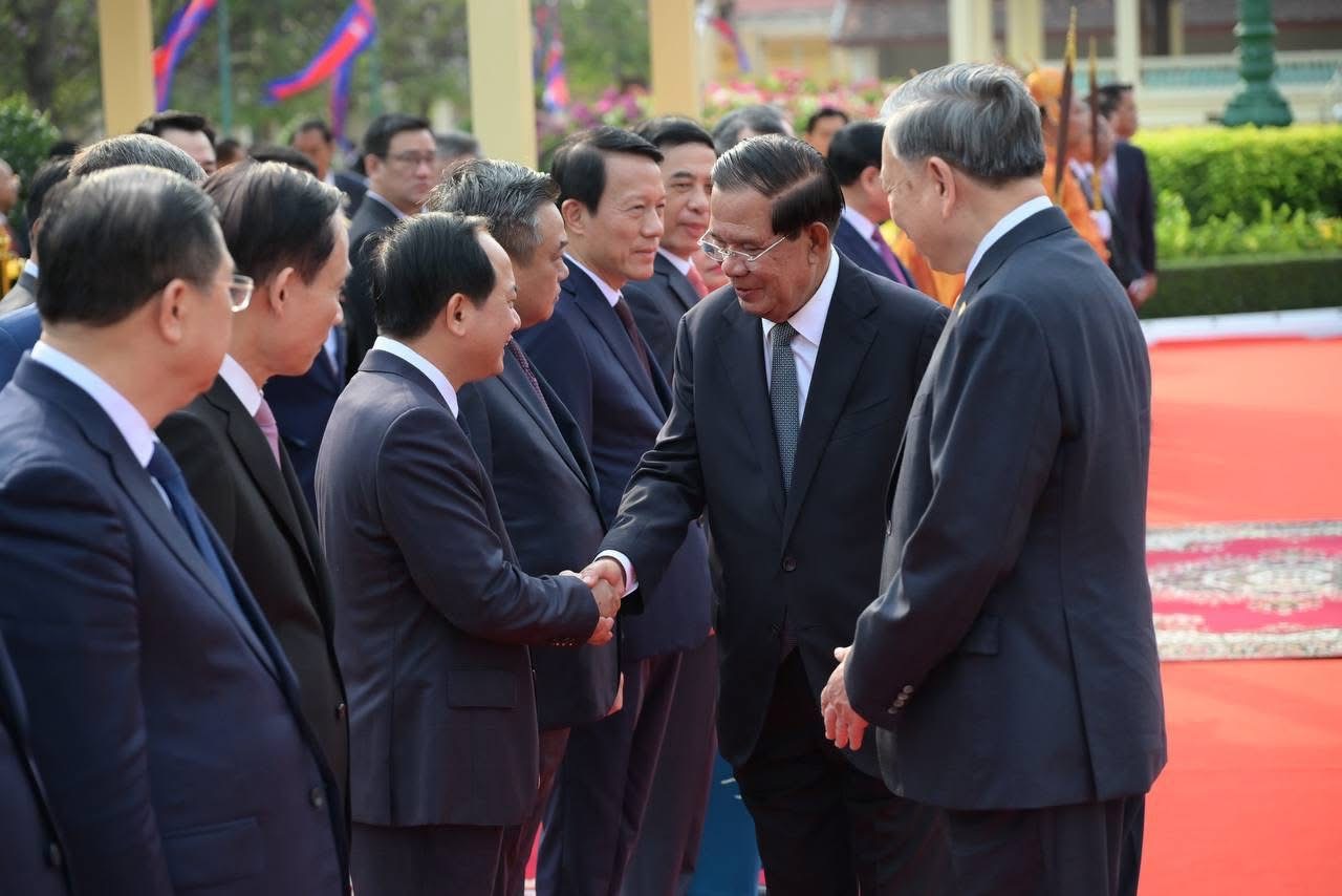 នៅព្រះបរមរាជវាំង នាព្រឹកថ្ងៃសុក្រ ៤រោច ខែមាឃ ឆ្នាំម្សាញ់ សប្តស័ក ពុទ្ធសករាជ ២៥៦៩ ត្រូវនឹងថ្ងៃទី៦ ខែកុម្ភៈ ឆ្នាំ២០២៦នេះ សម្ដេចអគ្គមហាសេនាបតីតេជោ ហ៊ុន សែន ប្រធានព្រឹទ្ធសភានៃព្រះរាជាណាចក្រកម្ពុជា បានអញ្ជើញជាព្រះរាជតំណាងដ៏ខ្ពង់ខ្ពស់បំផុត របស់ព្រះករុណាព្រះបាទសម្ដេចព្រះបរមនាថ នរោត្តម សីហមុនី ព្រះមហាក្សត្រនៃព្រះរាជាណាចក្រកម្ពុជា ទទួលបដិសណ្ឋារកិច្ចស្វាគមន៍ផ្លូវរដ្ឋជូន ឯកឧត្តម តូ ឡឹម អគ្គលេខាធិការបក្សកុម្មុយនីស្តវៀតណាម ជាមួយនឹងជំនួបសាវនាកាផងដែរ ក្នុងឱកាសដែល ឯកឧត្តម អញ្ជើញបំពេញទស្សនកិច្ចផ្លូវរដ្ឋនៅកម្ពុជា។
