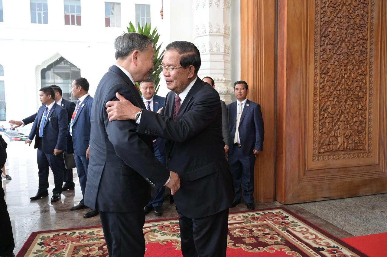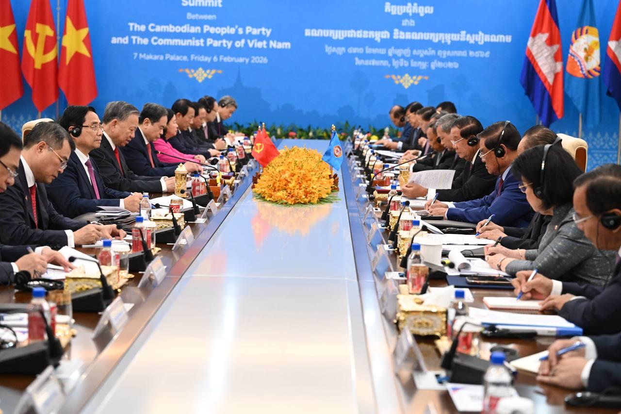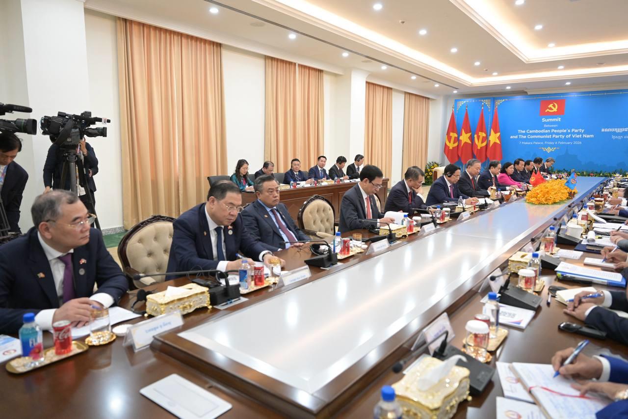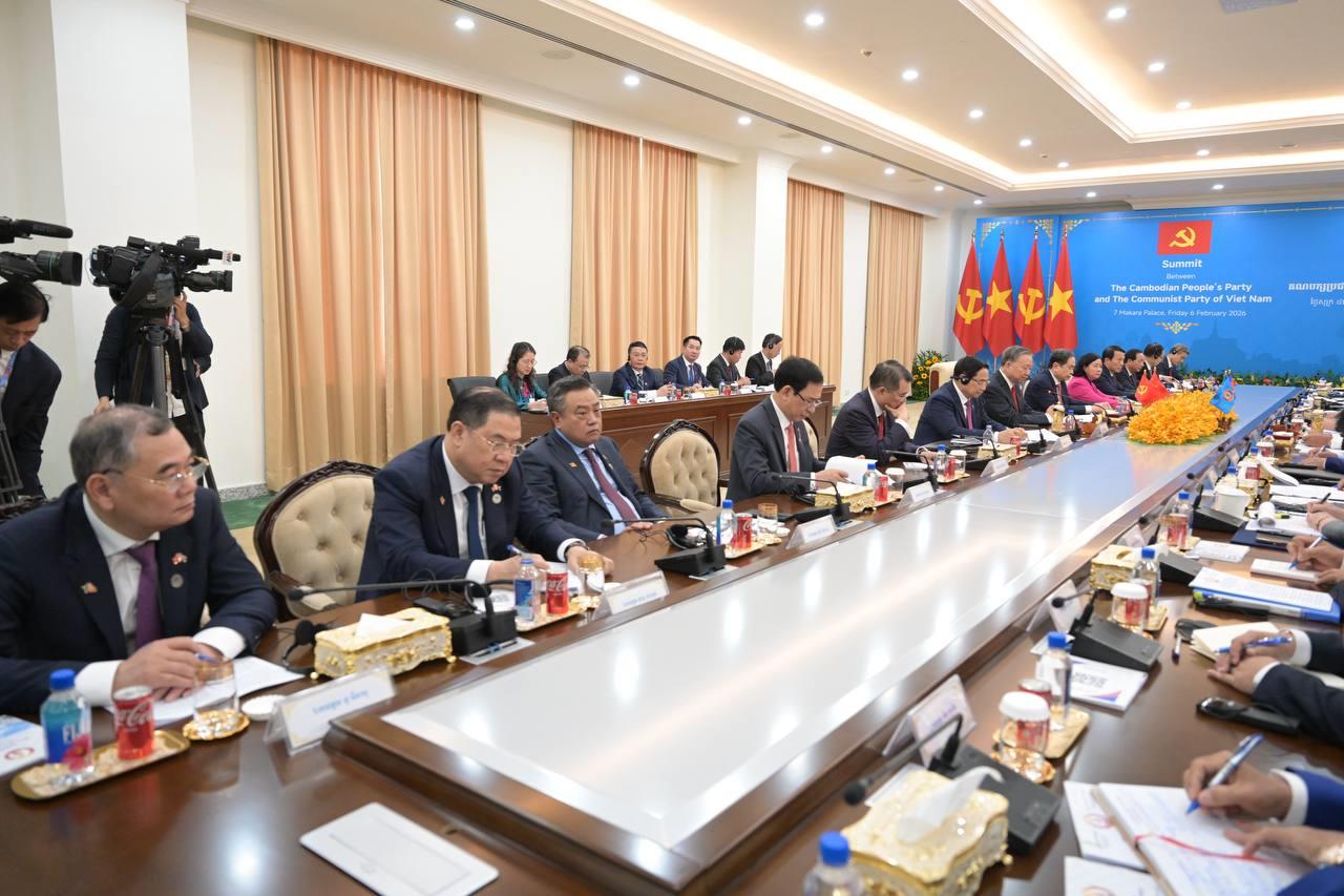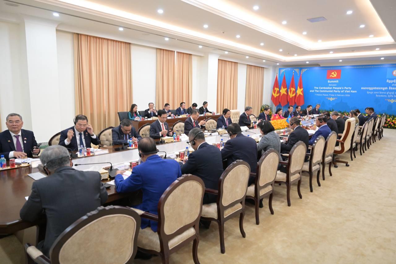 (ភ្នំពេញ)៖ បន្ទាប់ពីបញ្ចប់កម្មវិធីនៃការទស្សនកិច្ចផ្លូវរដ្ឋហើយនោះ នៅព្រឹកថ្ងៃទី៦ ខែកុម្ភៈ ឆ្នាំ២០២៦នេះ ឯកឧត្តម តូ ឡឹម អគ្គលេខាធិការបក្សកុម្មុយនីស្តវៀតណាម បានដឹកនាំថ្នាក់ដឹកនាំបក្ស អញ្ជើញជួបប្រជុំទ្វេភាគីជាមួយសម្តេចតេជោ ហ៊ុន សែន ប្រធានគណបក្សប្រជាជនកម្ពុជា អមដោយថ្នាក់ដឹកនាំបក្សជាច្រើនរូបផ្សេងទៀត។