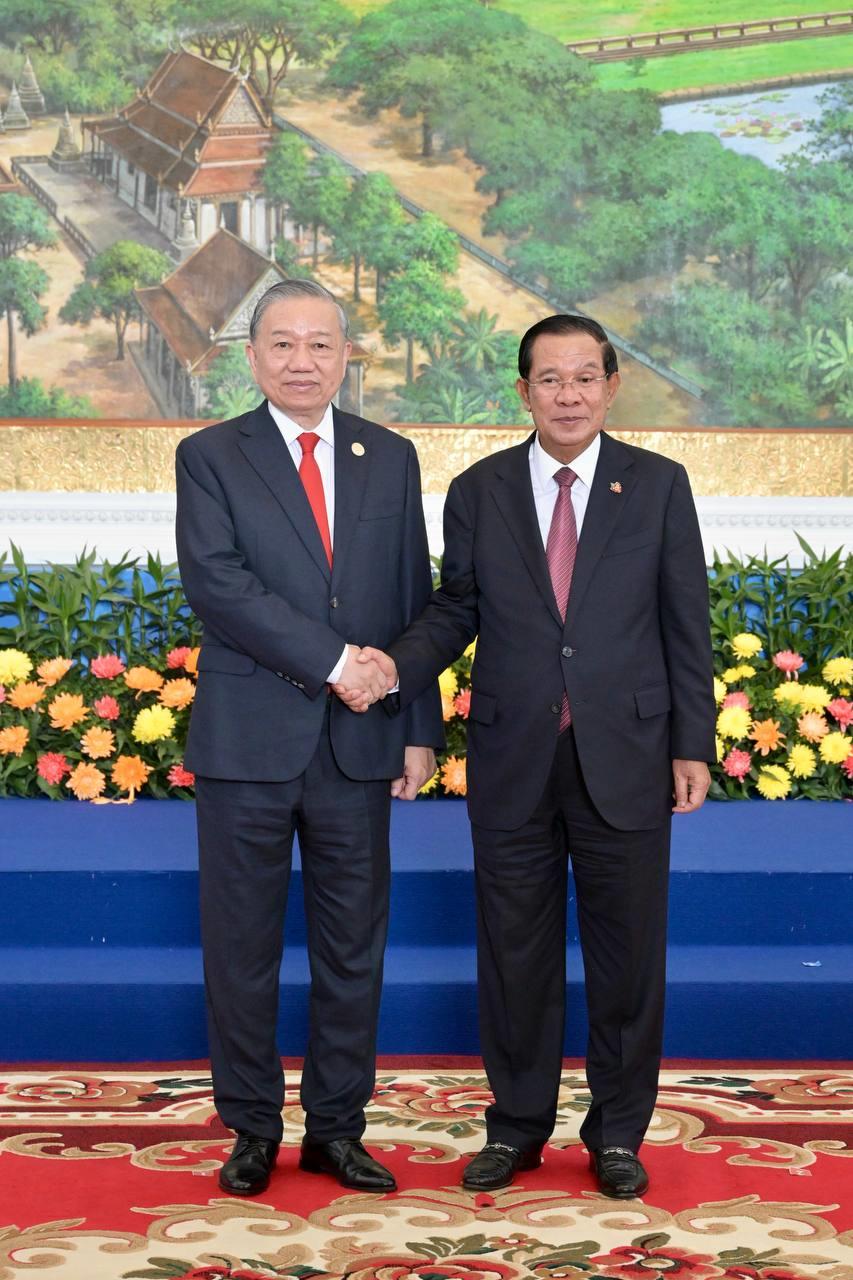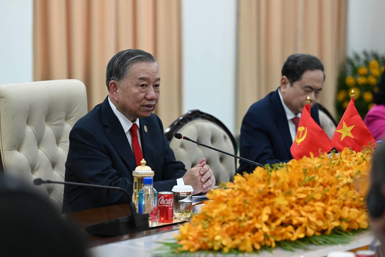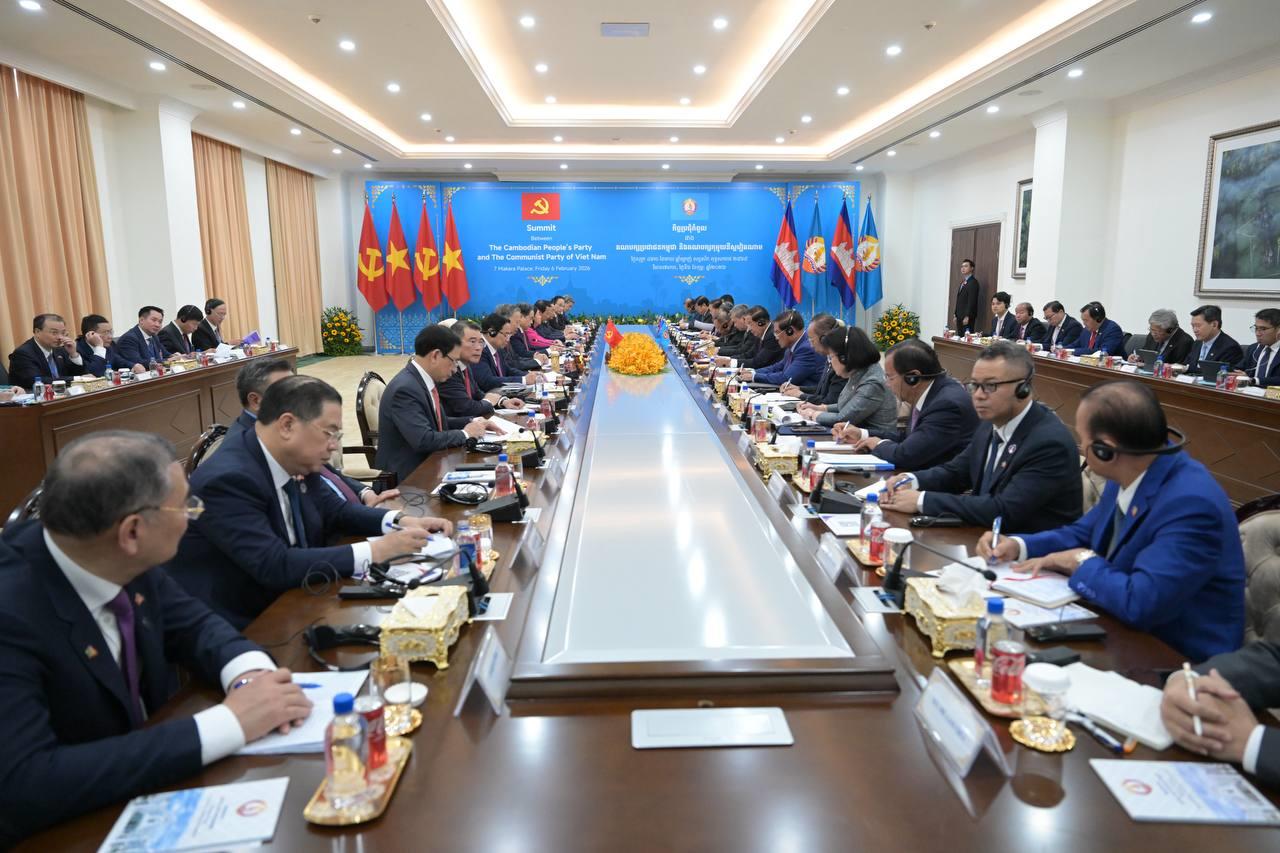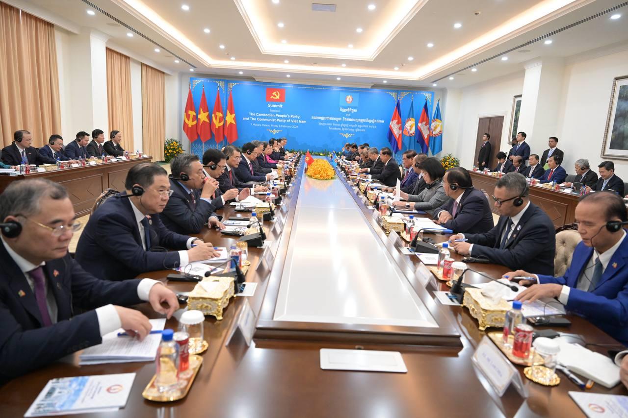 (ភ្នំពេញ)៖ បន្ទាប់ពីបញ្ចប់កម្មវិធីនៃការទស្សនកិច្ចផ្លូវរដ្ឋហើយនោះ នៅព្រឹកថ្ងៃទី៦ ខែកុម្ភៈ ឆ្នាំ២០២៦នេះ ឯកឧត្តម តូ ឡឹម អគ្គលេខាធិការបក្សកុម្មុយនីស្តវៀតណាម បានដឹកនាំថ្នាក់ដឹកនាំបក្ស អញ្ជើញជួបប្រជុំទ្វេភាគីជាមួយសម្តេចតេជោ ហ៊ុន សែន ប្រធានគណបក្សប្រជាជនកម្ពុជា អមដោយថ្នាក់ដឹកនាំបក្សជាច្រើនរូបផ្សេងទៀត។