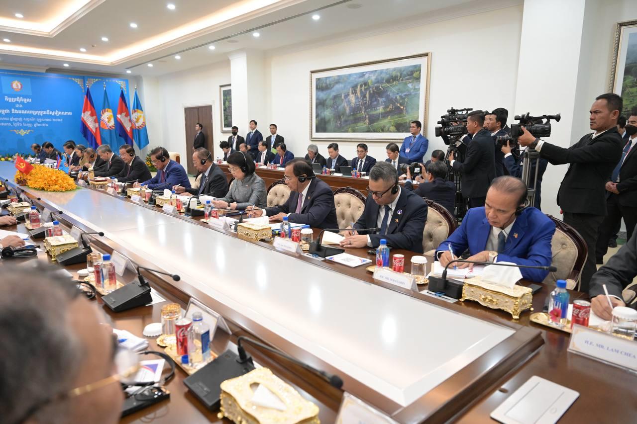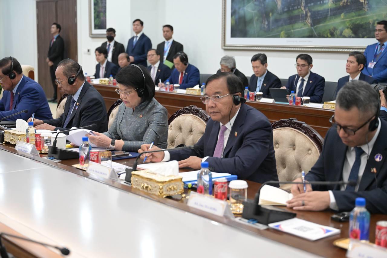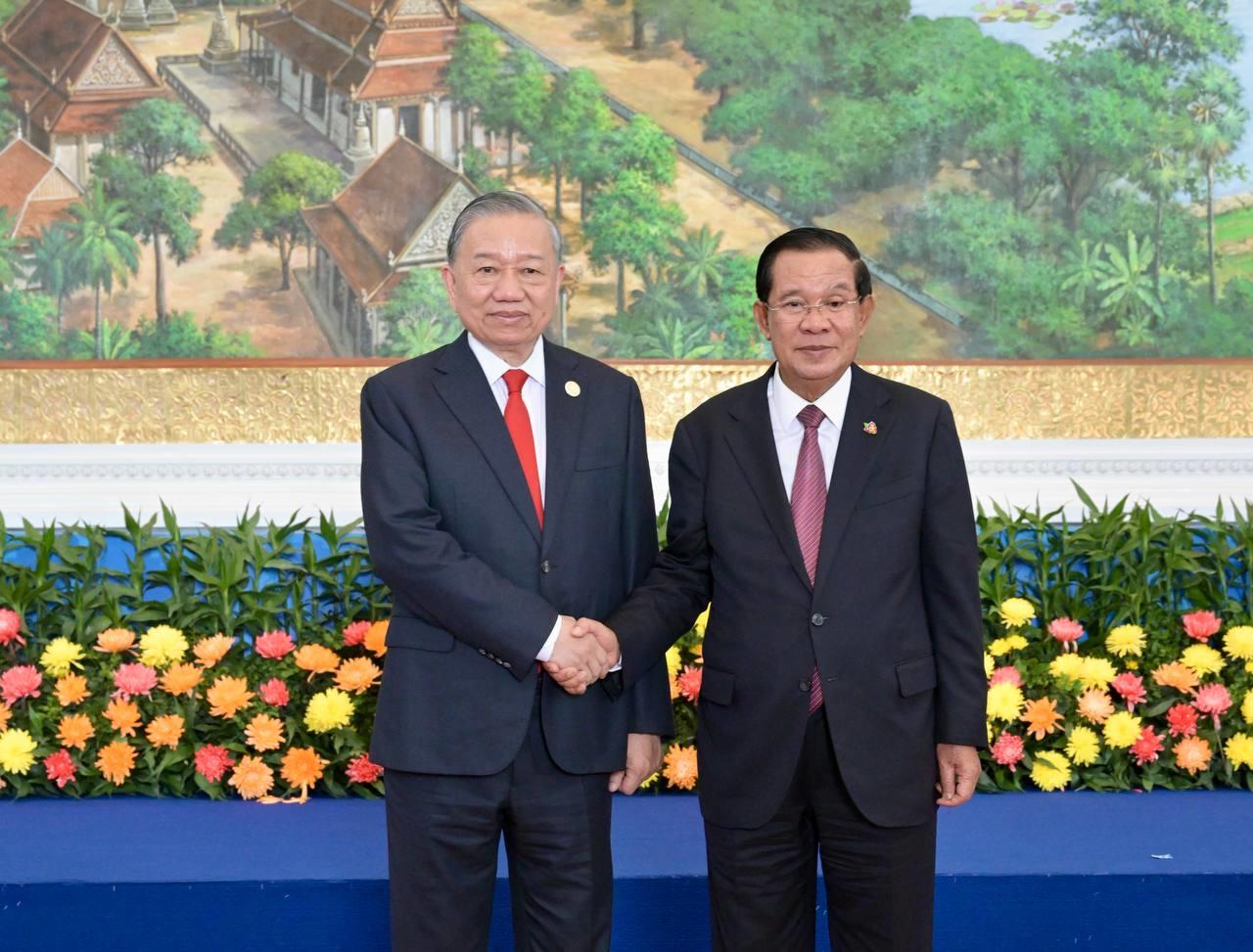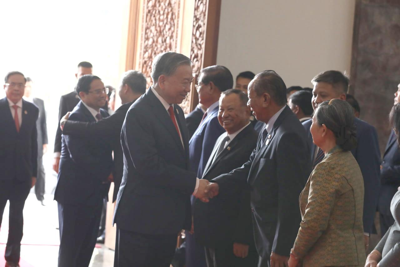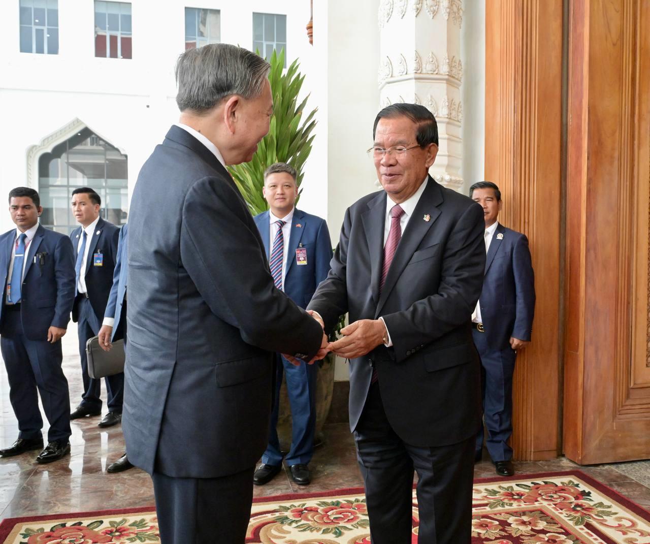 (ភ្នំពេញ)៖ បន្ទាប់ពីបញ្ចប់កម្មវិធីនៃការទស្សនកិច្ចផ្លូវរដ្ឋហើយនោះ នៅព្រឹកថ្ងៃទី៦ ខែកុម្ភៈ ឆ្នាំ២០២៦នេះ ឯកឧត្តម តូ ឡឹម អគ្គលេខាធិការបក្សកុម្មុយនីស្តវៀតណាម បានដឹកនាំថ្នាក់ដឹកនាំបក្ស អញ្ជើញជួបប្រជុំទ្វេភាគីជាមួយសម្តេចតេជោ ហ៊ុន សែន ប្រធានគណបក្សប្រជាជនកម្ពុជា អមដោយថ្នាក់ដឹកនាំបក្សជាច្រើនរូបផ្សេងទៀត។