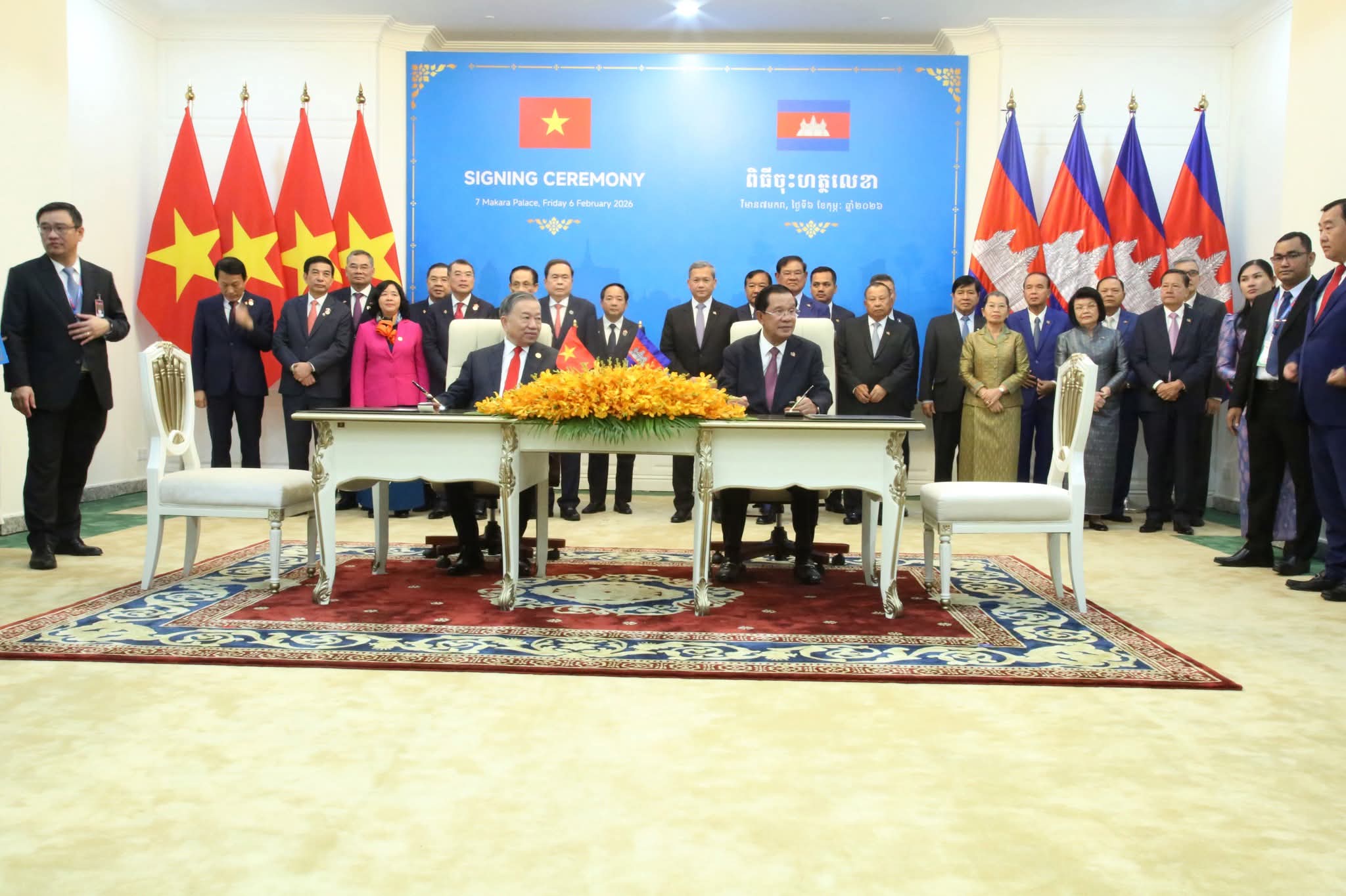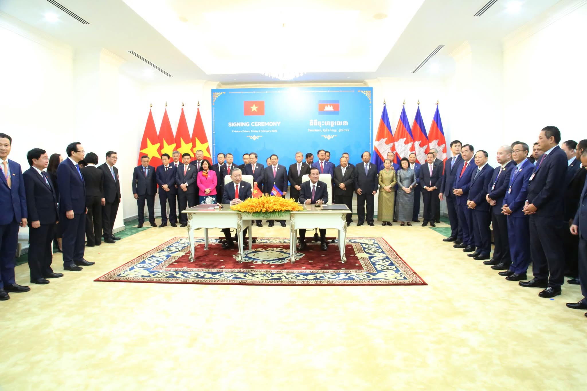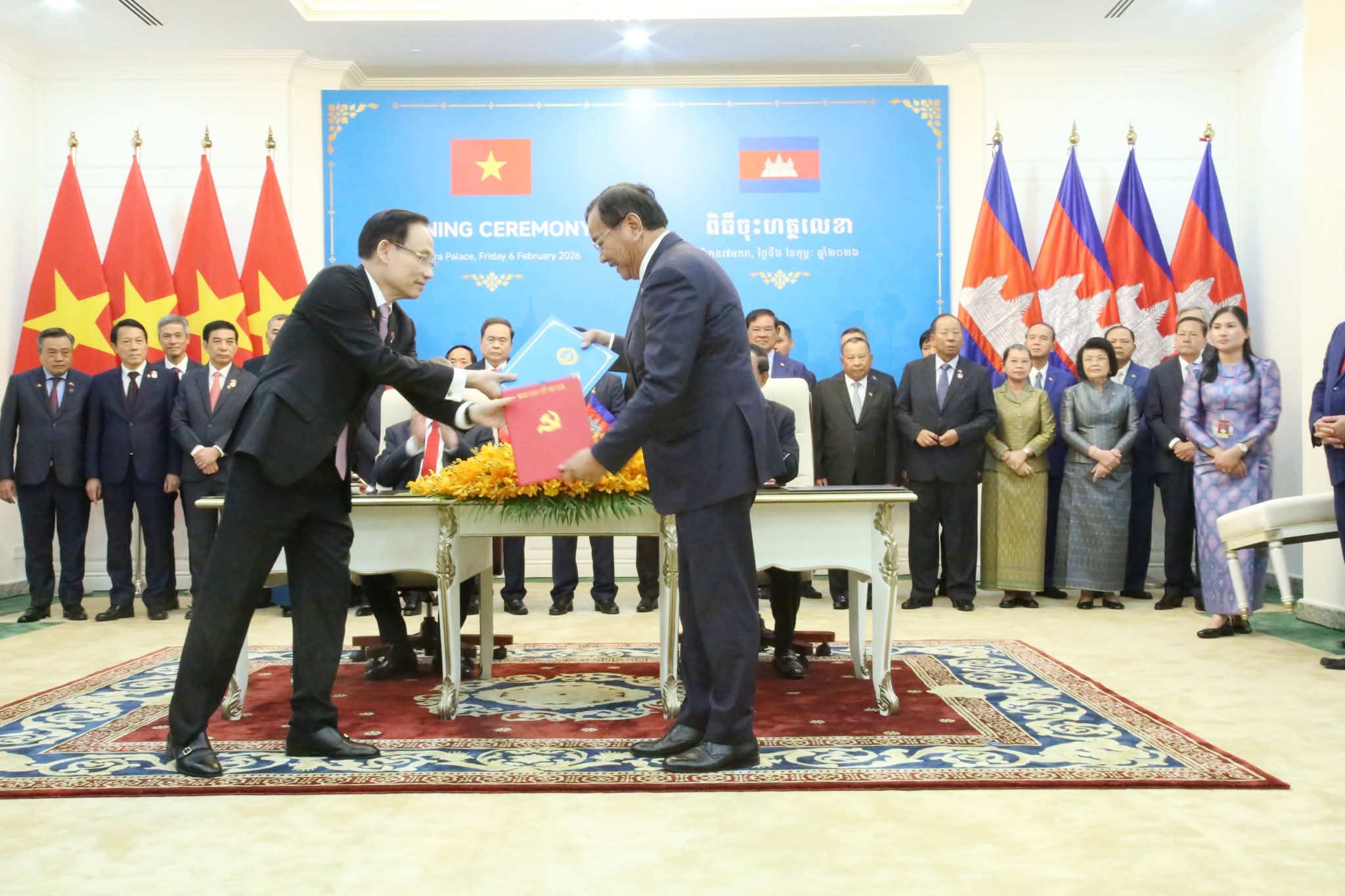 ពិធីចុះហត្ថលេខាលើអនុស្សរណៈនៃការយោគយល់រវាងគណៈទាក់ទងការបរទេស គណបក្សប្រជាជនកម្ពុជា និងគណៈកម្មាធិការបក្សក្រសួងការបរទេសវៀតណាម ក្រោមអធិបតីភាពរបស់សម្តេចអគ្គមហាសេនាបតីតេជោ ហ៊ុន សែន ប្រធានគណបក្សប្រជាជនកម្ពុជា និង ឯកឧត្តម តូ ឡឹម (TO Lam ) អគ្គលេខាធិការបក្សកុម្មុយនីស្តវៀតណាម នៅវិមាន៧មករា។