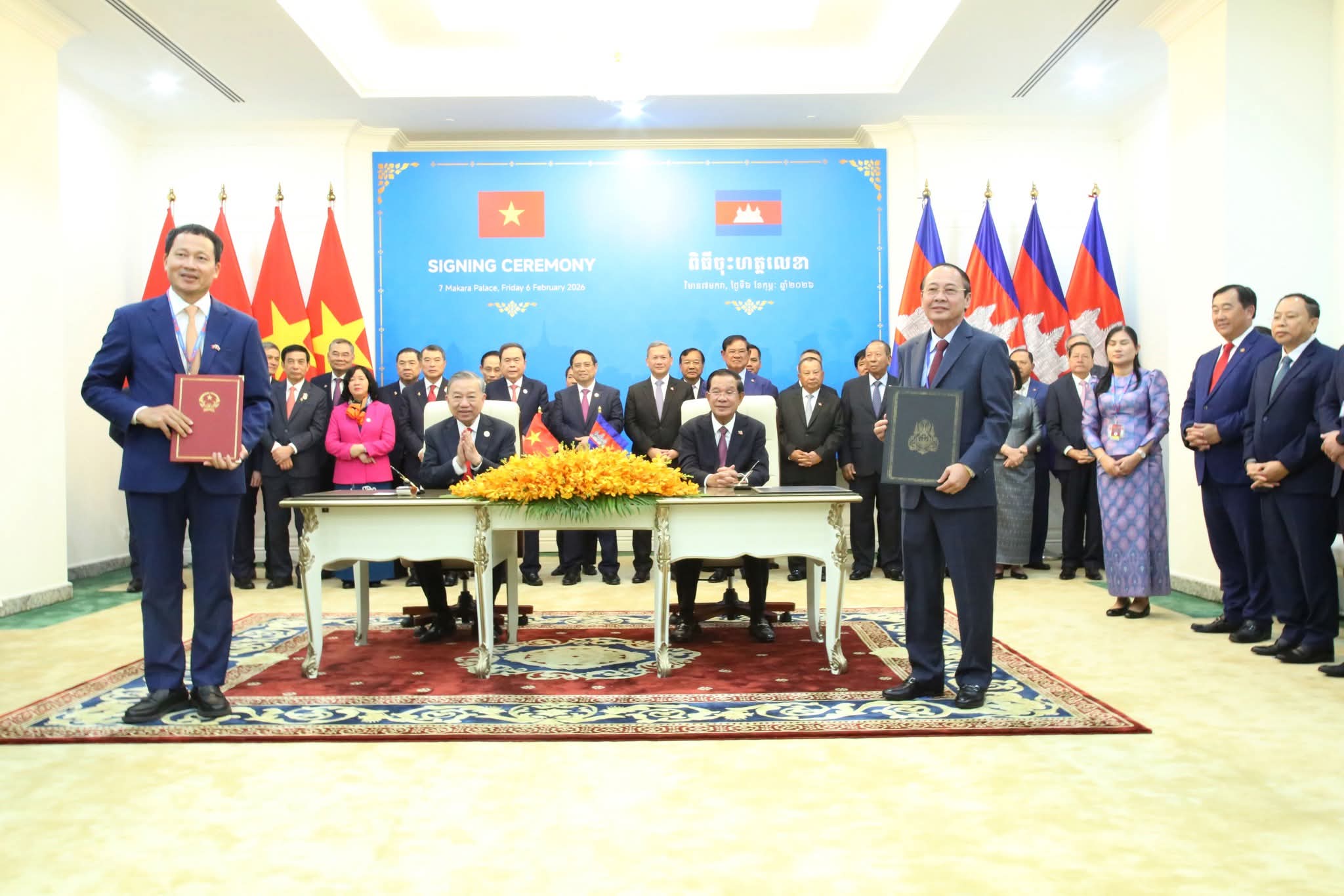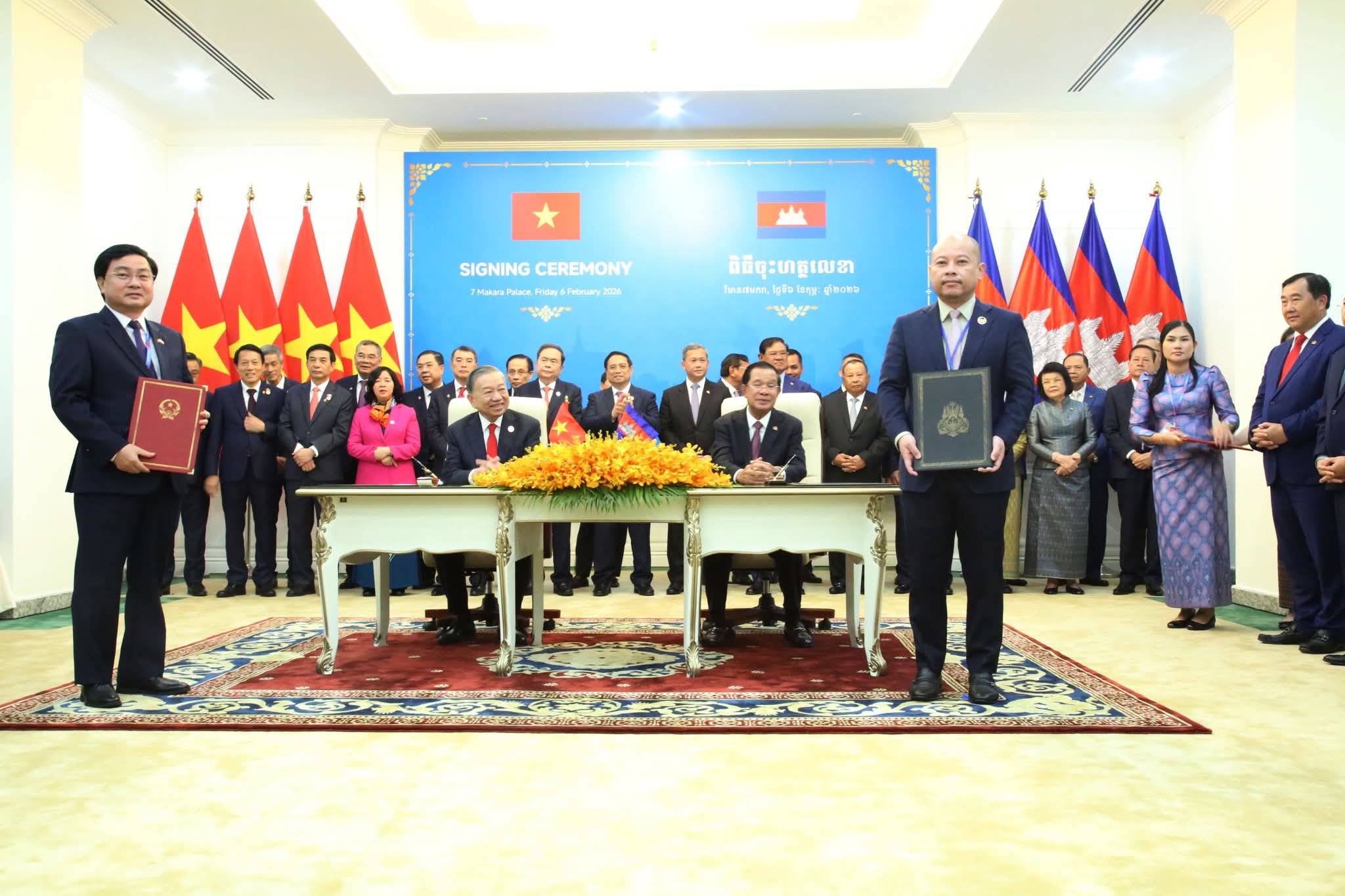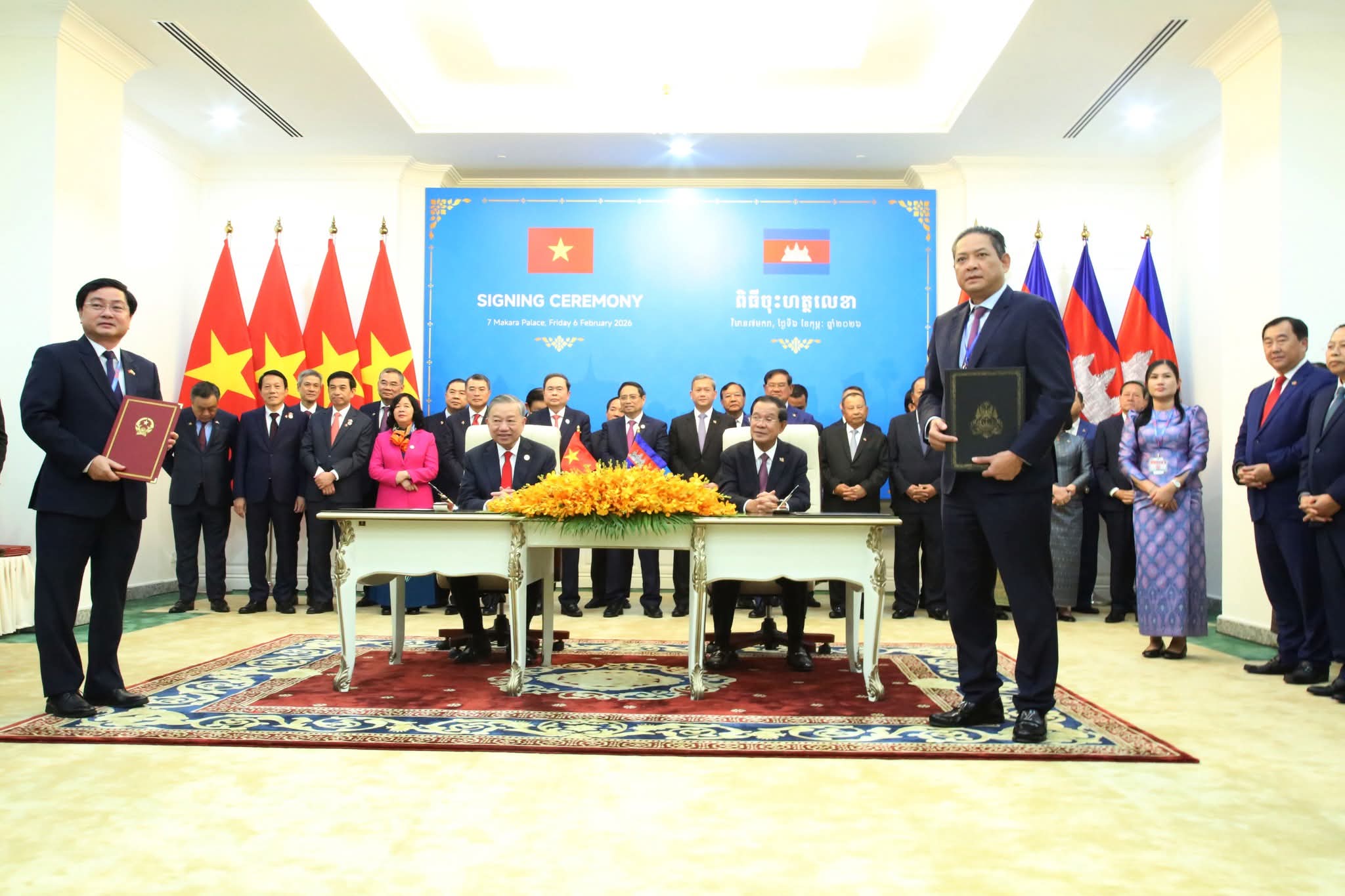 ពិធីចុះហត្ថលេខាលើអនុស្សរណៈនៃការយោគយល់រវាងគណៈទាក់ទងការបរទេស គណបក្សប្រជាជនកម្ពុជា និងគណៈកម្មាធិការបក្សក្រសួងការបរទេសវៀតណាម ក្រោមអធិបតីភាពរបស់សម្តេចអគ្គមហាសេនាបតីតេជោ ហ៊ុន សែន ប្រធានគណបក្សប្រជាជនកម្ពុជា និង ឯកឧត្តម តូ ឡឹម (TO Lam ) អគ្គលេខាធិការបក្សកុម្មុយនីស្តវៀតណាម នៅវិមាន៧មករា។