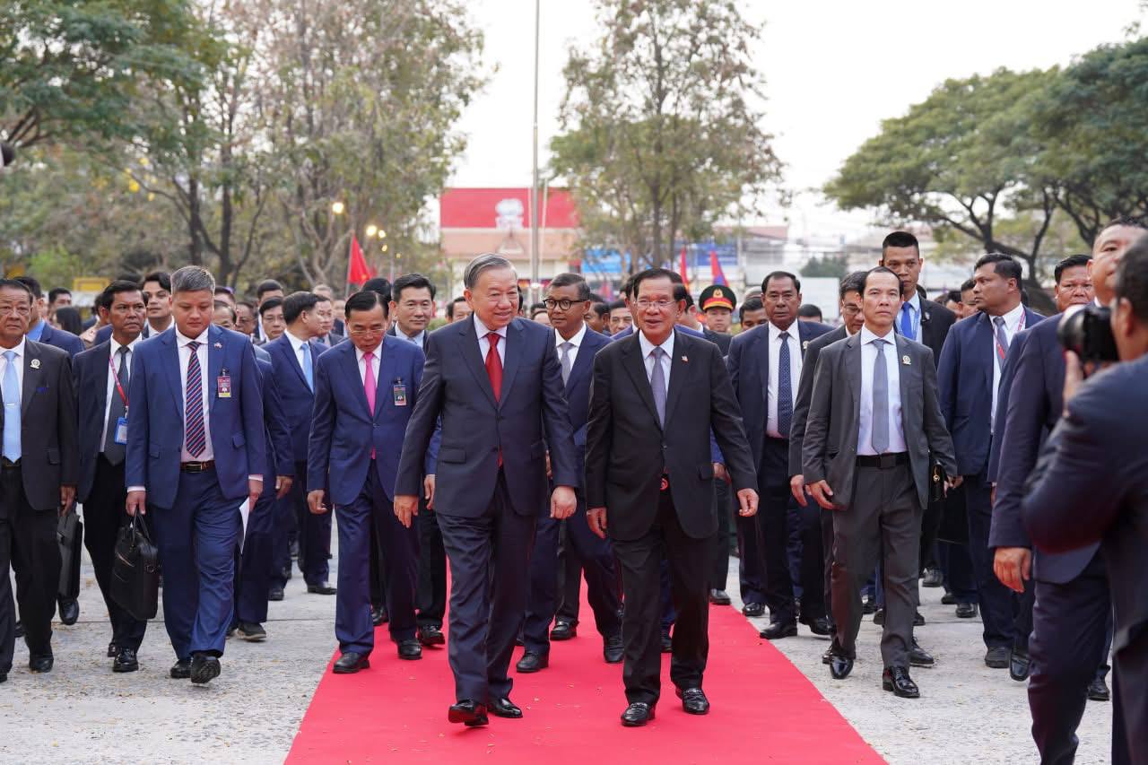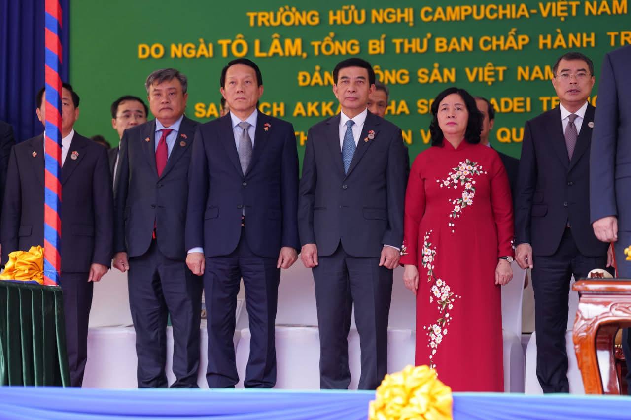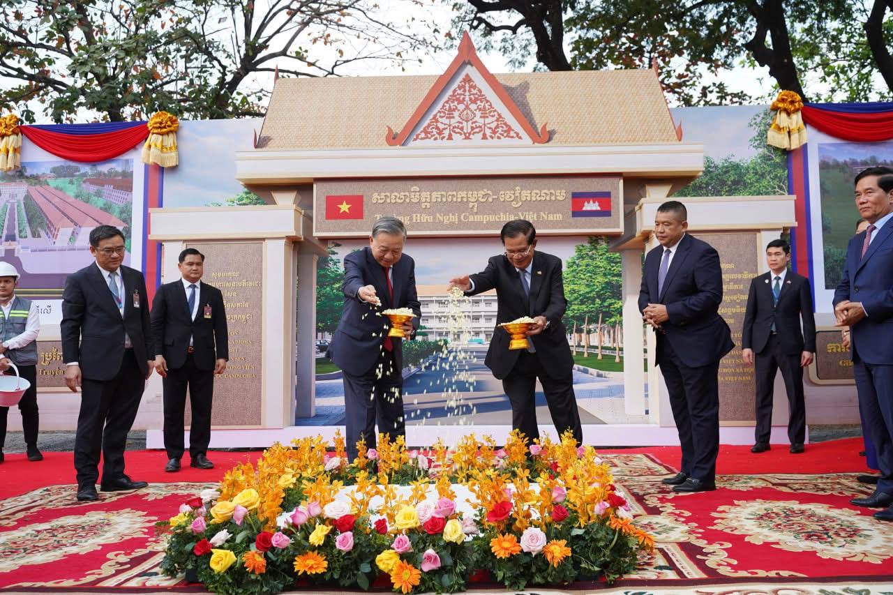 នាល្ងាចថ្ងៃទី៦ ខែកុម្ភៈ ឆ្នាំ២០២៦ សម្ដេចអគ្គមហាសេនាបតីតេជោ ហ៊ុន សែន ប្រធានព្រឹទ្ធសភា នៃព្រះរាជាណាចក្រកម្ពុជា និងឯកឧត្តម តូ ឡឹម អគ្គលេខាធិការនៃគណៈកម្មាធិការមជ្ឈិមបក្សកុម្មុយនីស្តវៀតណាម បានអញ្ជើញជាអធិបតីតីដ៏ខ្ពង់ខ្ពស់ក្នុងពិធី “បញ្ចុះបឋមសិលាសាងសង់សាលាមិត្តភាពកម្ពុជា-វៀតណាម” ស្ថិតក្នុងខណ្ឌដង្កោ រាជធានីភ្នំពេញ។