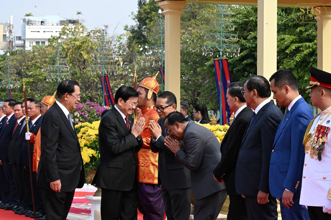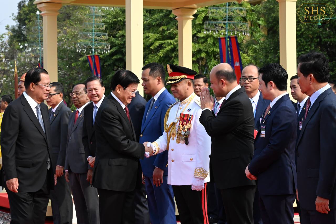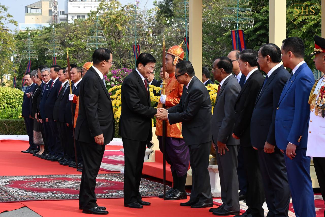 សម្ដេចអគ្គមហាសេនាបតីតេជោ ហ៊ុន សែន ប្រធានព្រឹទ្ធសភានៃព្រះរាជាណាចក្រកម្ពុជា និងជាប្រធានគណបក្សប្រជាជនកម្ពុជា បានអញ្ជើញជាព្រះរាជតំណាងដ៏ខ្ពង់ខ្ពស់បំផុត របស់ព្រះករុណាព្រះបាទសម្ដេចព្រះបរមនាថ នរោត្តម សីហមុនី ព្រះមហាក្សត្រនៃព្រះរាជាណាចក្រកម្ពុជា ទទួលបដិសណ្ឋារកិច្ចស្វាគមន៍ ឯកឧត្តម ថងលុន ស៊ីសុលីត(Thongloun Sisoulith) អគ្គលេខាធិការបក្សប្រជាជនបដិវត្តន៍ឡាវ និងជាប្រធានរដ្ឋឡាវ ក្នុងឱកាសដែល ឯកឧត្តម និងគណៈប្រតិភូអញ្ជើញបំពេញទស្សនកិច្ចផ្លូវរដ្ឋនៅកម្ពុជារយៈពេលពីរថ្ងៃ។