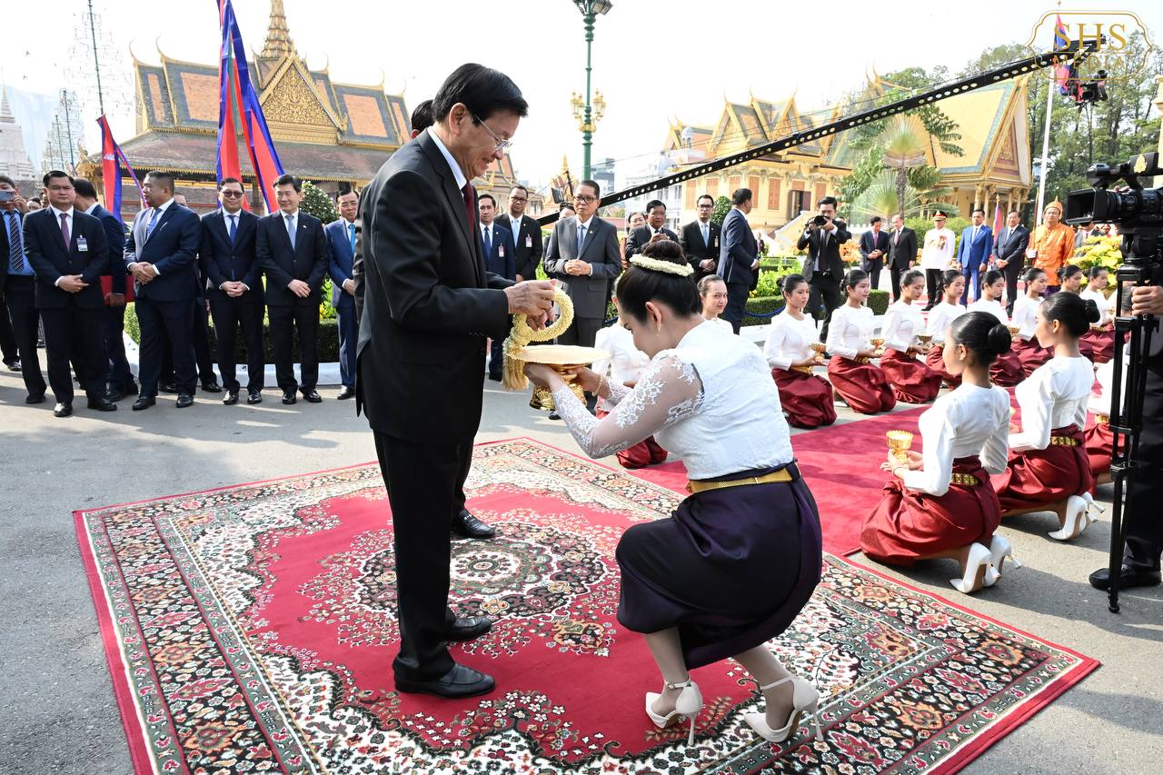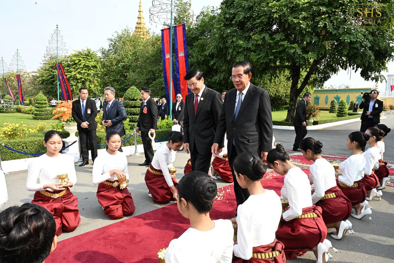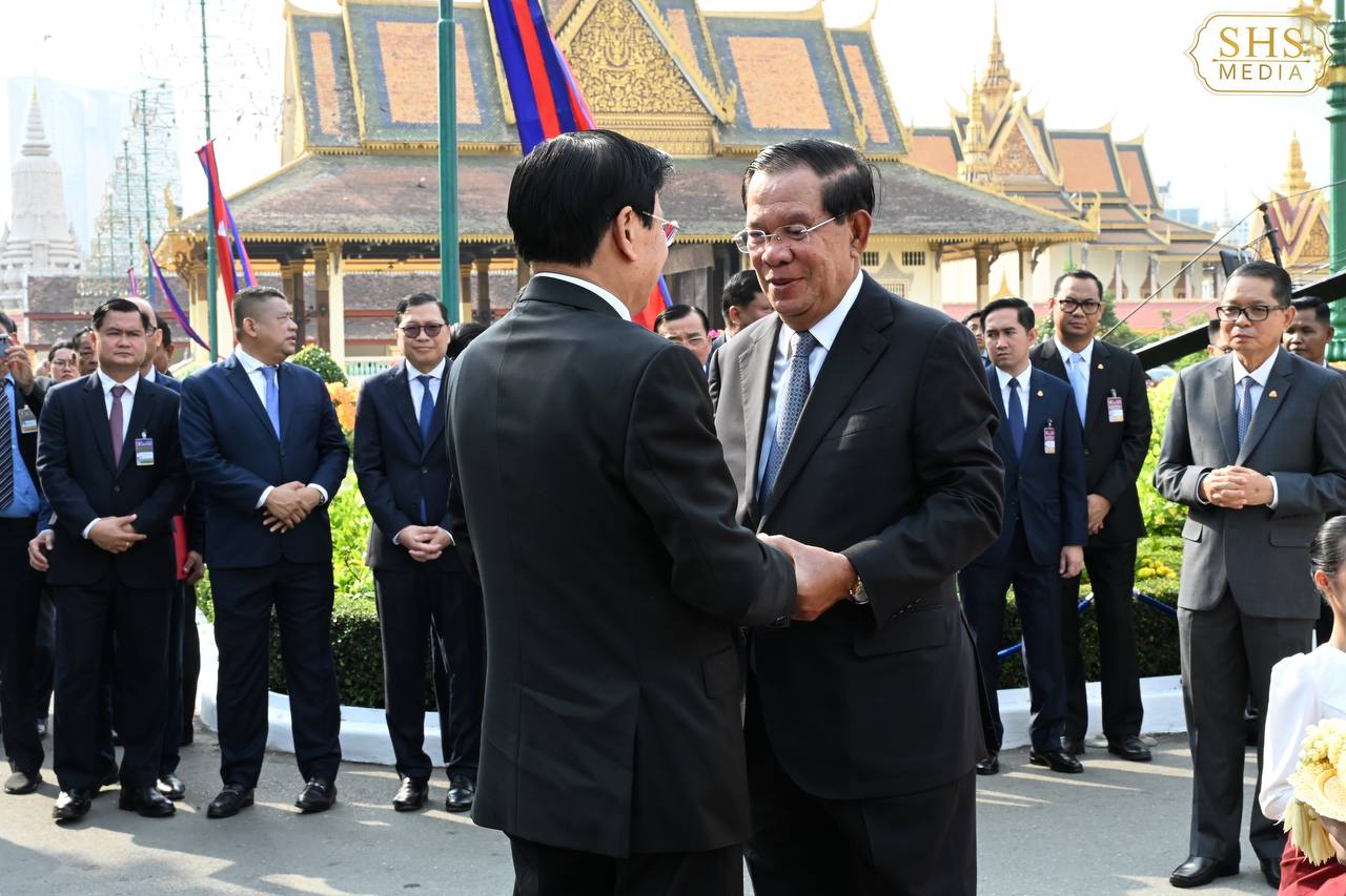 សម្ដេចអគ្គមហាសេនាបតីតេជោ ហ៊ុន សែន ប្រធានព្រឹទ្ធសភានៃព្រះរាជាណាចក្រកម្ពុជា និងជាប្រធានគណបក្សប្រជាជនកម្ពុជា បានអញ្ជើញជាព្រះរាជតំណាងដ៏ខ្ពង់ខ្ពស់បំផុត របស់ព្រះករុណាព្រះបាទសម្ដេចព្រះបរមនាថ នរោត្តម សីហមុនី ព្រះមហាក្សត្រនៃព្រះរាជាណាចក្រកម្ពុជា ទទួលបដិសណ្ឋារកិច្ចស្វាគមន៍ ឯកឧត្តម ថងលុន ស៊ីសុលីត(Thongloun Sisoulith) អគ្គលេខាធិការបក្សប្រជាជនបដិវត្តន៍ឡាវ និងជាប្រធានរដ្ឋឡាវ ក្នុងឱកាសដែល ឯកឧត្តម និងគណៈប្រតិភូអញ្ជើញបំពេញទស្សនកិច្ចផ្លូវរដ្ឋនៅកម្ពុជារយៈពេលពីរថ្ងៃ។
