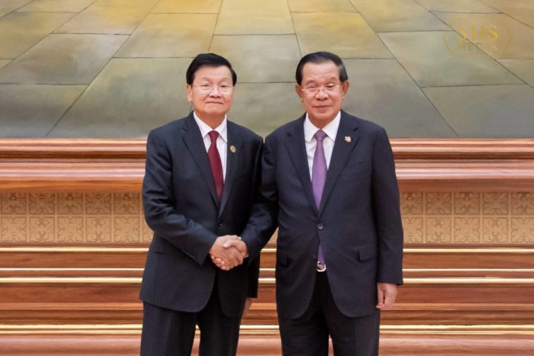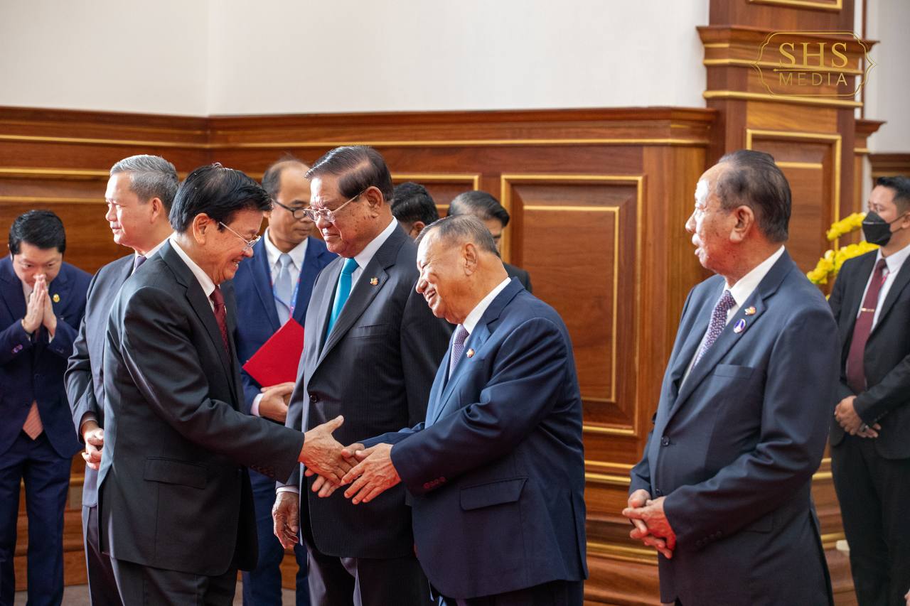 សម្ដេចអគ្គមហាសេនាបតីតេជោ ហ៊ុន សែន ប្រធានព្រឹទ្ធសភានៃព្រះរាជាណាចក្រកម្ពុជា និងជាប្រធានគណបក្សប្រជាជនកម្ពុជា ទទួលស្វាគមន៍ការអញ្ជើញដល់វិមានសាមគ្គីភាពនៃព្រឹទ្ធសភាជាតិកម្ពុជា របស់ ឯកឧត្តមបណ្ឌិត ថងលុន ស៊ីសុលីត(Thongloun Sisoulith) អគ្គលេខាធិការបក្សប្រជាជនបដិវត្តន៍ឡាវ និងជាប្រធានរដ្ឋនៃសាធារណរដ្ឋប្រជាធិបតេយ្យប្រជាមានិតឡាវ ព្រមទាំងបានថតរូបអនុស្សាវរីយ៍ ក្នុងឱកាសនៃការអញ្ជើញចូលរួមក្នុងកិច្ចប្រជុំកំពូលទ្វេភាគីរវាង គណៈអចិន្ត្រៃយ៍នៃគណៈកម្មាធិការកណ្តាលគណបក្សប្រជាជនកម្ពុជា ជាមួយគណបក្សប្រជាជនបដិវត្តន៍ឡាវ នៅវិមានសាមគ្គីភាព។