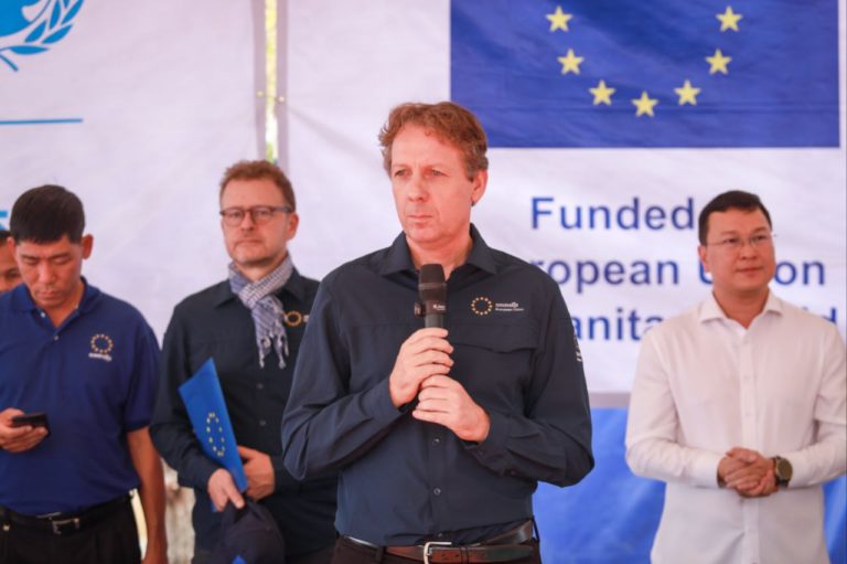 ថ្លែងប្រាប់របស់ឯកឧត្តម ឯកអគ្គរដ្ឋទូតសហភាពអឺរ៉ុប បានមានប្រសាសន៍ថា ទោះបីជាសហភាពអឺរ៉ុប មិនបានចូលរួមចំណែកក្ដី ក៏នៅតែបន្តជួយតាមលទ្ធភាព ដើម្បីសម្រាលភាពឈឺចាប់របស់ជនភៀសសឹកនៅទីនេះ។