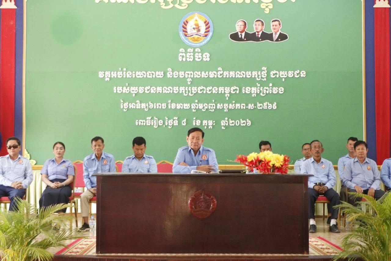 ថ្ងៃទី៨ ខែកុម្ភៈ ឆ្នាំ២០២៦ ឯកឧត្តម ហ៊ី ធួក អនុប្រធានប្រចាំការ យុវជនគណបក្សខេត្ត និងជាតំណាងដ៏ខ្ពង់ខ្ពស់ ឯកឧត្តម សួន សុម៉ាលីន ប្រធានយុវជនគណបក្សខេត្ត បានអញ្ជើញជាអធិបតីក្នុងពិធីបិទវគ្គ “អប់រំនយោបាយសតិអារម្មណ៍ និងបញ្ចូលសមាជិកបក្សថ្មីជាយុវជន” របស់យុវជនគណបក្សខេត្ត នៅទីស្នាក់ការគណបក្សប្រជាជនកម្ពុជា ស្រុកពោធិ៍រៀង ខេត្តព្រៃវែង ដោយមានការចូលរួមពីយុវជនសរុបចំនួន ២៦០នាក់ និងបញ្ចូលសមាជិកបក្សថ្មីជាយុវជន បានចំនួន ១៥៤នាក់ ស្រី ៩៩នាក់។