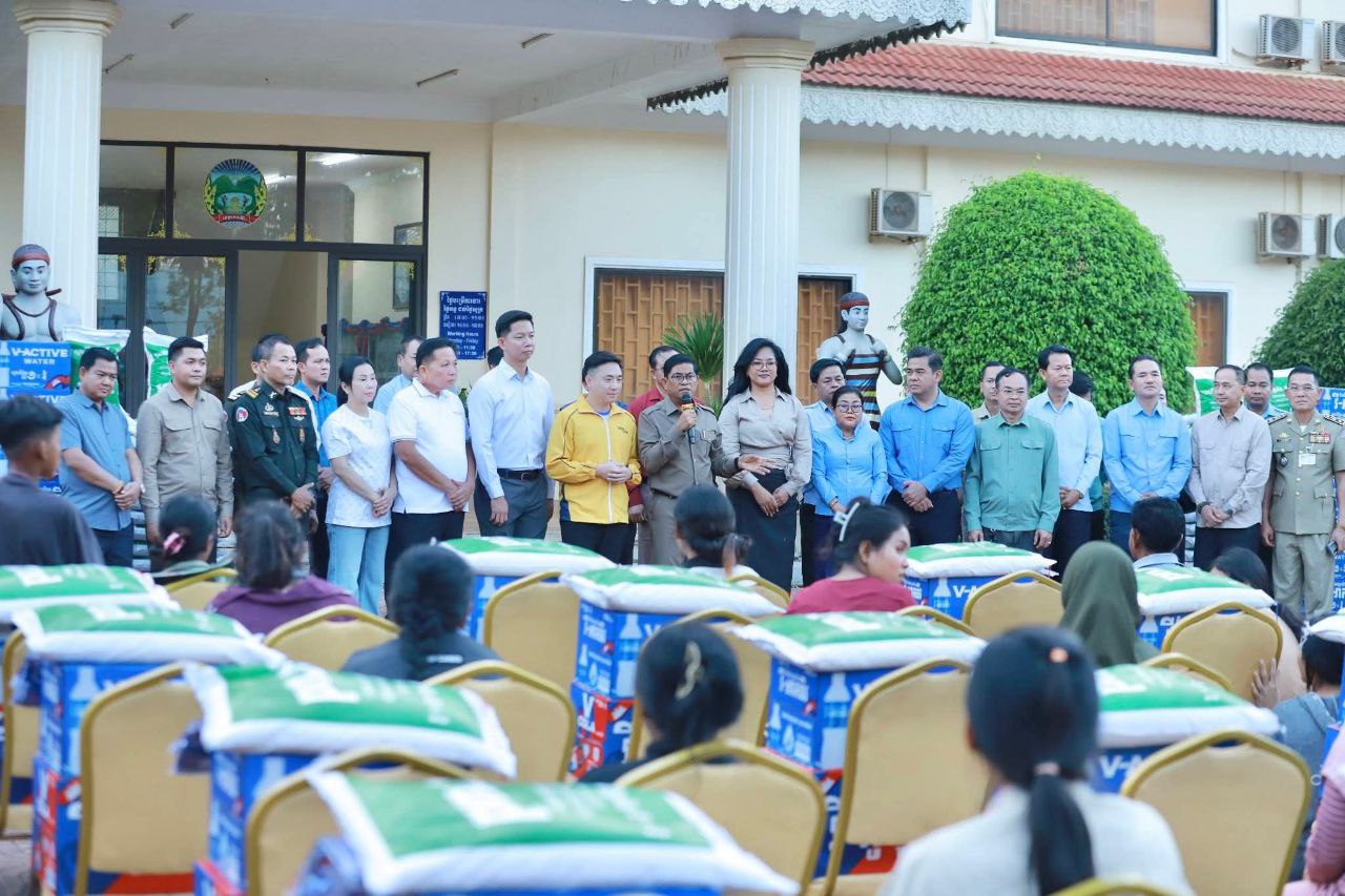 ជនភៀសសឹក៩៥គ្រួសារ ដែលកំពុងស្នាក់នៅបណ្តោះអាសន្ន ទទួលបានអំណោយសប្បុរសធម៌ពីរដ្ឋបាលខេត្តរតនគិរី