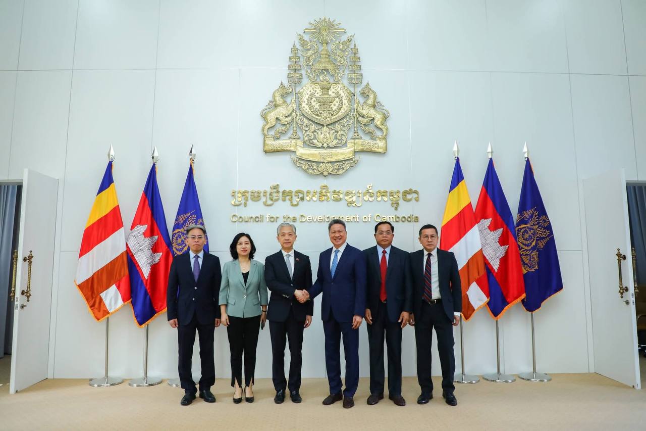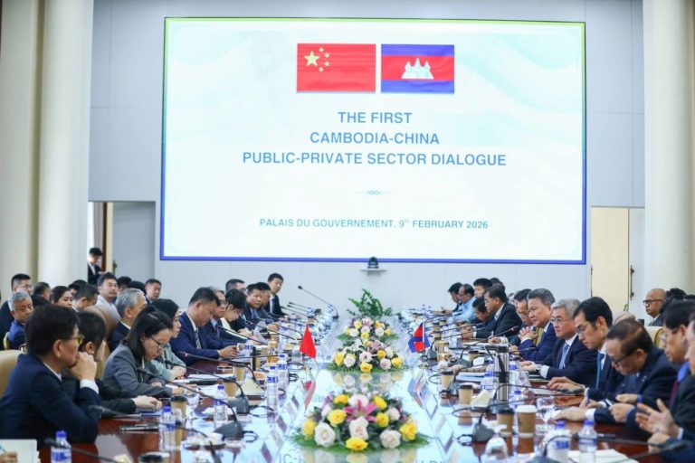 (ភ្នំពេញ)៖ ឯកឧត្តម ស៊ុន ចាន់ថុល ឧបនាយករដ្ឋមន្ត្រី អនុប្រធានទី១ ក្រុមប្រឹក្សាអភិវឌ្ឍន៍កម្ពុជា និងឯកឧត្តម Wang Wenbin ឯកអគ្គរដ្ឋទូតនៃសាធារណរដ្ឋប្រជាមានិតចិនប្រចាំកម្ពុជា នាព្រឹកថ្ងៃទី៩ ខែកុម្ភៈ ឆ្នាំ២០២៦នេះ បានដឹកនាំកិច្ចសន្ទនាលើកទី១ រវាងរដ្ឋនិងវិស័យឯកជន កម្ពុជា-ចិន ដោយមានការចូលរួមពីតំណាងក្រុមហ៊ុនចិនចំនួន៨០ មកពីសមាគម សភាពាណិជ្ជកម្មចិននៅកម្ពុជា ថ្នាក់ដឹកនាំតំណាងអន្តរក្រសួងស្ថាប័នជាសមាជិកក្រុមប្រឹក្សាអភិវឌ្ឍន៍កម្ពុជា។