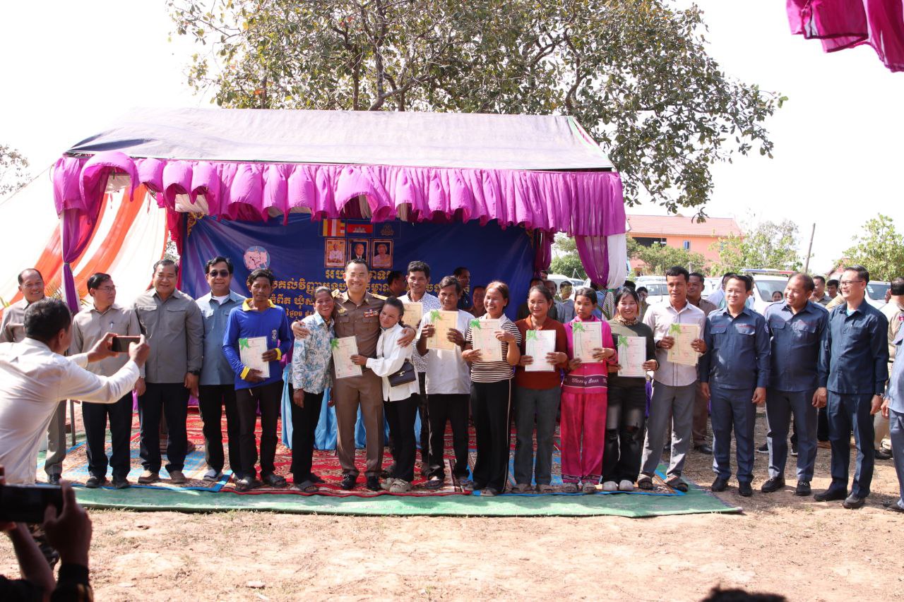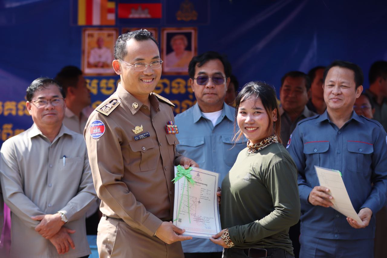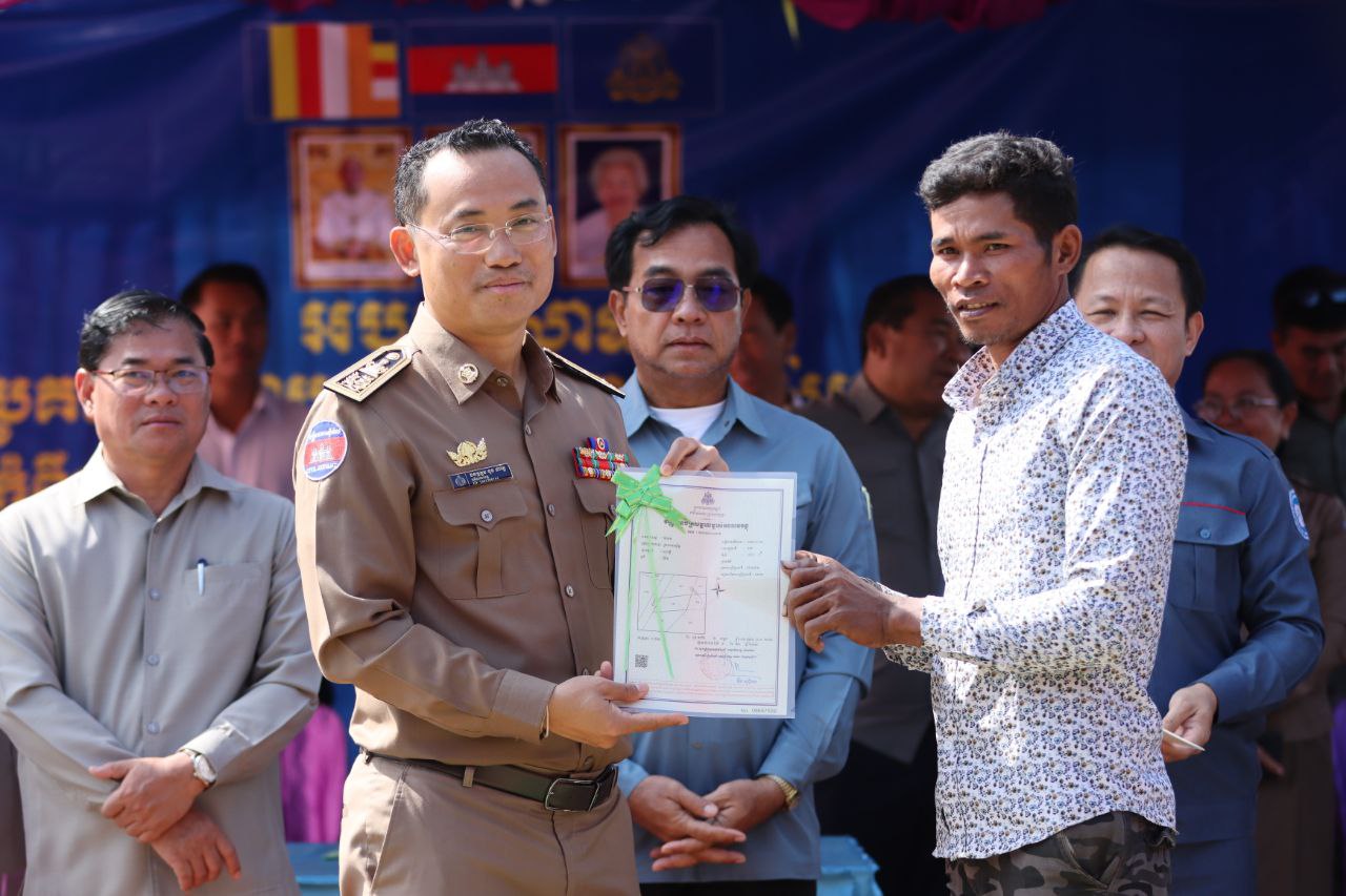 ឯកឧត្តមអភិបាលខេត្ត បន្តថា ការចែកបណ្ណកម្មសិទ្ធិដីធ្លីនាពេលនេះ បានរួមចំណែកយ៉ាងសំខាន់ ក្នុងការដោះស្រាយបញ្ហាទំនាស់ដីធ្លី និងជាការផ្ដល់ឲ្យប្រជាពលរដ្ឋមានសិទ្ធិកម្មកាន់កាប់ដីធ្លីរបស់ខ្លួនបានត្រឹមត្រូវស្របតាមច្បាប់ ក្រោមការគិតគូរយ៉ាងហ្មត់ចត់របស់រាជរដ្ឋាភិបាល ដែលមានសម្តេចធិបតី ហ៊ុន ម៉ាណែត ជានាយករដ្ឋមន្រ្តីនៃកម្ពុជា ដែលបាន និងកំពុងអនុវត្តយ៉ាងសកម្មលើគោលនយោបាយដីធ្លី ជូនដល់ប្រជាពលរដ្ឋ និងដើម្បីផលប្រយោជន៍របស់ប្រជាពលរដ្ឋយ៉ាងពិតប្រាកដ។