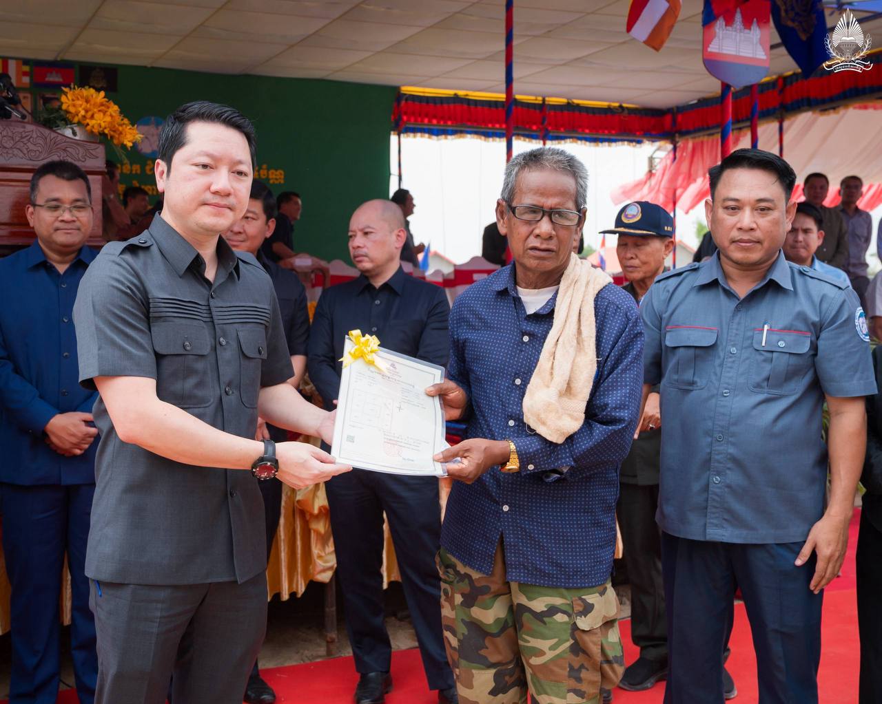 ថ្ងៃទី១២ ខែកុម្ភៈ ឆ្នាំ២០២៦ ឯកឧត្តម សុខ សូកេន រដ្ឋមន្រ្តីក្រសួងអធិការកិច្ច អនុប្រធានក្រុមការងាររាជរដ្ឋាភិបាលចុះមូលដ្ឋានខេត្តស្វាយរៀង និងជាប្រធានក្រុមការងាររាជរដ្ឋាភិបាលចុះមូលដ្ឋានស្រុករមាសហែក បានអញ្ជើញចូលរួមពិធីចែកវិញ្ញាបនបត្រសម្គាល់ម្ចាស់អចលនវត្ថុ ជូនសម្បទានិកជំហាន២ ចំនួន១៨៤បណ្ណ និងពិធីប្រគល់ផ្ទះ ដីឡូត៍លំនៅឋានសម្បទានសង្គមកិច្ចជំហាន៣ ចំនួន៩១ខ្នងផ្ទះ ក្រោមអធិបតីភាព ឯកឧត្តម សាយ សំអាល់ ឧបនាយករដ្ឋមន្រ្តី រដ្ឋមន្រ្តីក្រសួងរៀបចំដែនដី នគរូបនីយកម្ម និងសំណង់ នៅឃុំអណ្ដូងត្របែក ស្រុករមាសហែក ខេត្តស្វាយរៀង៕