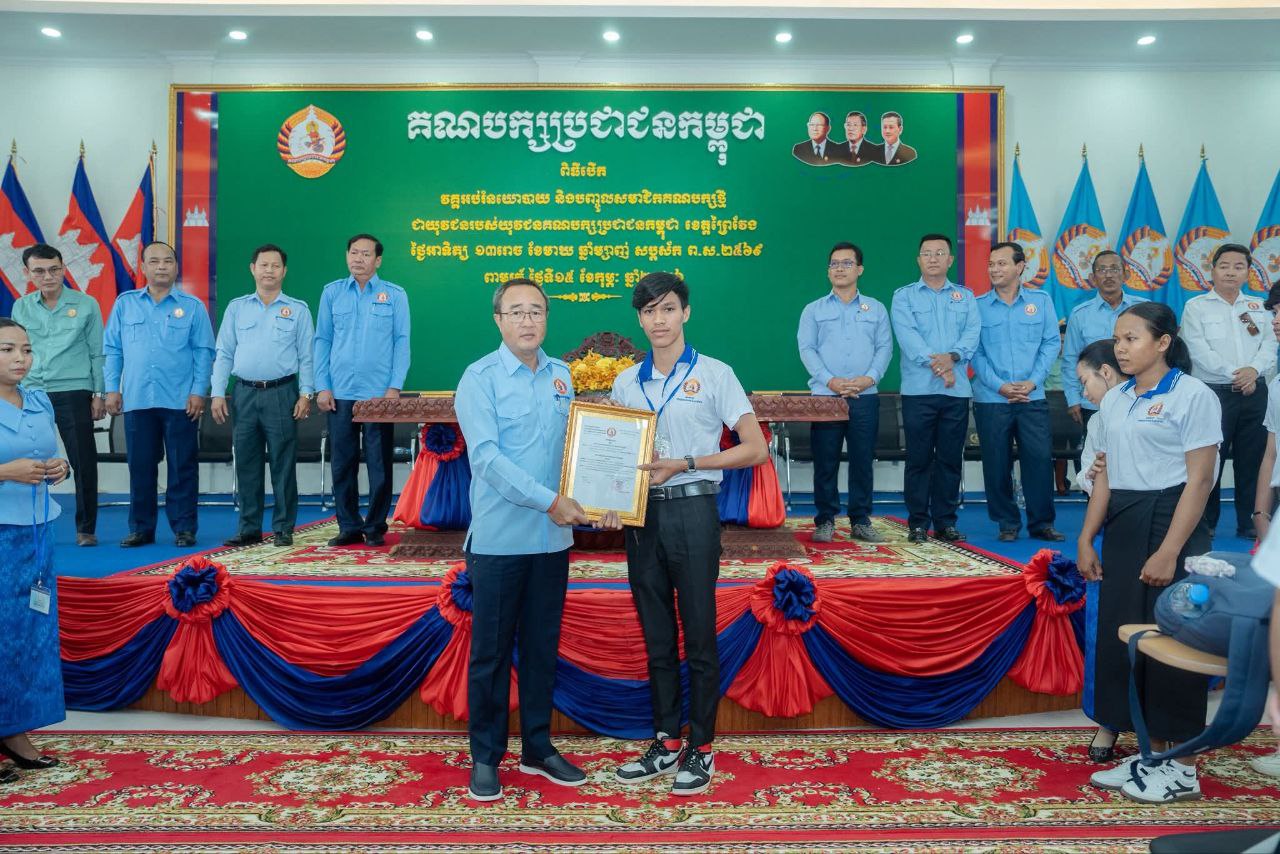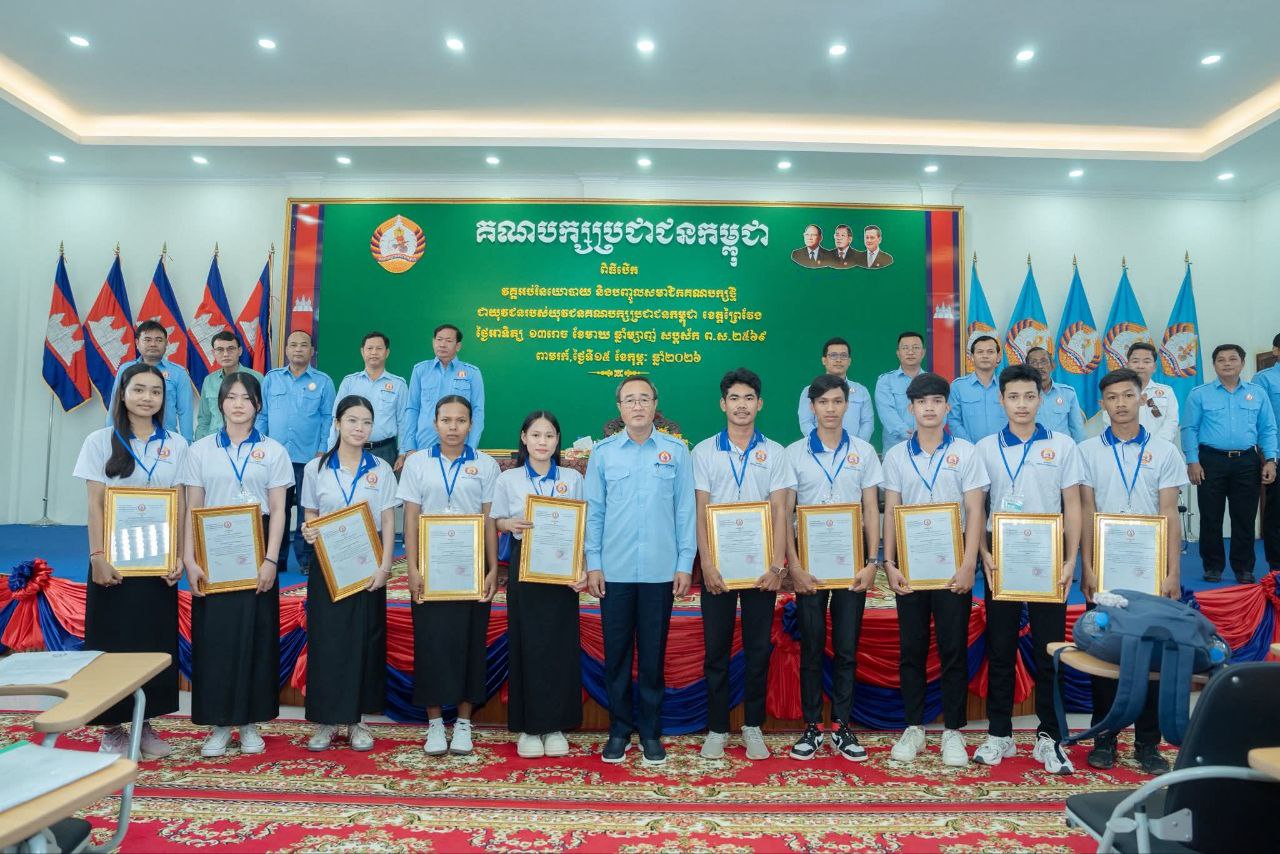 ឯកឧត្តម សួន សុម៉ាលីន សមាជិកគណៈកម្មាធិការកណ្តាល អនុប្រធានគណៈកម្មាធិការគណបក្សខេត្ត និងជាប្រធានយុវជនគណបក្សខេត្ត បាននៅថ្ងៃទី ១៥ ខែកុម្ភៈឆ្នាំ ២០២៦បានអញ្ជើញបិទវគ្គ អប់រំនយោបាយសតិអារម្មណ៍ និងប្រកាសបញ្ចូលសមាជិកបក្សថ្មីជាយុវជន របស់យុវជនគណបក្សខេត្ត ចំនួន៨១នាក់ ស្រី៤៥នាក់ នៅទីស្នាក់ការគណបក្សប្រជាជនកម្ពុជា ស្រុកពាមរក៍ ខេត្តព្រៃវែង។