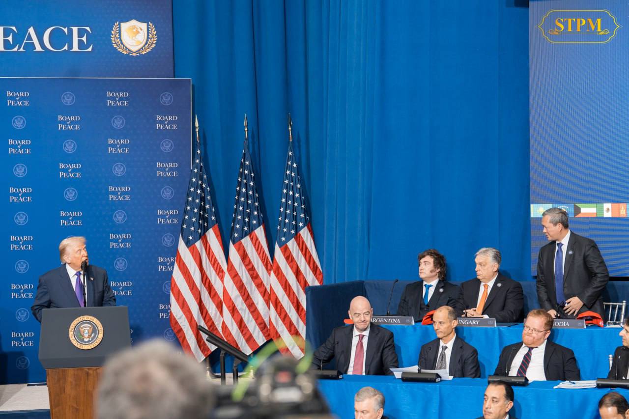 សម្តេចមហាបវរធិបតី ហ៊ុន ម៉ាណែត នាយករដ្ឋមន្ត្រី នៃព្រះរាជាណាចក្រកម្ពុជា អញ្ជើញចូលរួមកិច្ចប្រជុំក្រុមប្រឹក្សាសន្តិភាព (Board of Peace) នៅវិទ្យាស្ថានសន្តិភាពសហរដ្ឋអាមេរិក ដូណាល់ ជេ ត្រាំ នៅរដ្ឋធានីវ៉ាស៊ីនតោន នាព្រឹកថ្ងៃព្រហស្បតិ៍ ទី១៩ ខែកុម្ភៈ ឆ្នាំ២០២៦ (ម៉ោងនៅអាមេរិក)។