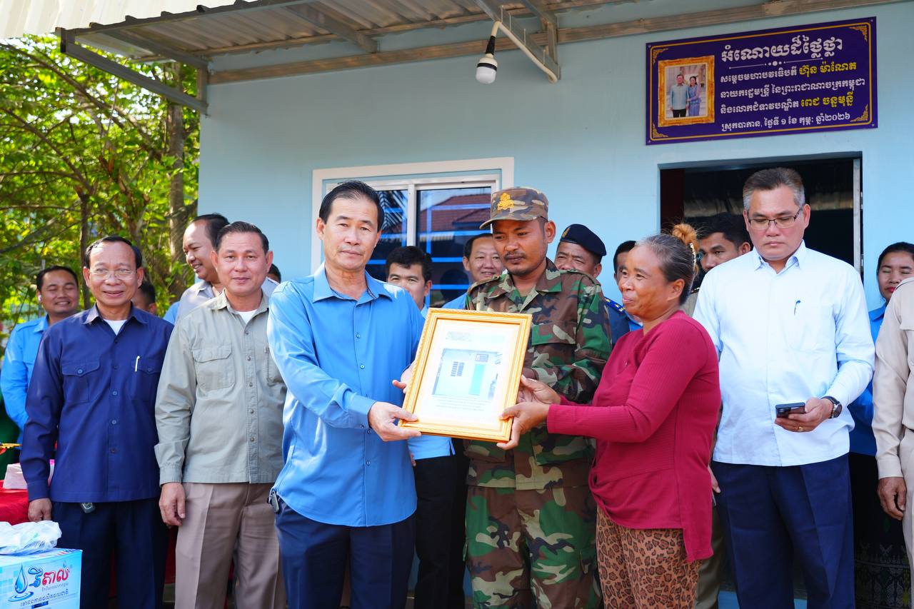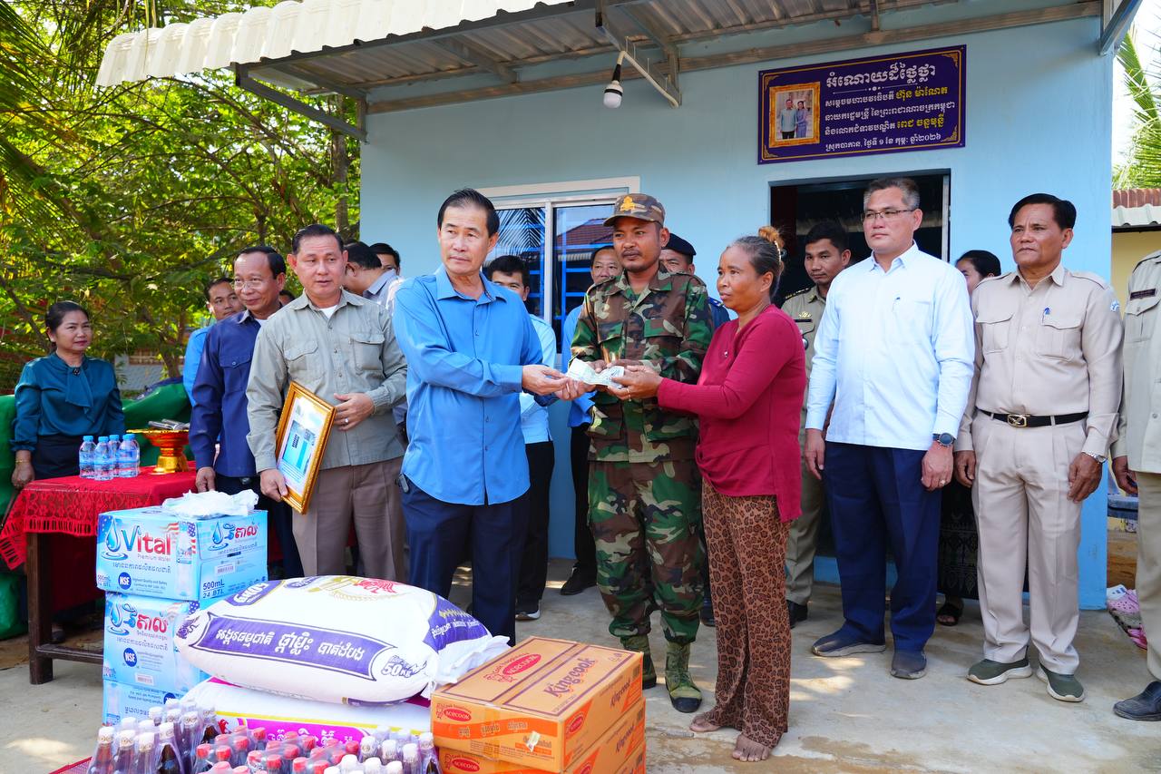 ផ្ទះថ្មីដ៏រឹងមាំ ចំនួន២ខ្នង ជាអំណោយដ៏ថ្លៃថ្លារបស់ សម្តេចបវរធិបតី ហ៊ុន ម៉ាណែត នាយករដ្ឋមន្ត្រីនៃកម្ពុជា និងលោកជំទាវបណ្ឌិត ពេជ ចន្ទមុន្នី តាមរយៈសប្បុរសជនក្នុងស្រុក ត្រូវបានប្រគល់ជូនគ្រួសារវីរយុទ្ធជនគឺ៖ លោកអនុសេនីយ៍ឯក យឹម សុភាព និងនាយចំណង់ ចាន់ សុខណា ប្រចាំទិសថ្មដា ដែលជួបការលំបាក មានទីលំនៅក្នុងភូមិពិតត្រង់ និងភូមិកោះកែវ ឃុំត្រពាំងជង ស្រុកបាកាន ខេត្តពោធិ៍សាត់។