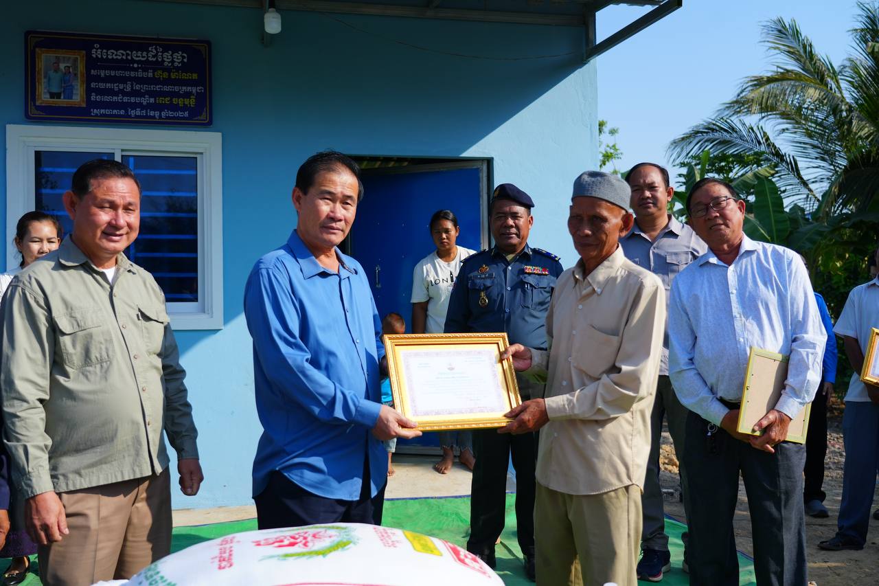ឯកឧត្តមអភិបាលខេត្ត បានថ្លែងអំណរគុណយ៉ាងជ្រាលជ្រៅបំផុត ចំពោះ លោក លោកស្រី ជាសប្បុរសជន ដែលបានចំណាយធនធានផ្ទាល់ខ្លួន ចូលរួមចំណែកជាមួយរាជរដ្ឋាភិបាល ក្នុងការកសាងផ្ទះនេះឡើង។ នេះគឺជាកាយវិការសប្បុរសធម៌ដ៏ឧត្តុង្គឧត្តម ដែលឆ្លុះបញ្ចាំងពីវប្បធម៌ចែករំលែករបស់ខ្មែរយើង ក្រោមពាក្យស្លោក “ខ្មែរជួយខ្មែរ”។