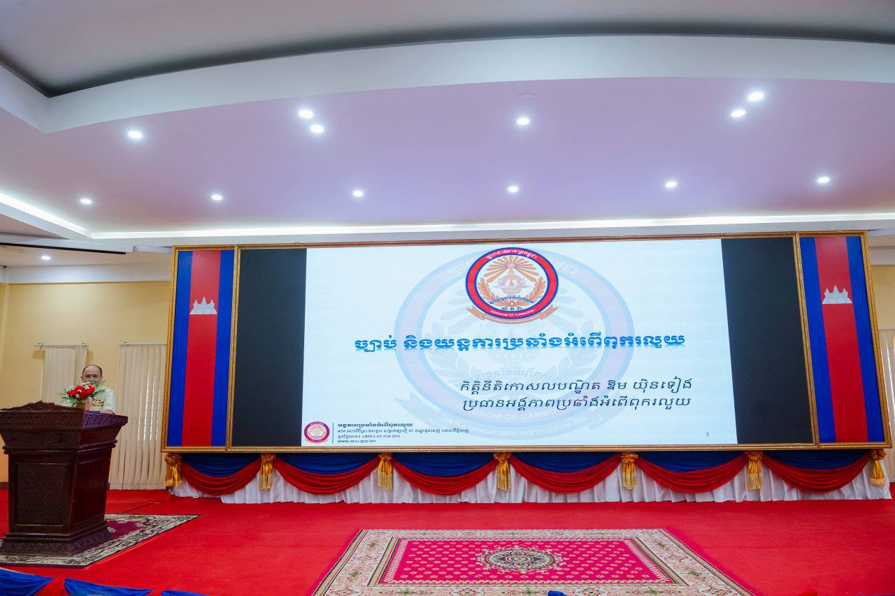 ឯកឧត្តមកិត្តិនីតិកោសលបណ្ឌិត ឱម យិនទៀង ទេសរដ្ឋមន្រ្តី និងជាប្រធានអង្គភាពប្រឆាំងអំពើពុករលួយ (ACU) នៅថ្ងៃទី២០ ខែកុម្ភៈ ឆ្នាំ២០២៦ បានអញ្ជើញជាអធិបតី ក្នុងពិធីផ្សព្វផ្សាយច្បាប់ស្ដីពីការប្រឆាំងអំពើពុក រលួយជូនដល់ថ្នាក់ដឹកនាំ និងមន្រ្តីរាជការនៅថ្នាក់ក្រោមជាតិនៅខេត្តបាត់ដំបង។