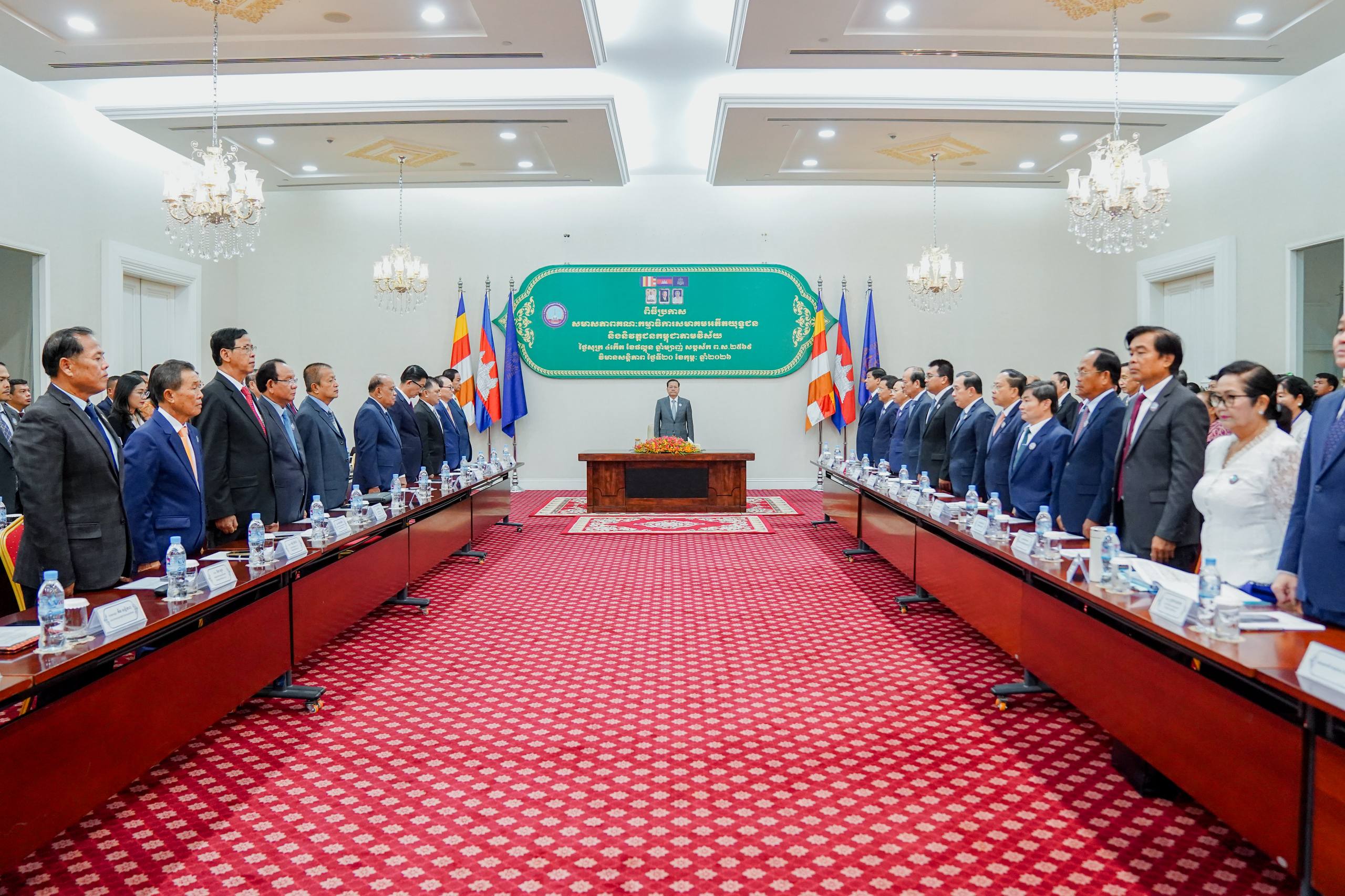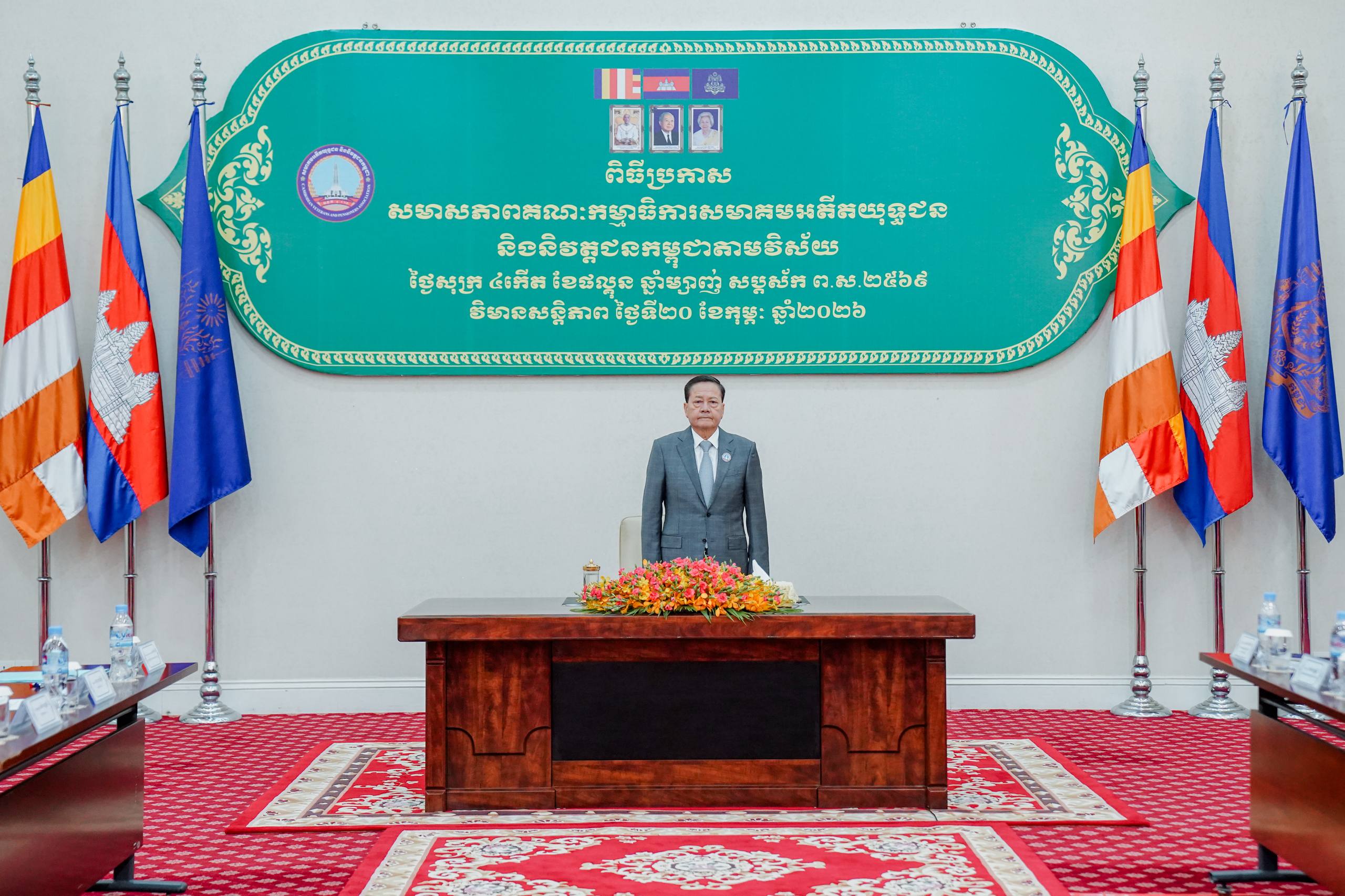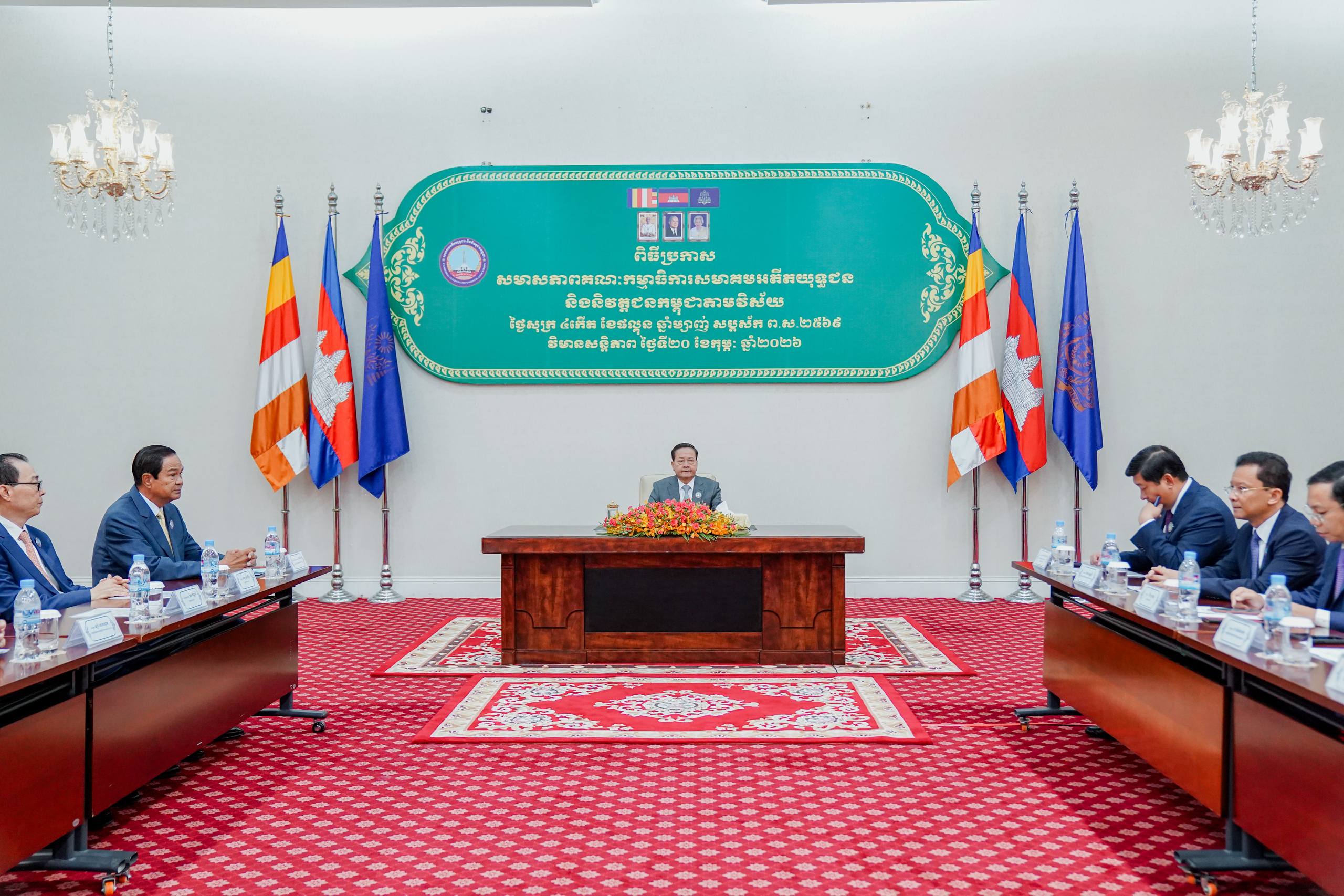 ឯកឧត្តមសន្ដិបណ្ឌិត នេត សាវឿន នាយករដ្ឋមន្ដ្រីស្ដីទីនៃកម្ពុជា និងជាតំណាងសម្ដេចតេជោ ហ៊ុន សែន ប្រធានព្រឹទ្ធសភា និងជាប្រធានសមាគមអតីតយុទ្ធជន និងនិវត្តនជនកម្ពុជា នៅព្រឹកថ្ងៃទី២០ ខែកុម្ភៈ ឆ្នាំ២០២៦នេះ បានអញ្ជើញជាអធិបតីភាពក្នុងពិធីប្រកាសសមាសភាពគណៈកម្មាធិការសមាគមអតីតយុទ្ធជន និងនិវត្តជនកម្ពុជា តាមវិស័យចំនួន៣២ក្រសួង ស្ថាប័ន នៅវិមានសន្តិភាព។ ក្នុងនោះក៏មានការចូលរួមពី អគ្គលេខាធិការ អគ្គលេខាធិការរង សមាគមអតីតយុទ្ធជន និងនិវត្តជនកម្ពុជា ព្រមទាំងថ្នាក់ដឹកនាំទាំង៣២ក្រសួង ស្ថាប័នផងដែរ។