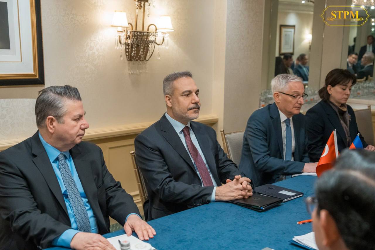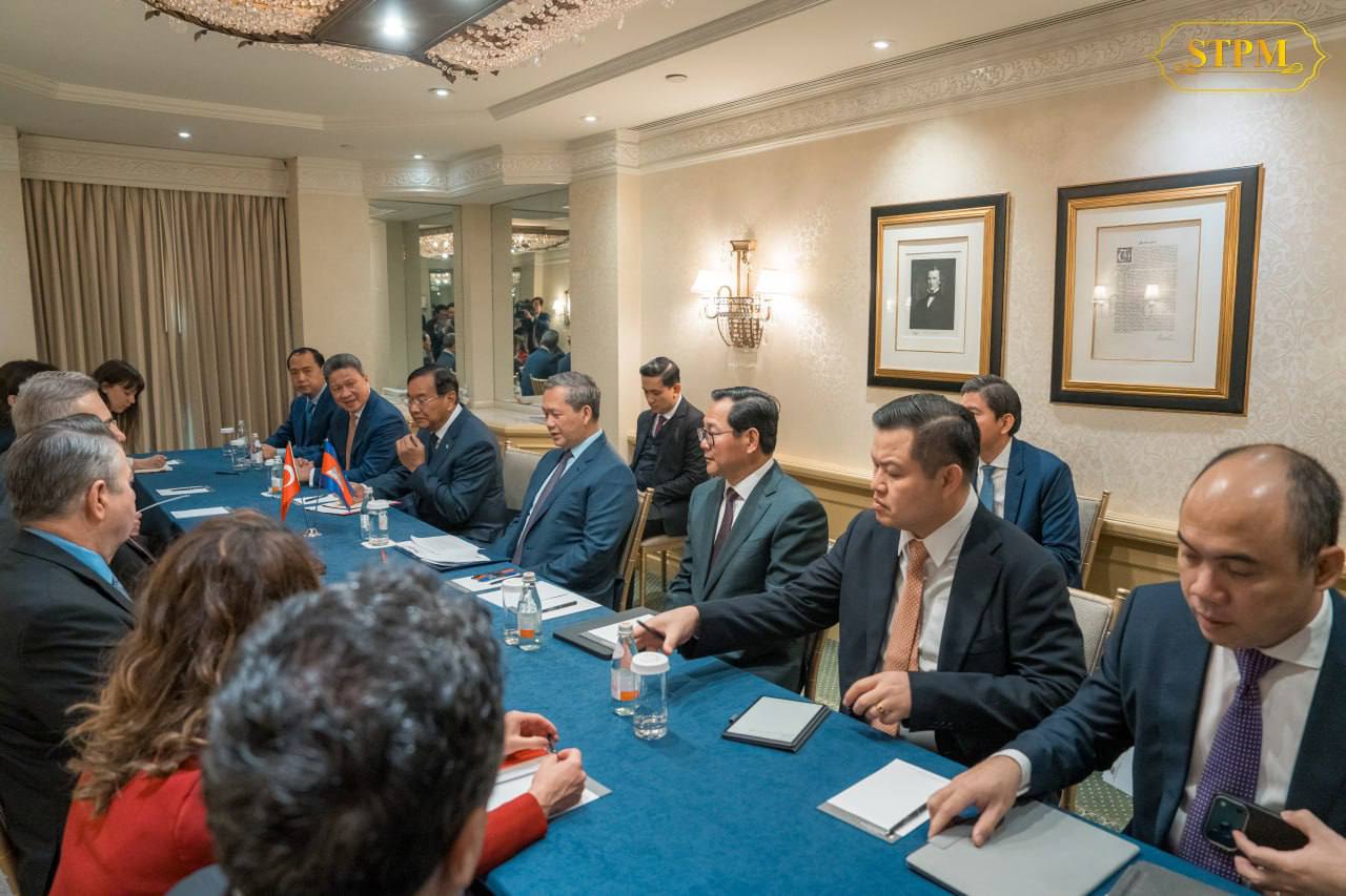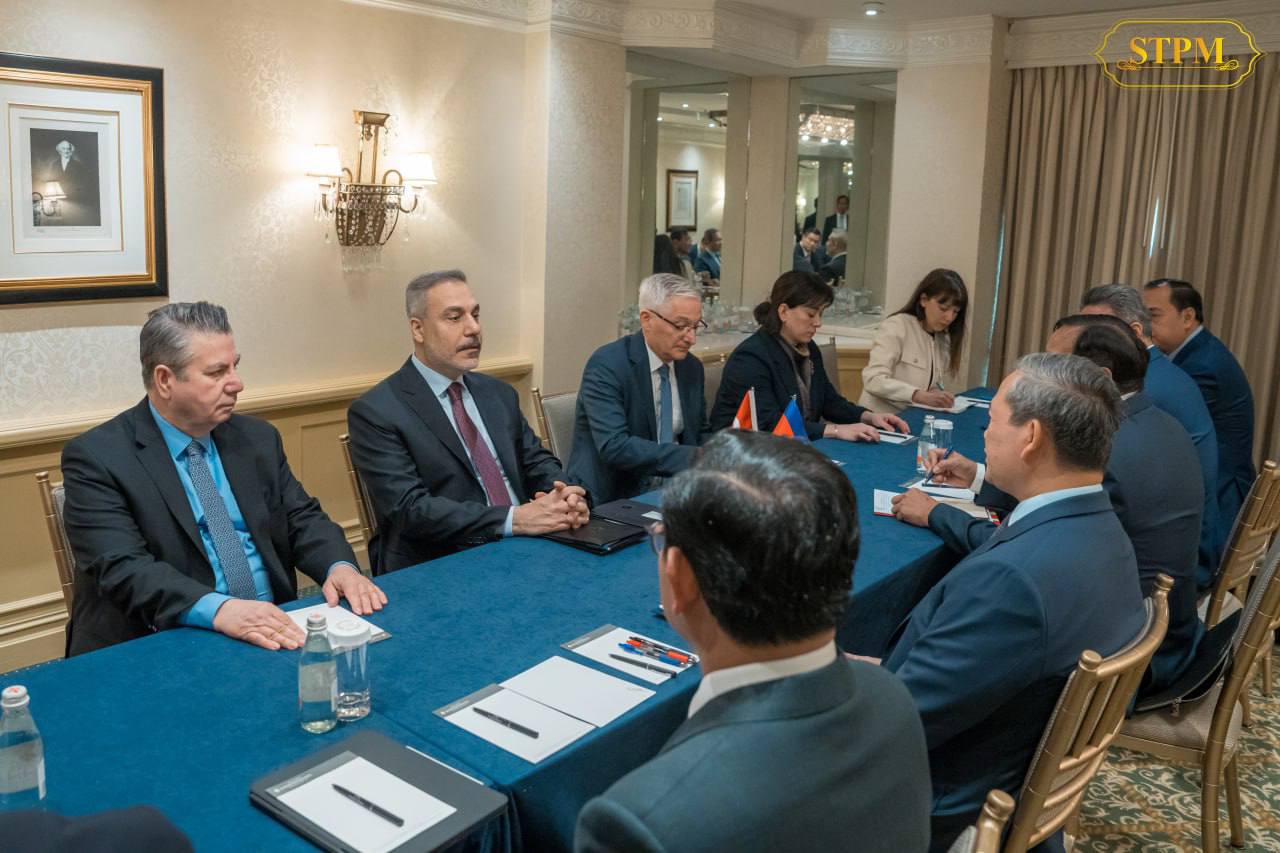 សម្តេចមហាបវរធិបតី ហ៊ុន ម៉ាណែត នាយករដ្ឋមន្ត្រីនៃព្រះរាជាណាចក្រកម្ពុជា ទទួលជួបពិភាក្សាការងារជាមួយ ឯកឧត្តម Hakan Fidan រដ្ឋមន្ត្រីការបរទេសតួកគី នៅរដ្ឋធានីវ៉ាស៊ីនតោន សហរដ្ឋអាមេរិក នាព្រឹកថ្ងៃសុក្រ ទី២០ ខែកុម្ភៈ ឆ្នាំ២០២៦ (ម៉ោងនៅអាមេរិក)។