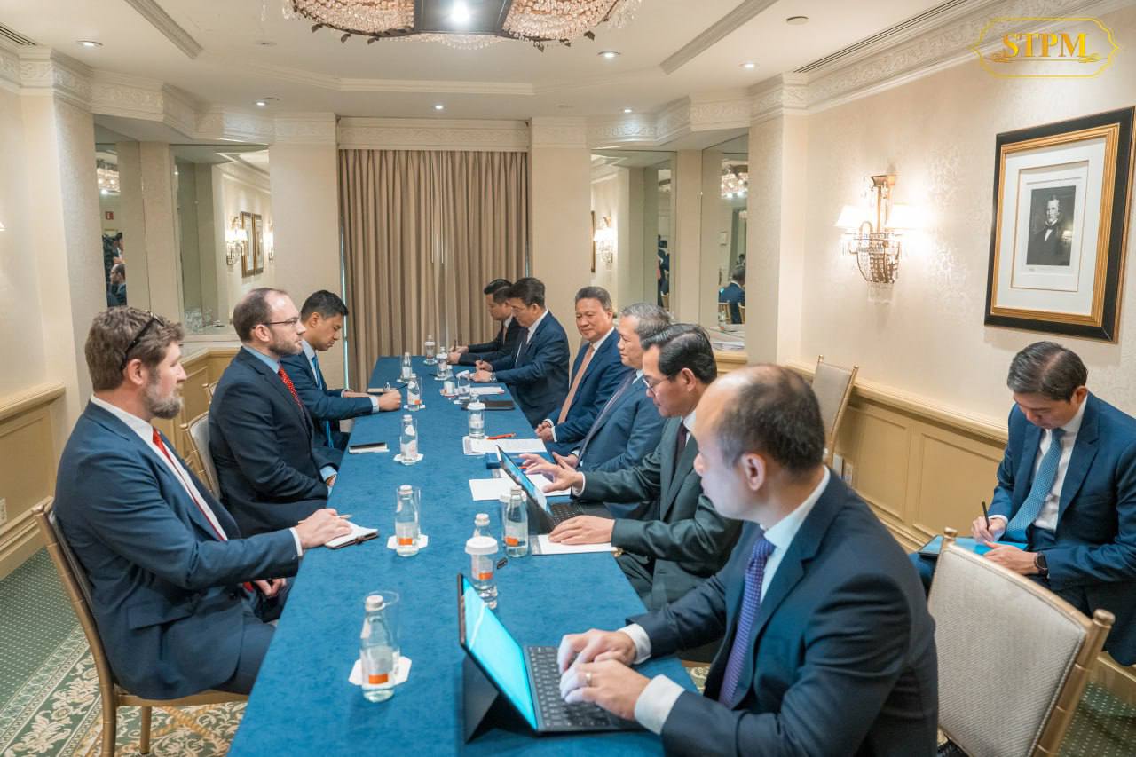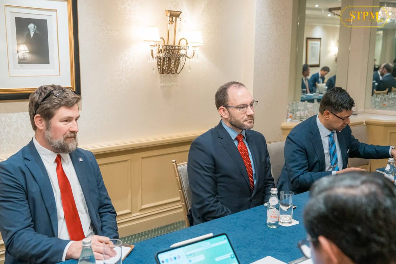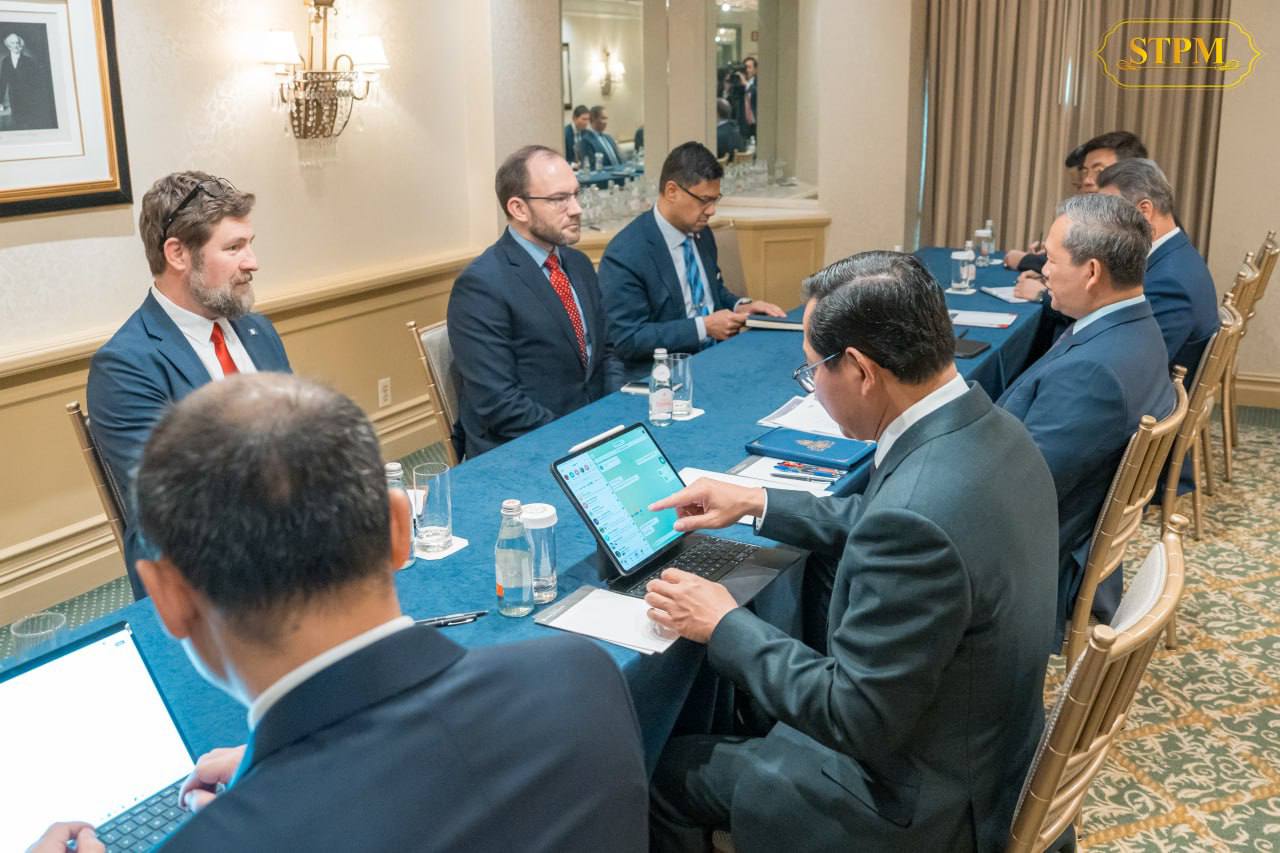 សម្តេចមហាបវរធិបតី ហ៊ុន ម៉ាណែត នាយករដ្ឋមន្ត្រីនៃព្រះរាជាណាចក្រកម្ពុជា ទទួលជួបពិភាក្សាការងារជាមួយ លោកបណ្ឌិត Andy Baker អនុទីប្រឹក្សាសន្តិសុខជាតិសហរដ្ឋអាមេរិក នៅរដ្ឋធានីវ៉ាស៊ីនតោន នាព្រឹកថ្ងៃសុក្រ ទី២០ ខែកុម្ភៈ ឆ្នាំ២០២៦ (ម៉ោងនៅអាមេរិក)។