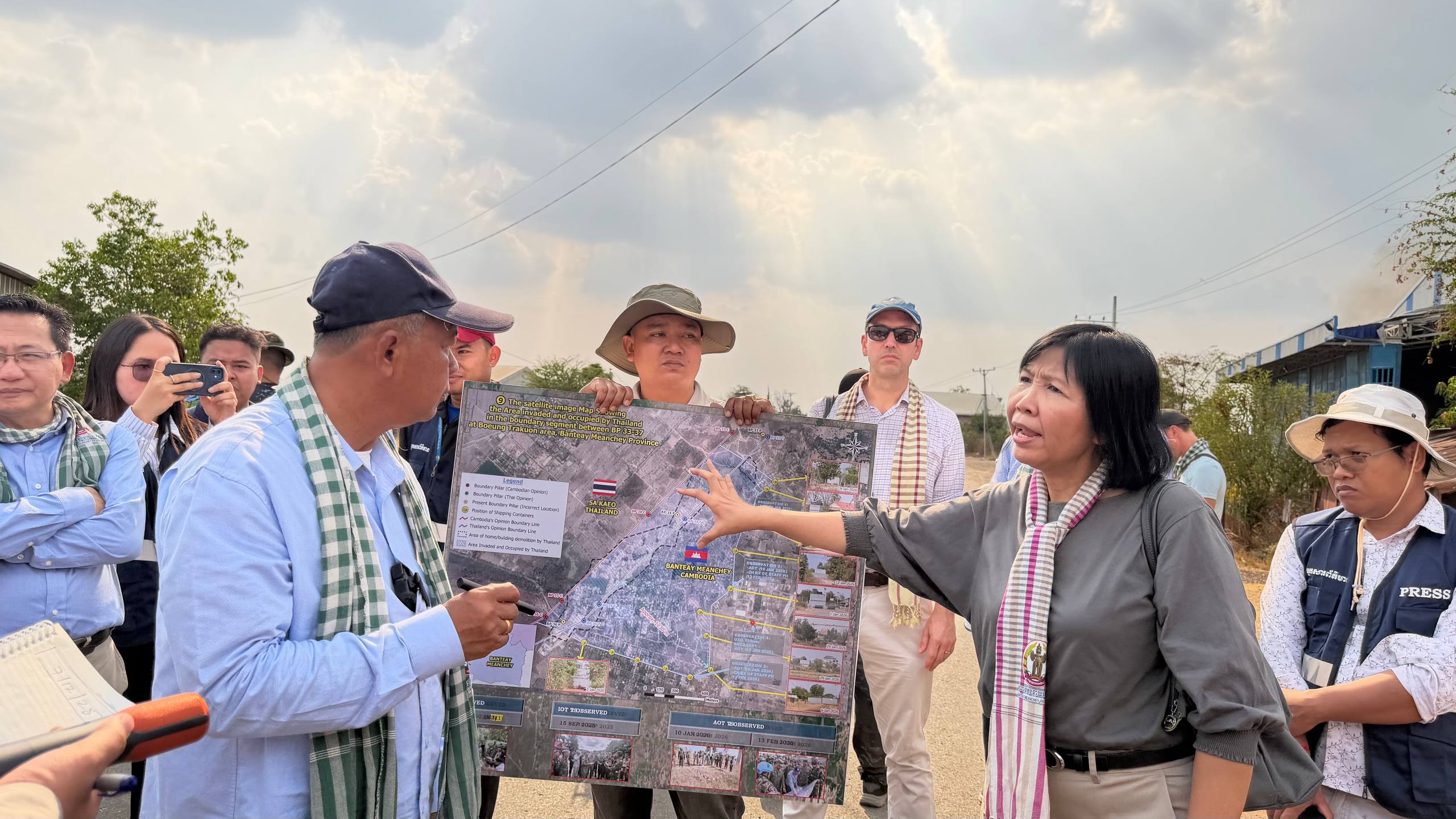 សូមបញ្ជាក់ថា កងកម្លាំងឈ្លានពានថៃ បាននឹងកំពុងបង្កើតស្ថានភាពថ្មីនៅលើទីតាំងជាក់ស្ដែង (fait accompli) ដែលកម្ពុជាមិនអាចទទួលយកបានជាដាច់ខាត តាមរយៈការរាយបន្លាលួស ដាក់ទូកុងតឺន័រ និងបំផ្លាញផ្ទះប្រជាពលរដ្ឋ ហើយរាជរដ្ឋាភិបាលកម្ពុជា បានតវ៉ាជាផ្លូវការតាមរយៈក្រសួងការបរទេស និងសហប្រតិបត្តិការអន្តរជាតិ ជាបន្តបន្ទាប់ដោយប្រឆាំងដាច់ខាតនឹងសកម្មភាពទាំងនេះ ហើយកម្ពុជាមិនទទួលស្គាល់ដាច់ខាតការកែប្រែខ្សែបន្ទាត់ព្រំដែន ឬការកាន់កាប់ទឹកដីដោយខុសច្បាប់អន្តរជាតិ តាមរយៈការប្រើប្រាស់កម្លាំងឡើយ៕