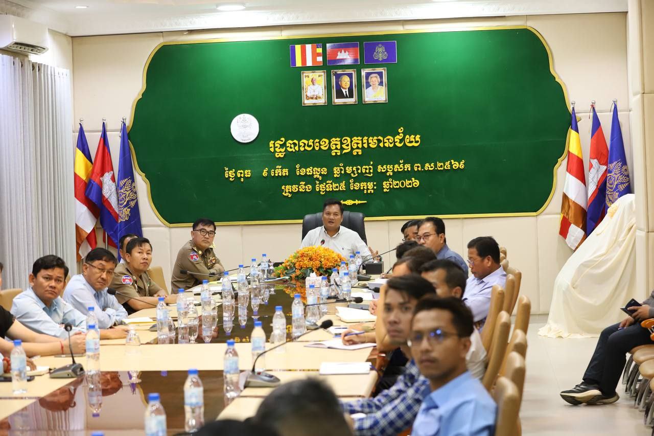 (ឧត្តរមានជ័យ)៖ ឯកឧត្តម មាន ចាន់យ៉ាដា អភិបាលខេត្តឧត្តរមានជ័យ នៅព្រឹកថ្ងៃទី២៥ ខែកុម្ភៈ ឆ្នាំ២០២៦ បានដឹកនាំកិច្ចប្រជុំសម្របសម្រួលដោះស្រាយផលប៉ះពាល់បង្គោលអគ្គិសនីសម្រាប់គម្រោងពង្រីក និងកែលម្អផ្លូវចាប់ពី រង្វង់មូលព្រះលោកេស្វរៈ ដល់រង្វង់មូលព្រះបាទជ័យវរ្ម័នទី៧ ស្ថិតក្នុងក្រុងសំរោង។