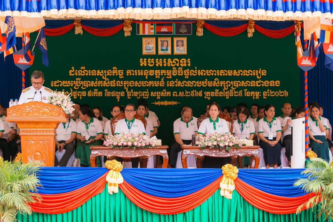 ការថ្លែងរបស់លោកជំទាវបណ្ឌិត ធ្វើឡើងក្នុងឱកាសអញ្ជើញទស្សនកិច្ចការអនុវត្តកម្មវិធីផ្តល់អាហារតាមសាលារៀន ដោយប្រើប្រាស់កសិផលក្នុងសហគមន៍ នៅសាលាបឋមសិក្សាប្រាសាទជាងទង ស្ថិតក្នុងភូមិក្រាំងប្រស្វាយ ឃុំស្វាយជ្រុំ ស្រុករលាប្អៀរ ខេត្តកំពង់ឆ្នាំង ដោយមានការអញ្ជើញចូលរួមពីសម្តេចមហាមន្ត្រី គួយ សុផល ឧបនាយករដ្ឋមន្ត្រី និងជារដ្ឋមន្ត្រីក្រសួងព្រះបរមរាជវាំង និងលោកបណ្ឌិតសភាចារ្យ ហង់ជួន ណារ៉ុន ឧបនាយករដ្ឋមន្រ្តី រដ្ឋមន្រ្តីក្រសួងអប់រំ យុវជន និងកីឡា នៅថ្ងៃទី២៥ ខែកុម្ភៈ ឆ្នាំ២០២៦។