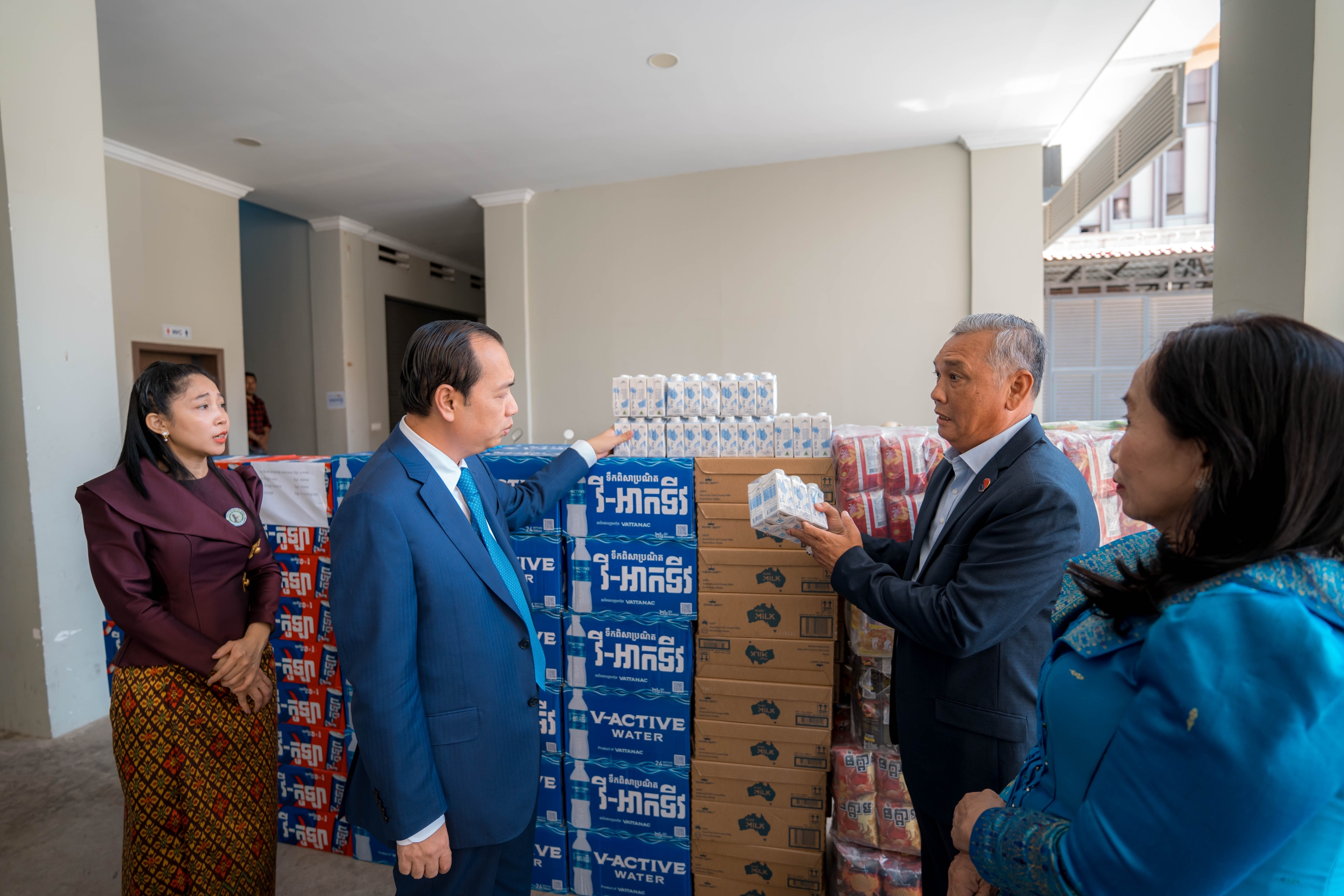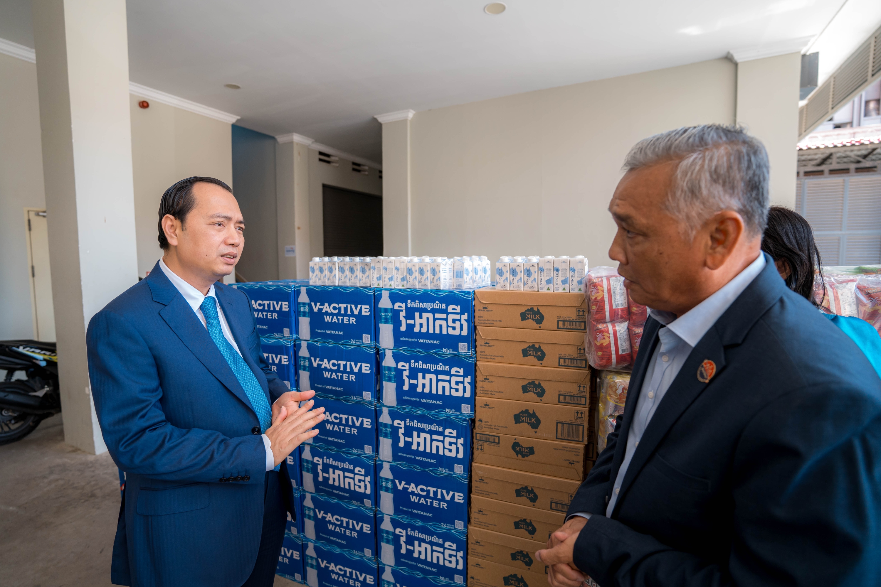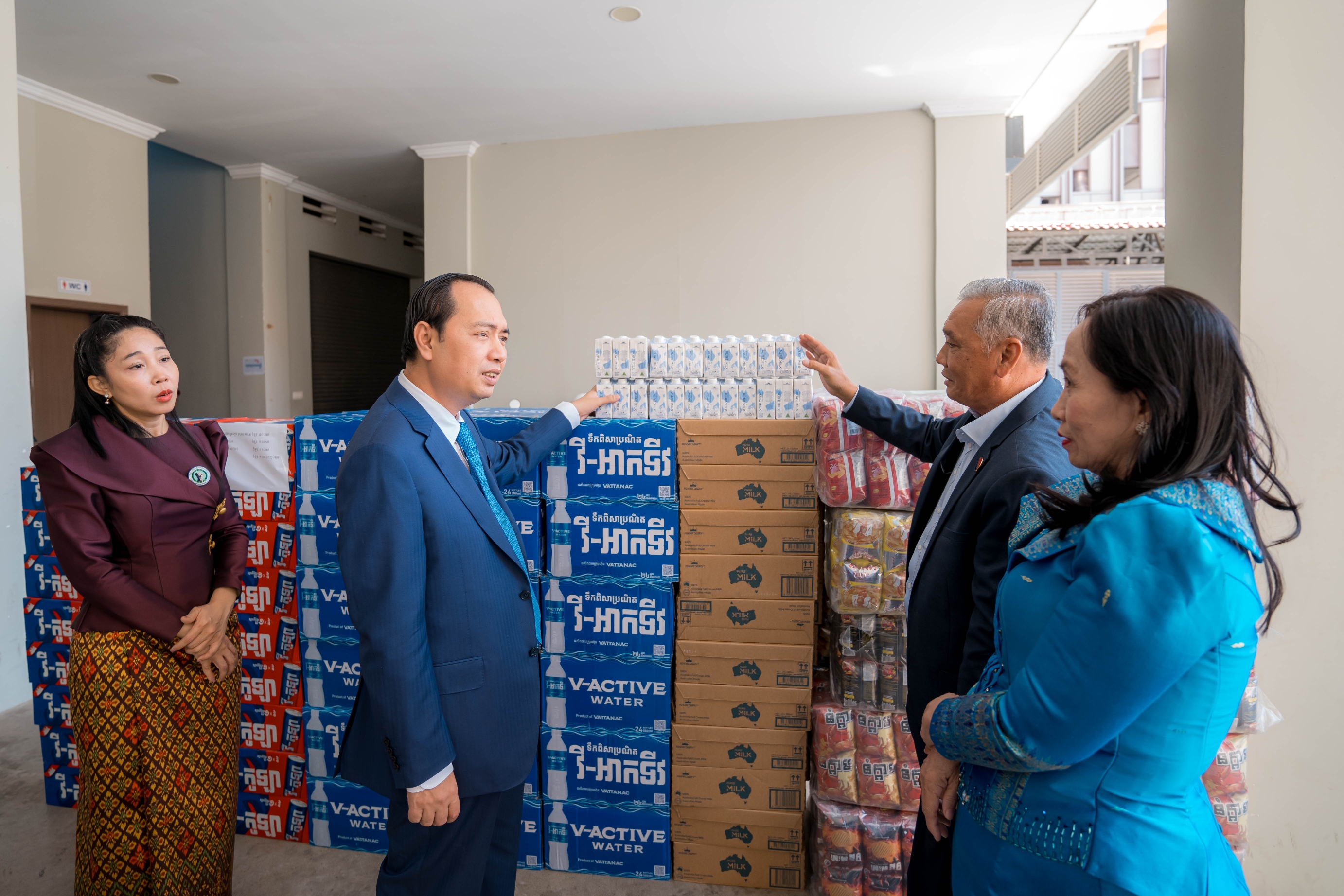 អំណោយទាំងនេះរួមមានទឹកដោះគោកូនក្មេង PURE Milk ចំនួន ៤០កេស, ទឹកក្រូចកូឡា ២៦កេស, ទឹកសុទ្ធ V-ACTIVE ៤១កេស និងនំកូនក្មេង ១ ០០០កញ្ចប់។